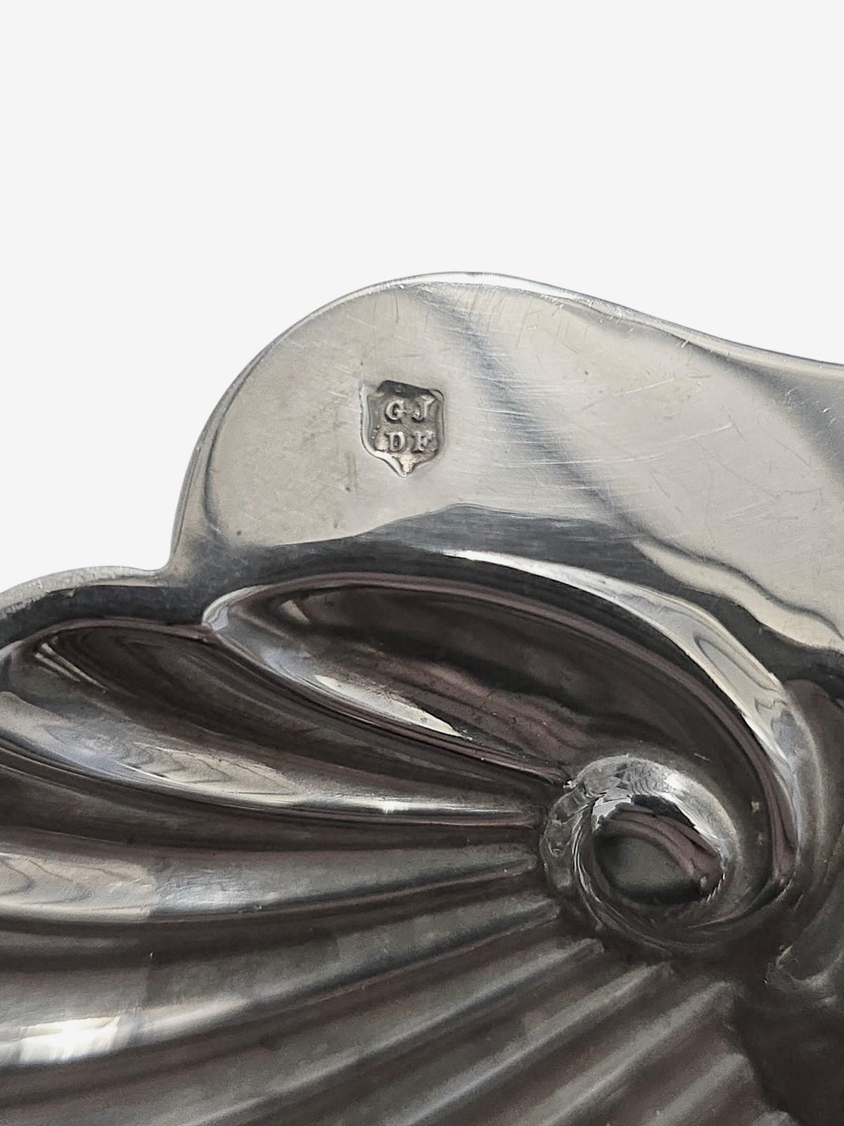 This antique sterling silver scalloped butter dish with a matching butter spreader in its original case, dating back to 1907, is a rare and exquisite piece of Edwardian-era cutlery. Crafted by renowned British silversmiths Josiah Williams & Co, (George Maudsley Jackson & David Landsboroug), this large sterling silver dish embodies the elegance and sophistication of the early 20th century. Perfect for serving butter in style, this piece adds a touch of vintage charm to any dining table or collection.