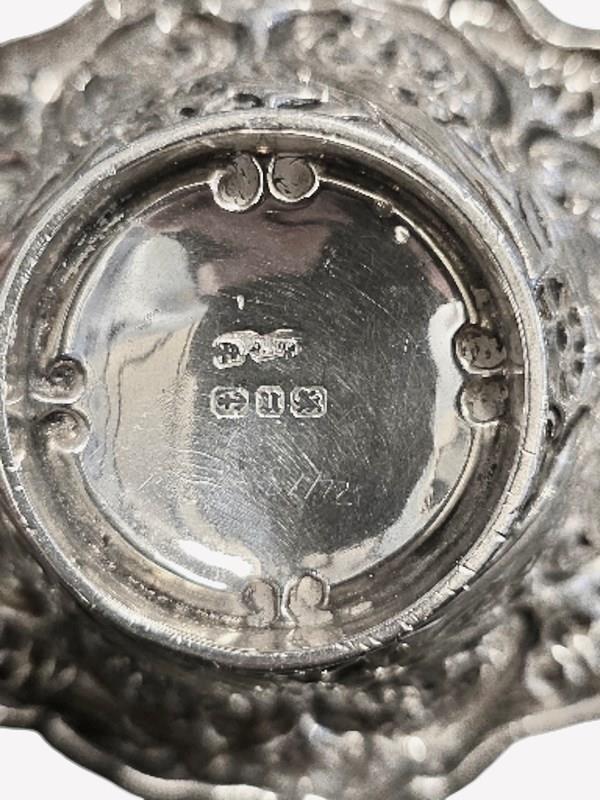 This dish is in excellent condition with no damage or restoration and the makers mark is illegible (looks like it may have been double stamped) but the rest of the hallmarks are clear. It measures 3 cm tall, 13 cm long from outside edge of handles and weighs 49 grams.