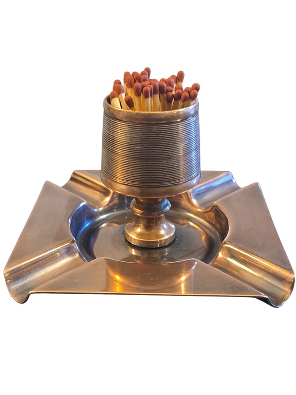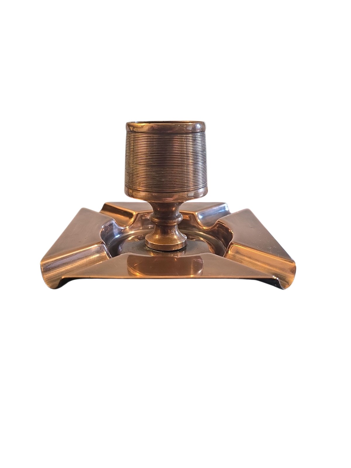 This Copper Arts and Crafts ash tray, designed in a military style, is a unique piece that combines functionality and aesthetics. Made in the United Kingdom, this ashtray features a match holder and striker, making it a practical addition to any smoking collection. Crafted from copper, this ashtray reflects the Arts and Crafts movement's emphasis on quality craftsmanship and attention to detail. The military-inspired design adds a touch of history and character to this collectable piece. Perfect for personalisation or as a standout item for any collector.