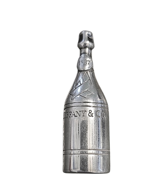 This complete set including the Champagne Bottle marked 1837 around the neck with the two Champagne Flutes, Ice Bucket with tiny miniature ice cubes is a standout item and comes in its original presentation box with Tiffany sleeves for each item. All of this is in excellent condition with no damage or restoration and makes a great display piece. All of the silver items together weigh 74 grams and the champagne bottle measures 4.75 cm tall (for set reference)... Excellent Quality from a renowned silversmith and would make a wonderful present!