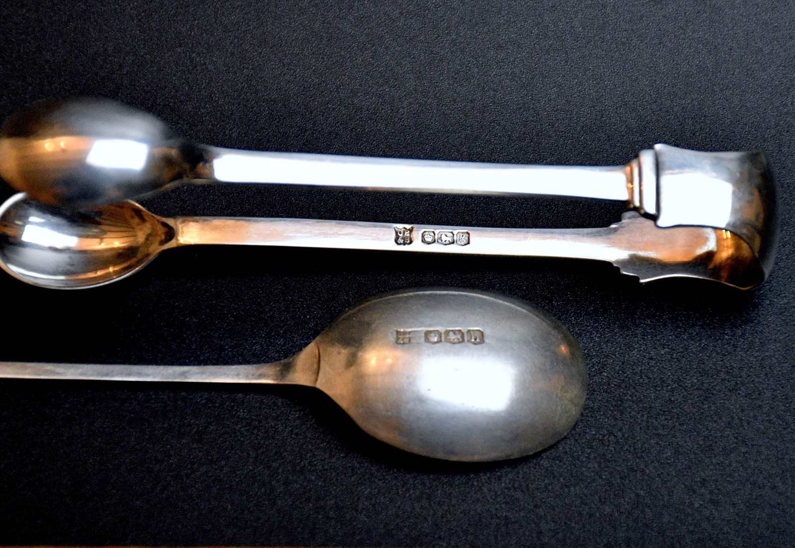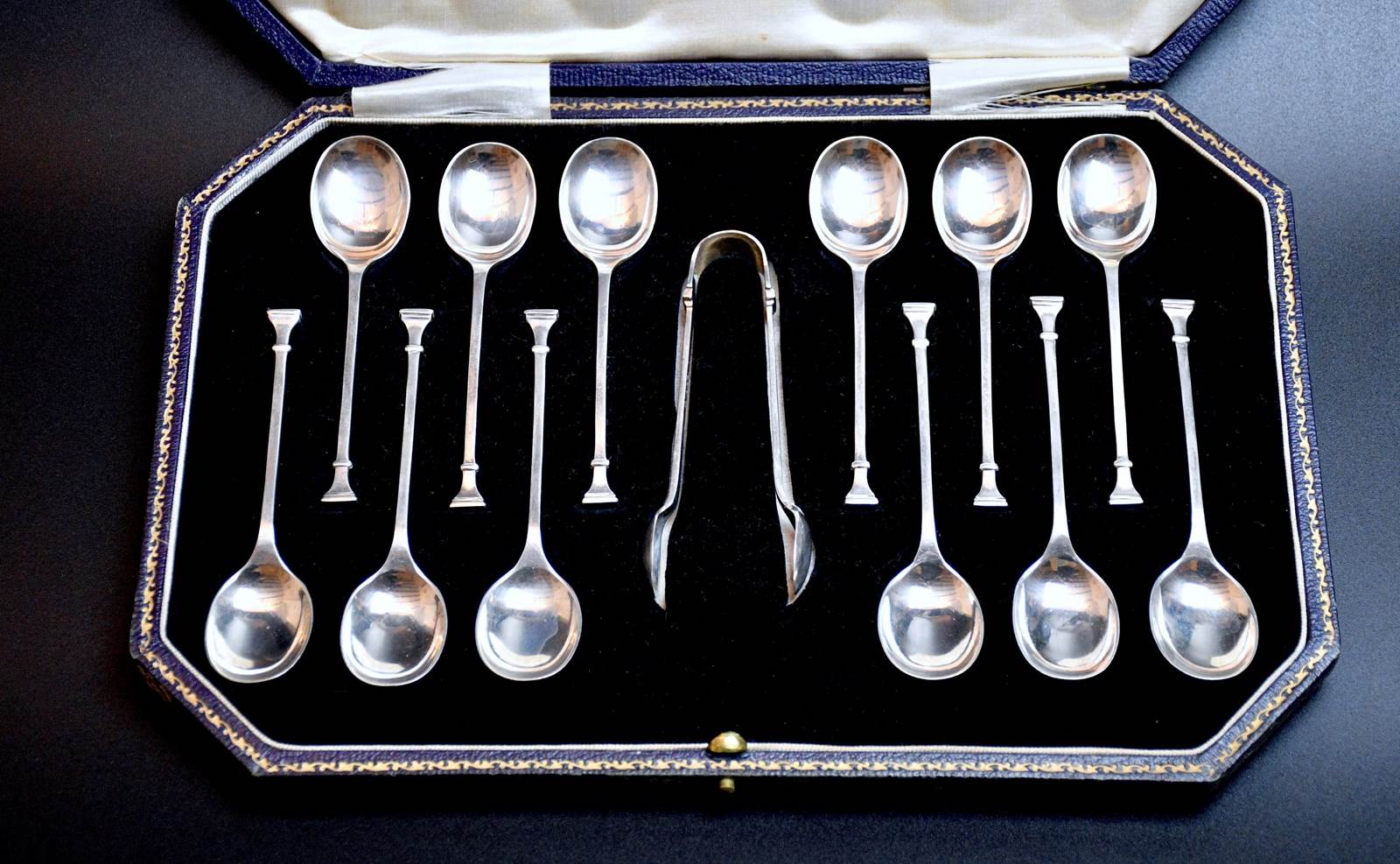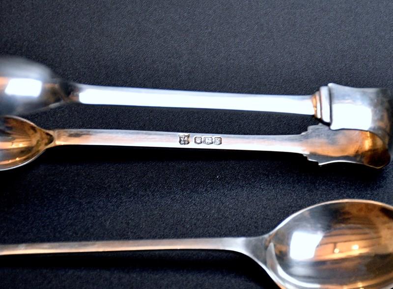 Silver Set Of Spoons And Sugar Tongs In Presentation Box By Cooper Bros 1925