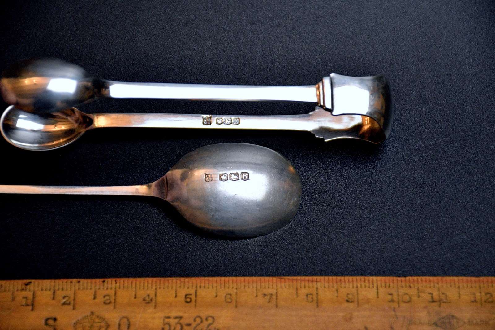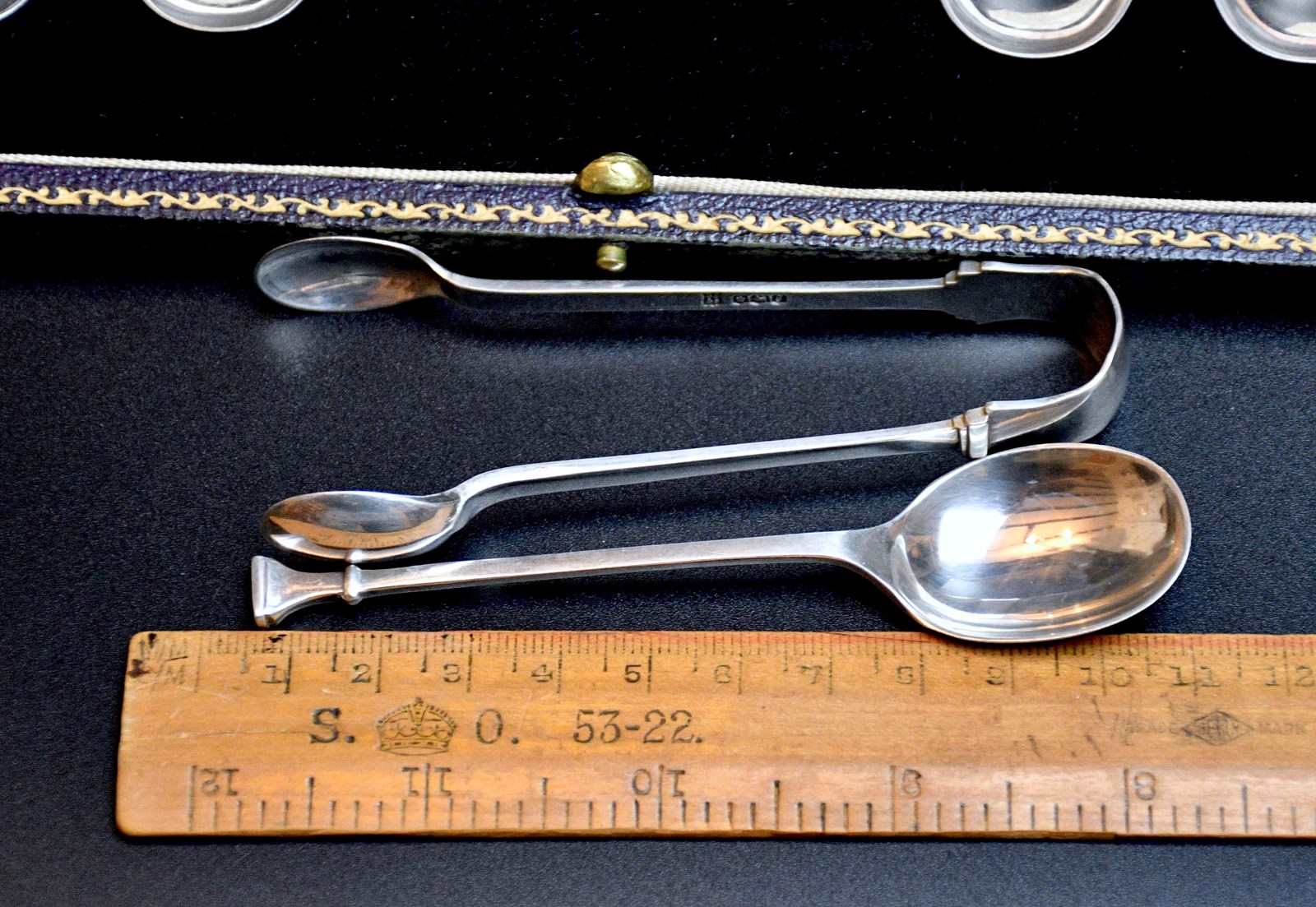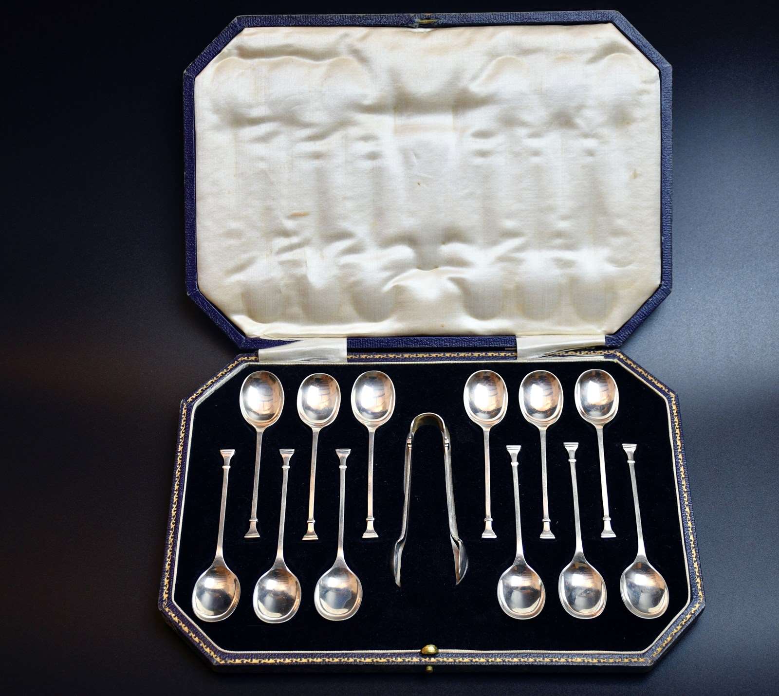 Silver Set Of Spoons And Sugar Tongs In Presentation Box By Cooper Bros 1925