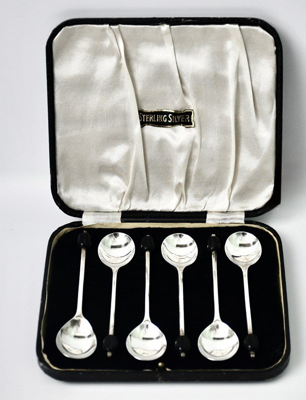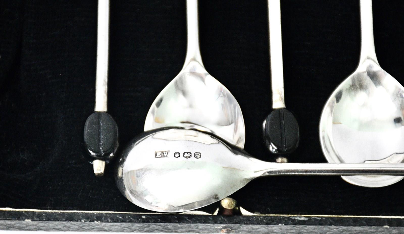 Sterling Silver Coffee Spoon Set In Original Box By Viners 1957 Sheffield