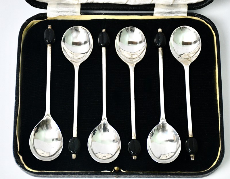 The spoons are in excellent used condition with no damage or restoration and measure 10.5 cm long and are in their original display case.