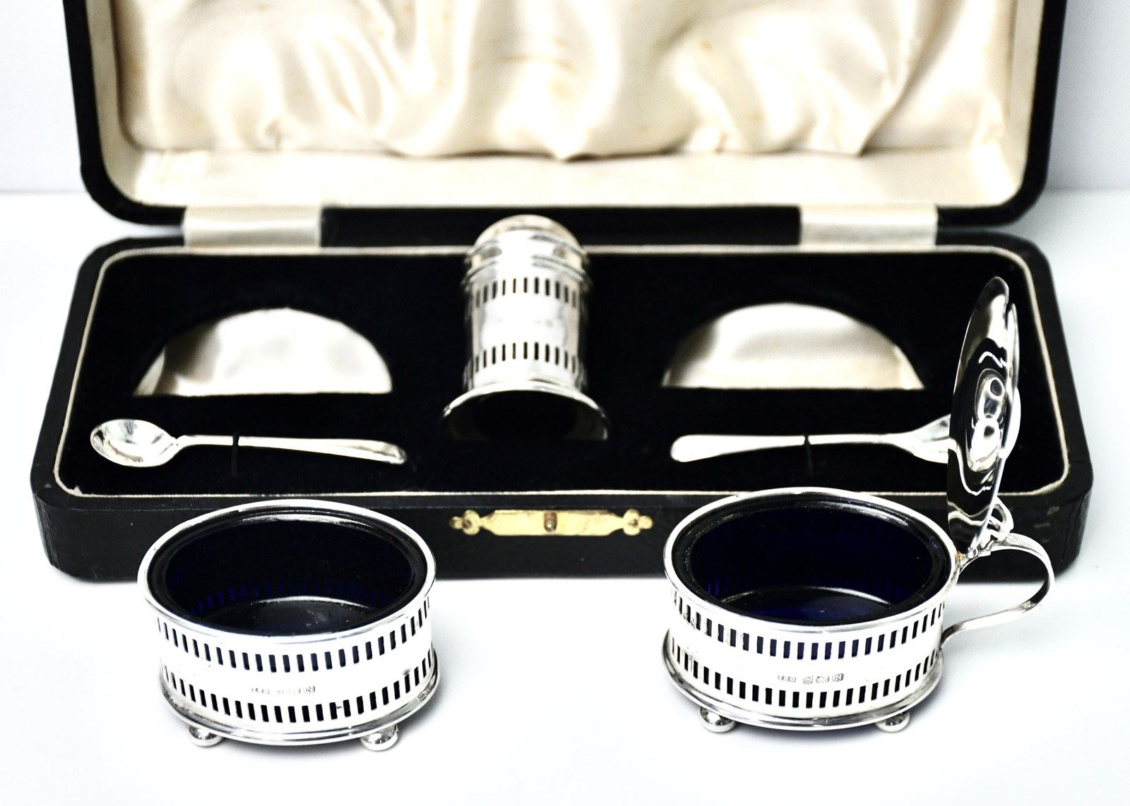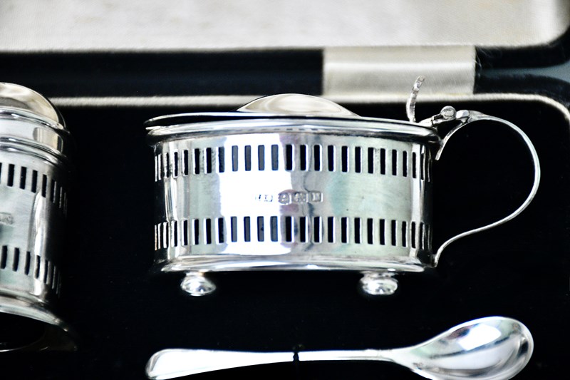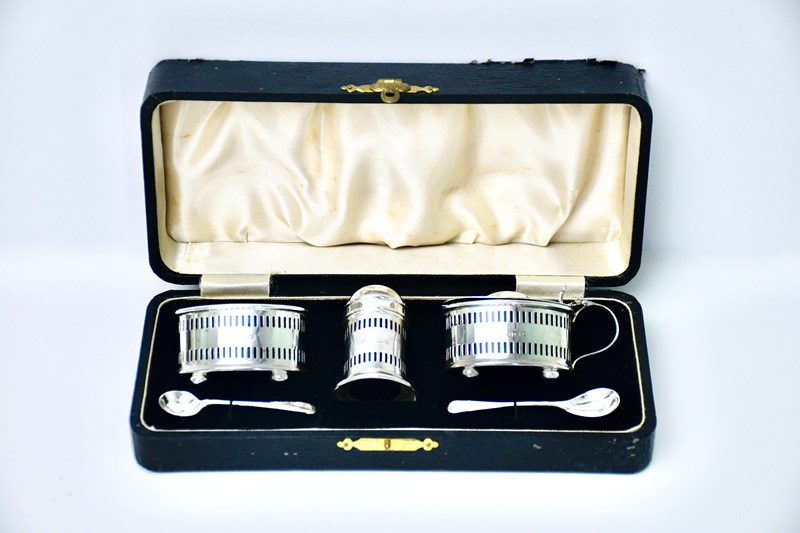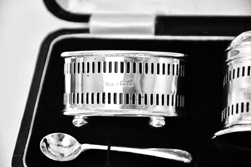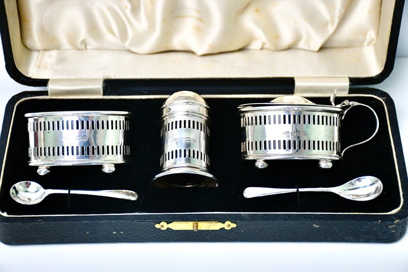 Sterling Silver Cruet Set In Boxed Birmingham 1937 By Isreal Sigmund Greenberg