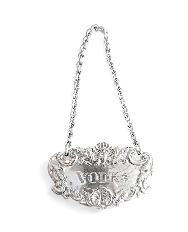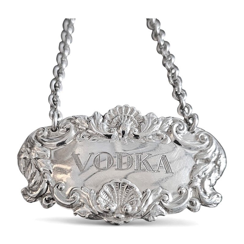 Sterling Silver Decanter Bottle Label "Vodka" Hallmarked 1992 Birmingham By C&C
