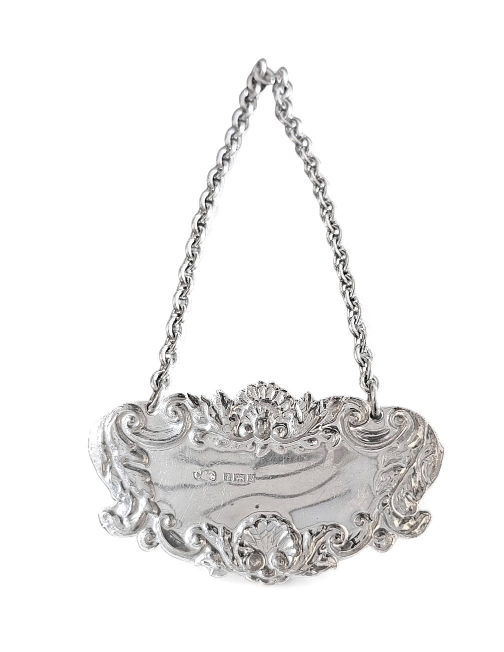 The Decanter Label is in excellent condition with no damage or restoration and clearly hallmarked (see photo's for more details). it measures 10 cm from top of chain to bottom of label. The label itself measures 3.5 cm tall and 6 cm wide across the front and weighs 12.6 grams.