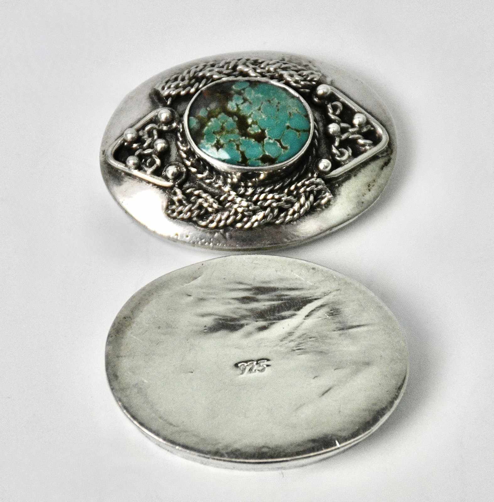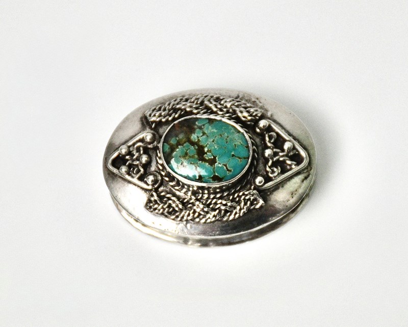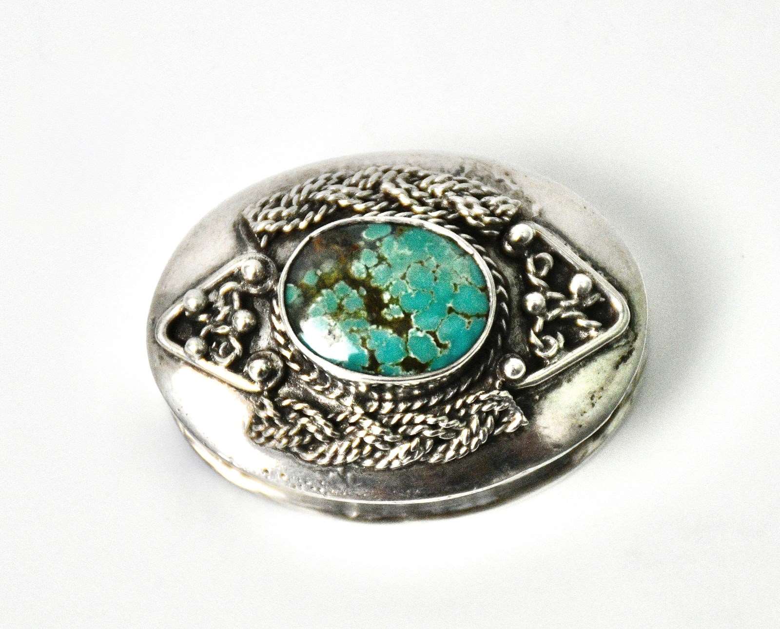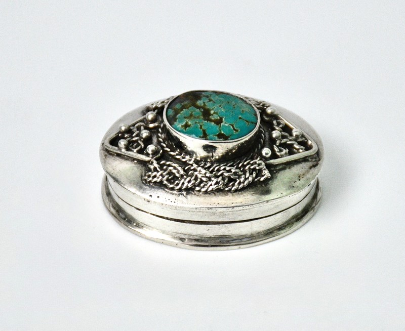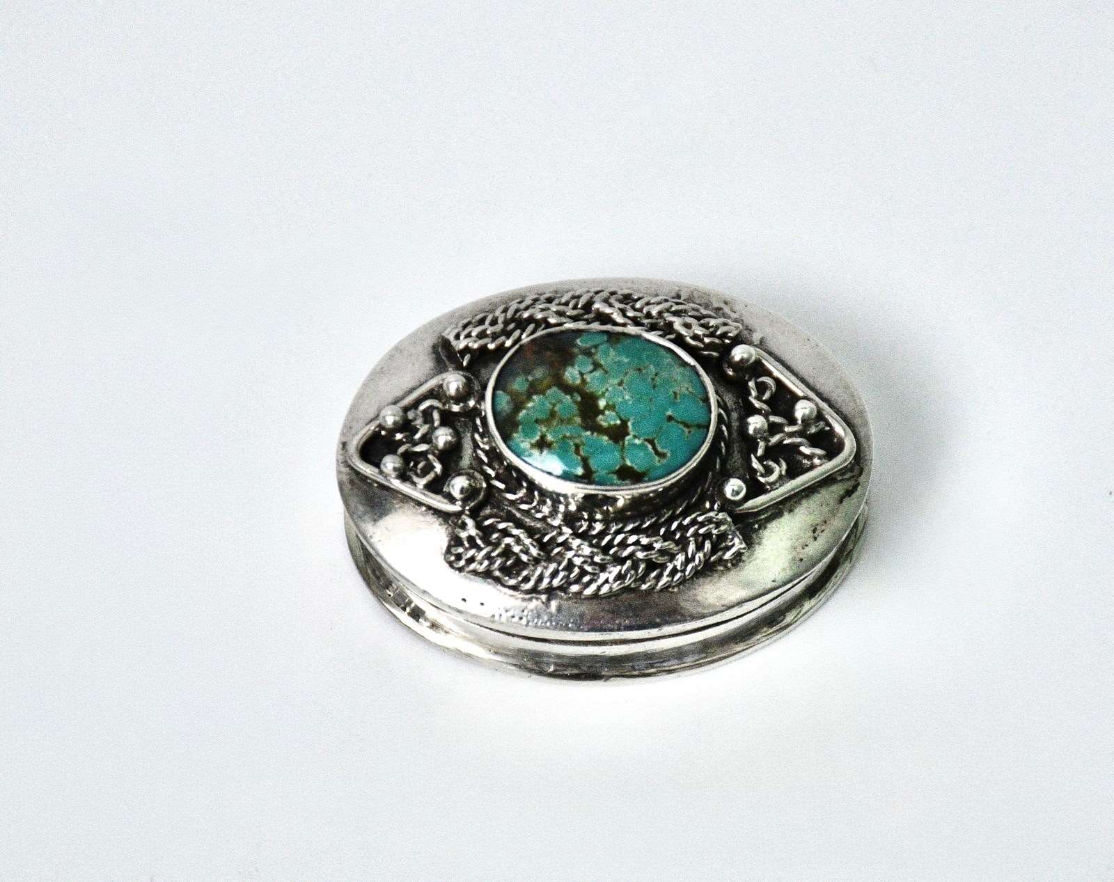 Sterling Silver Pill Box With Turquoise Stone In The Top Marked .925