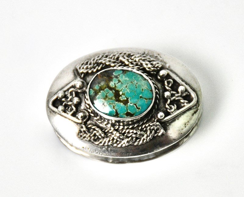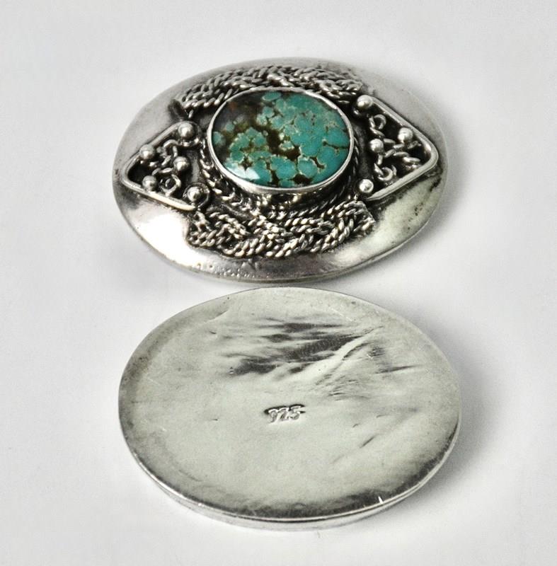 I could not find any makers marks and as it is hallmarked .925 is it continental in origin. The Turquoise stone is in good clean condition and well set into the silver top. An exquisite item!