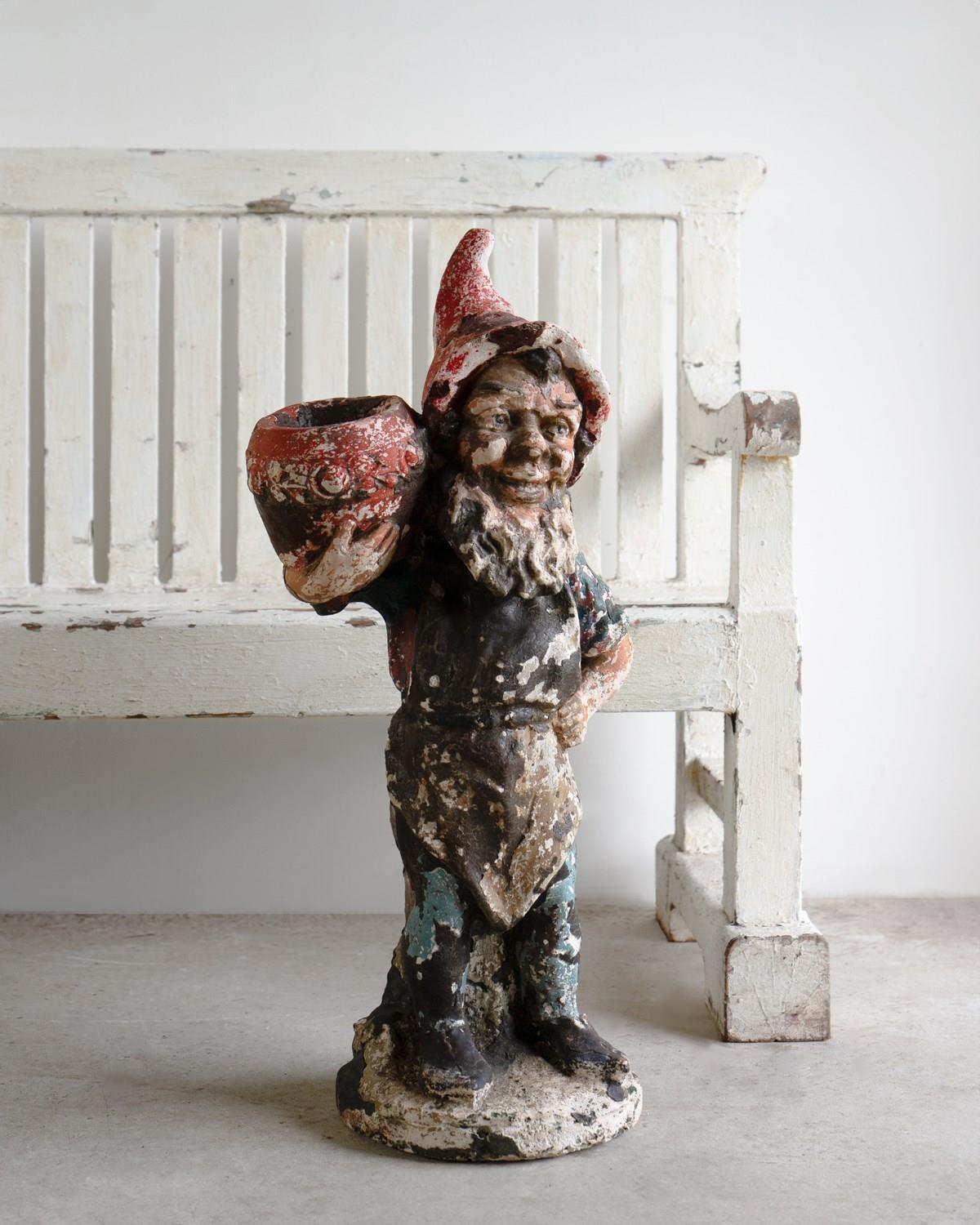 An early and larger-than-average example of a garden gnome.