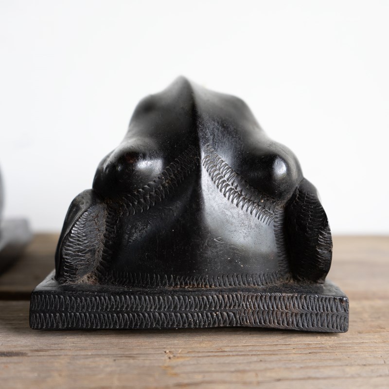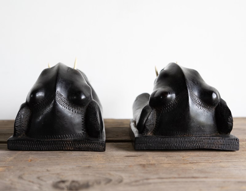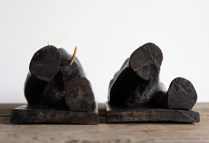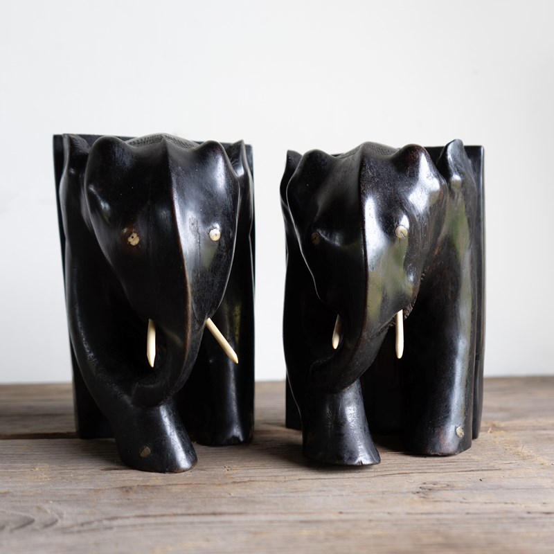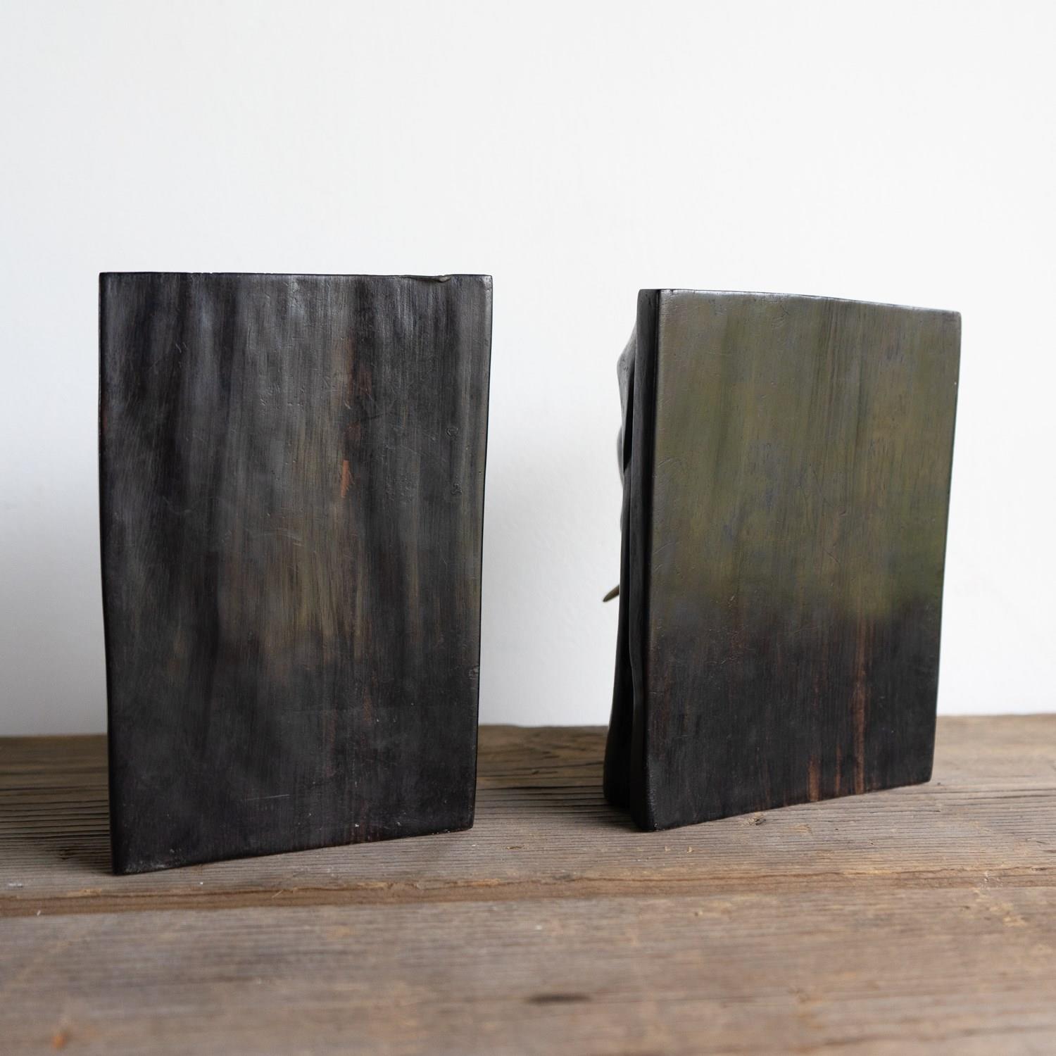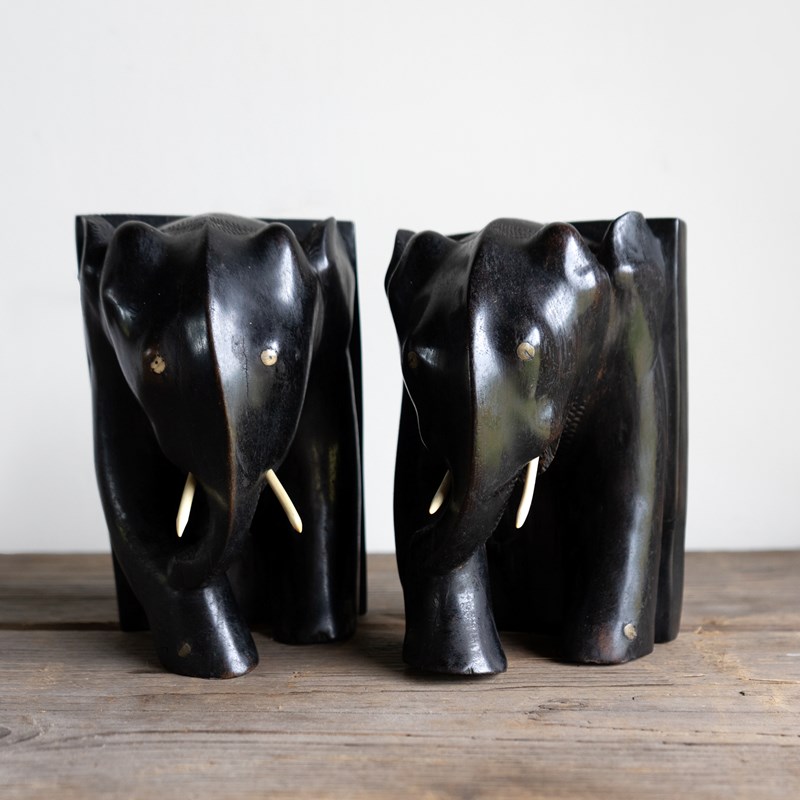 Antique Anglo-Indian Hand Carved Ebony Elephant Bookends