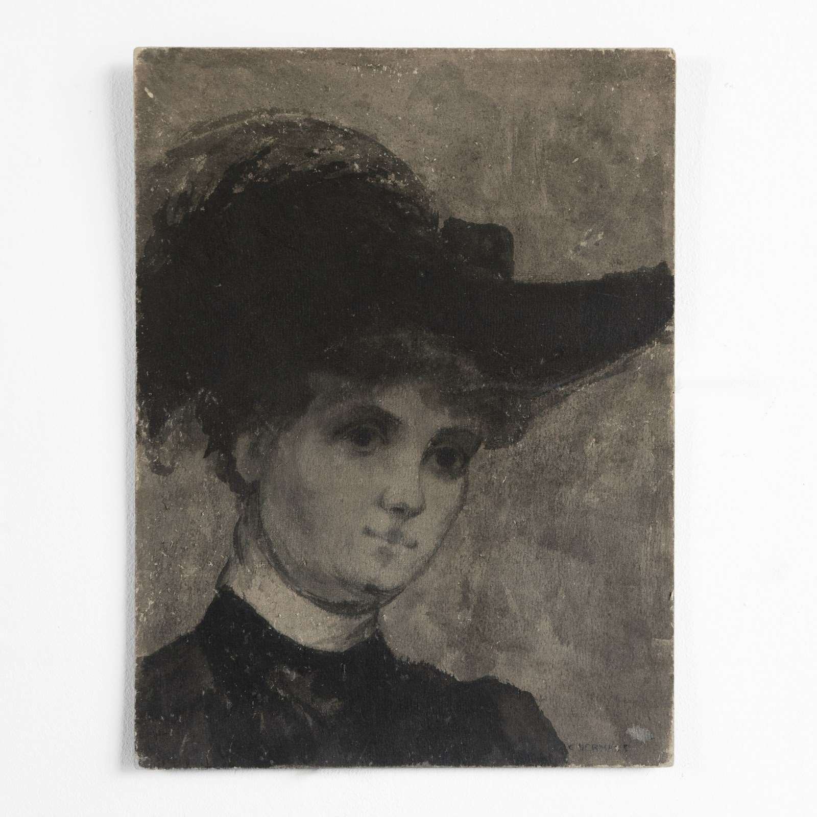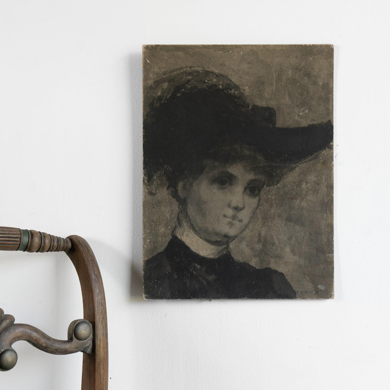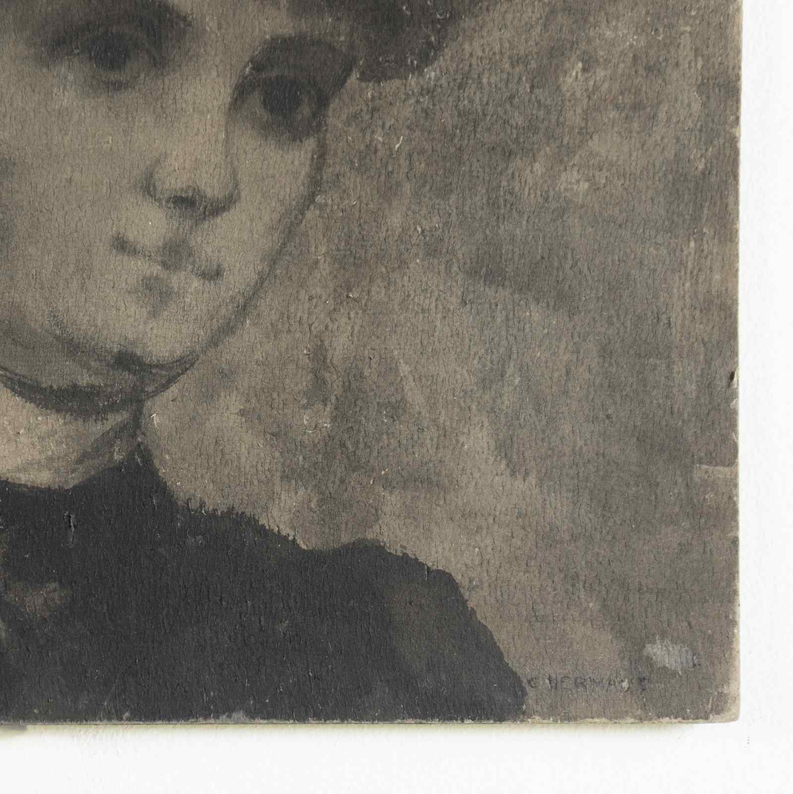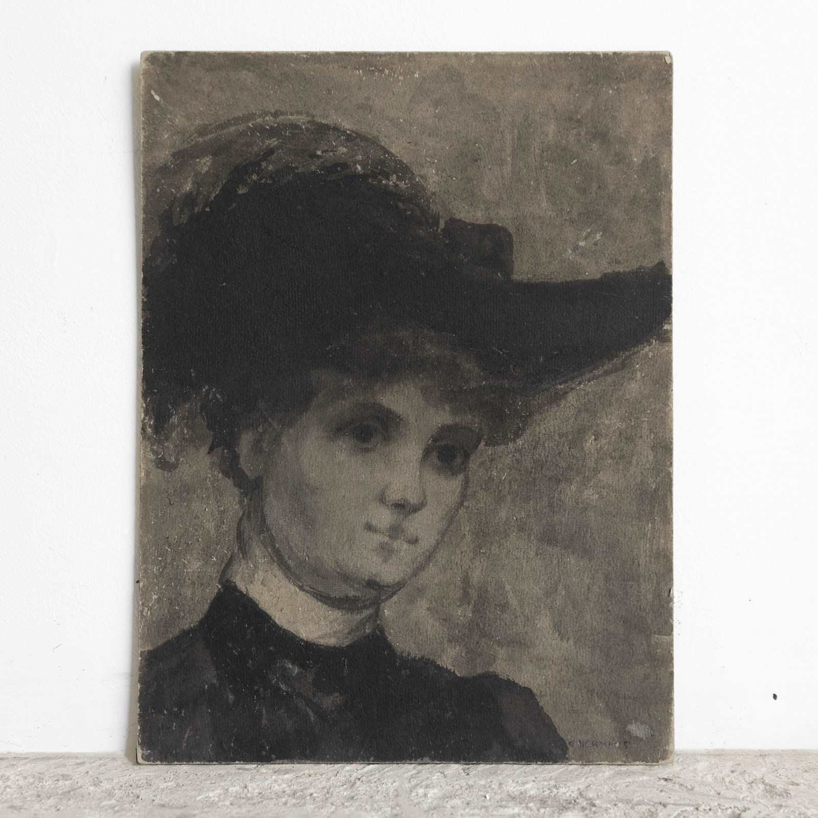 The work has been inscribed to the lower right ‘C. Hermans’. It would make sense that this could potentially be Charles Hermans (1839-1924), a well-known painter of portraits; the date fits, and the work does seem to be by a very capable hand. We have also found other examples of works on cardboard by the artist.