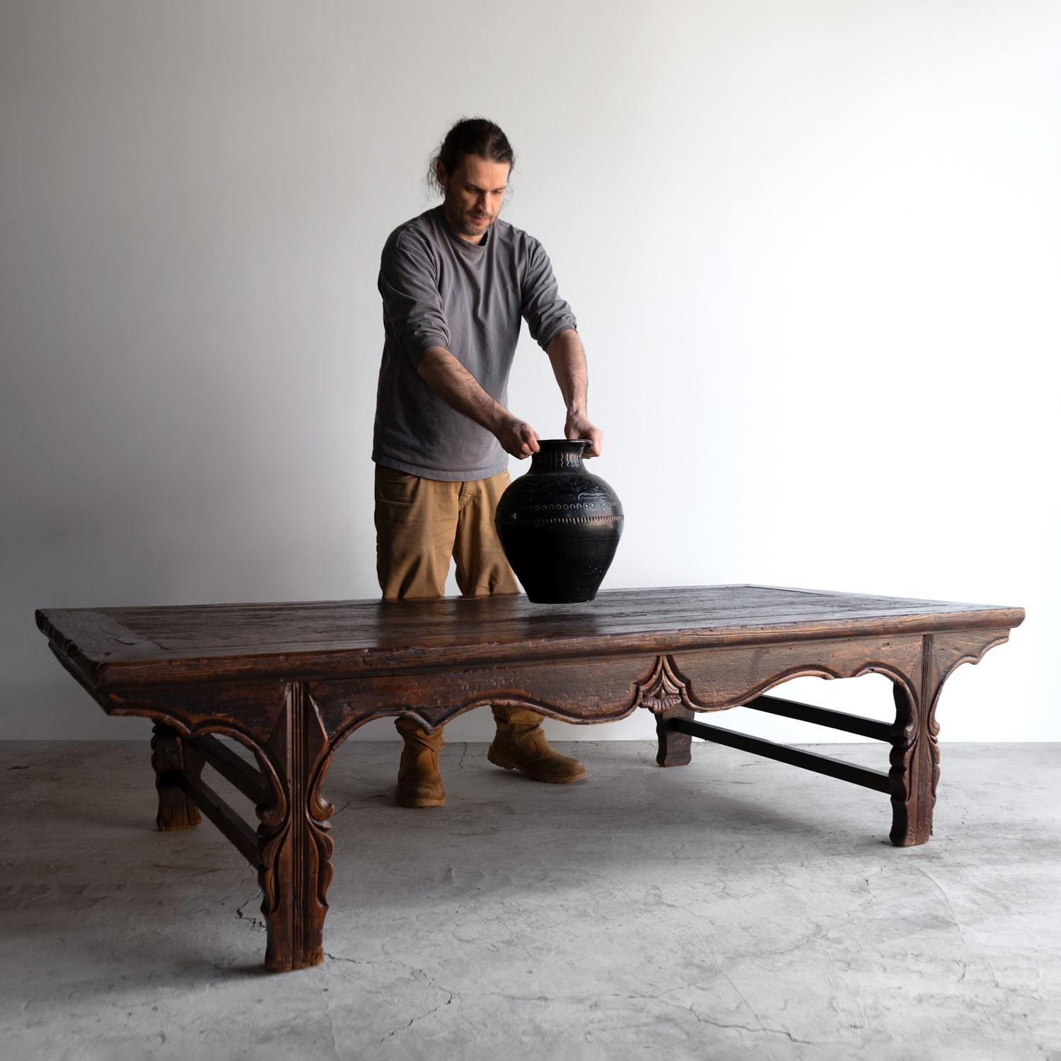 A larger than average Kang type table which would have originally sat over a heated brick platform (Kang), these tables were generally multi purpose, the focal point of the home and were used for communal dining, serving tea, as writing tables and sometimes slept on too.