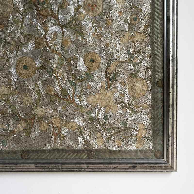 Overall, the panel is in good vintage order. The majority of the beadwork survives well with minor losses and wear commensurate with age. Some of the natural dyes on the flowers have faded somewhat, as you would expect from a piece of this period. Overall, it is our opinion that this adds to its overall decorative appeal. The frame is also in good vintage condition with only minor wear commensurate with age.