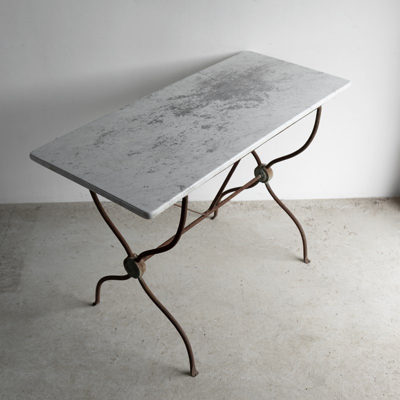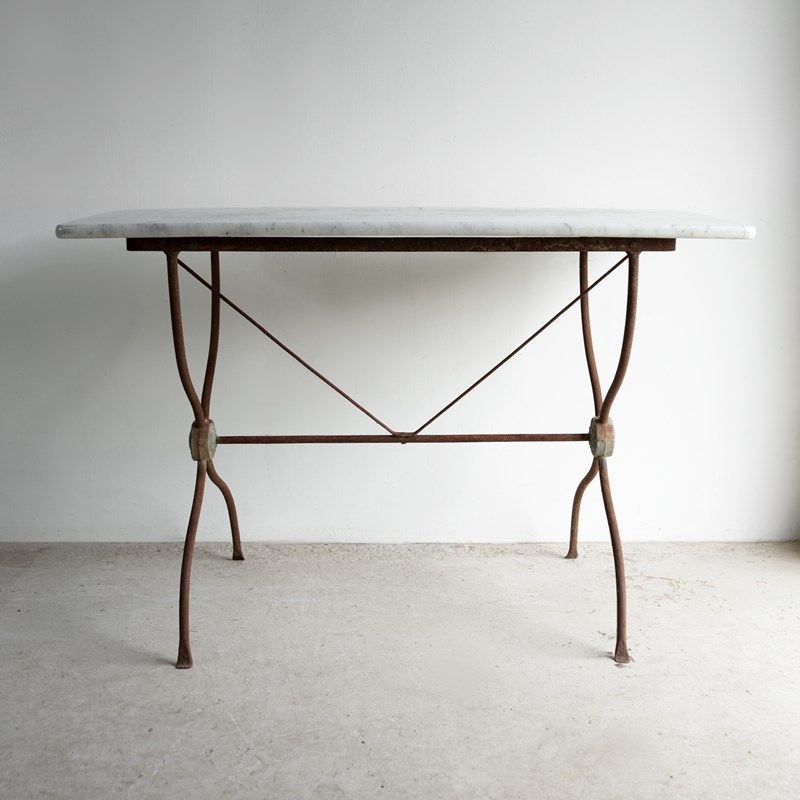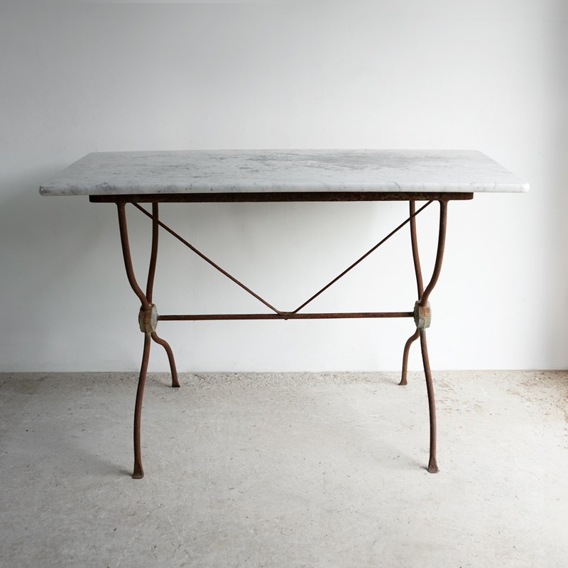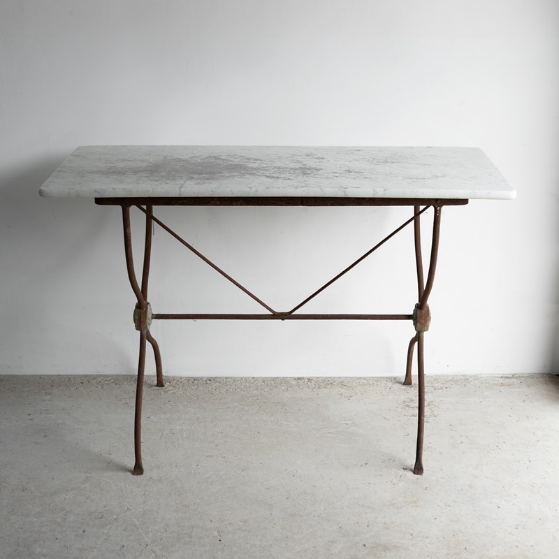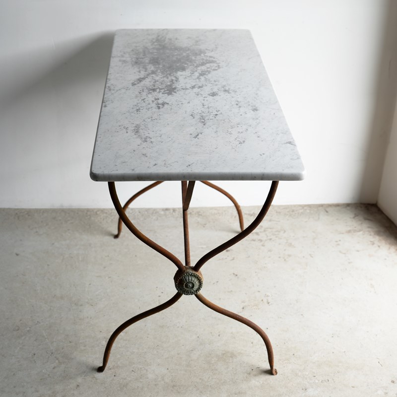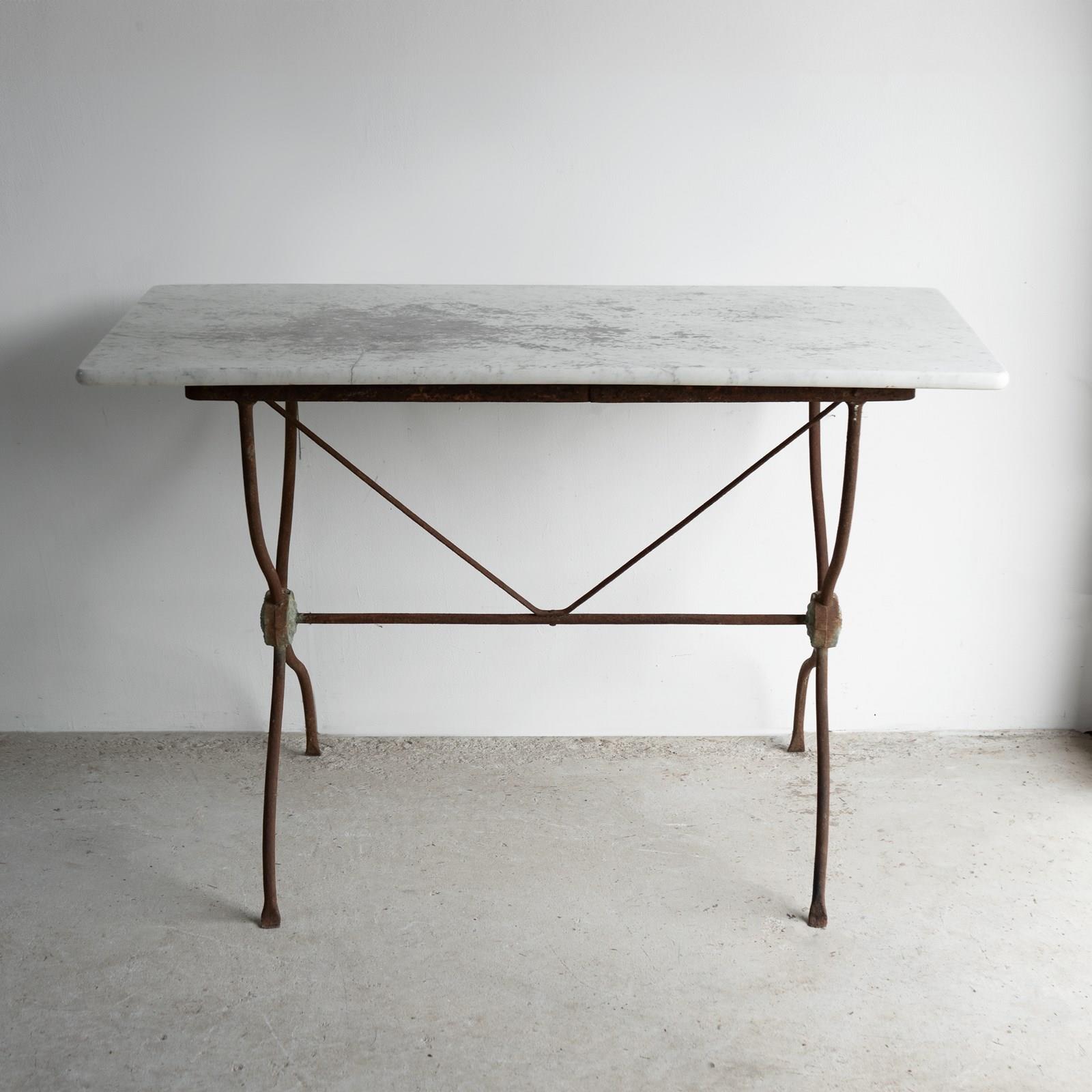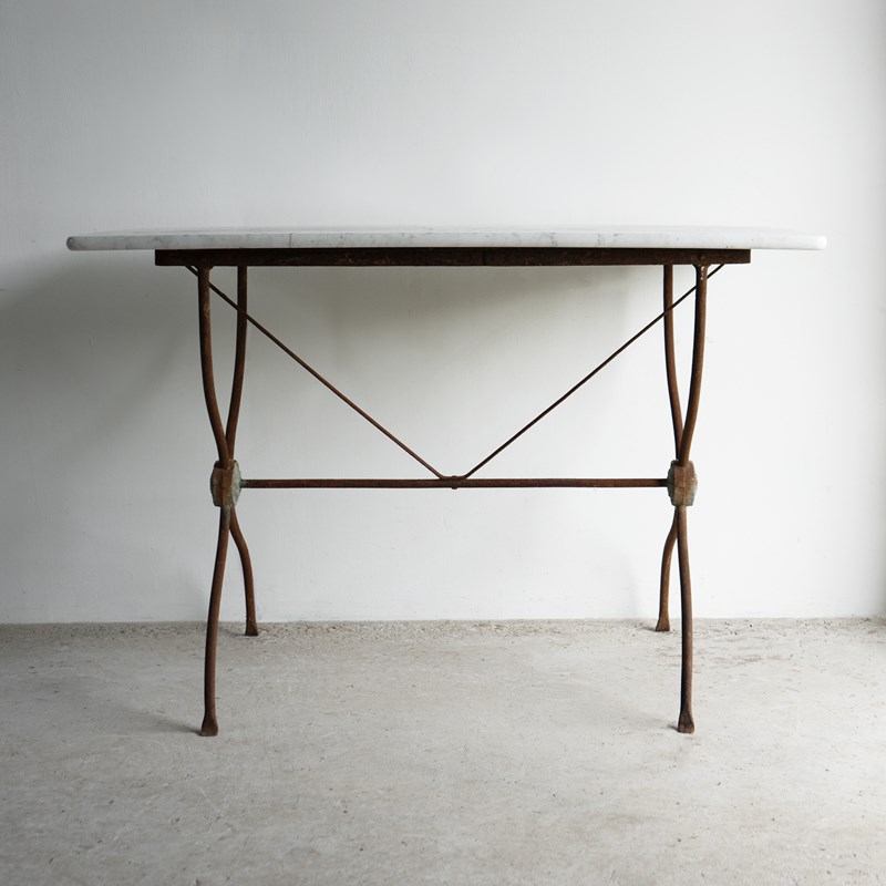 Antique French Wrought Iron And Marble Bistro Table, 19Th Century