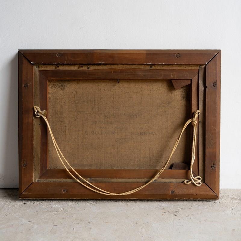 The Windsor and Newton canvas can be dated to the late 19th century, circa 1895, so presumably the work was painted then or soon after that. Until it came into our possession, the work was behind glass, and it appears that it had been behind the glass for a great number of years, if not since its creation. Although unusual for a work in oil, it appears in this case to have preserved the piece and is in remarkable condition for its age. The work probably dates from the late 19th or early 20th century.