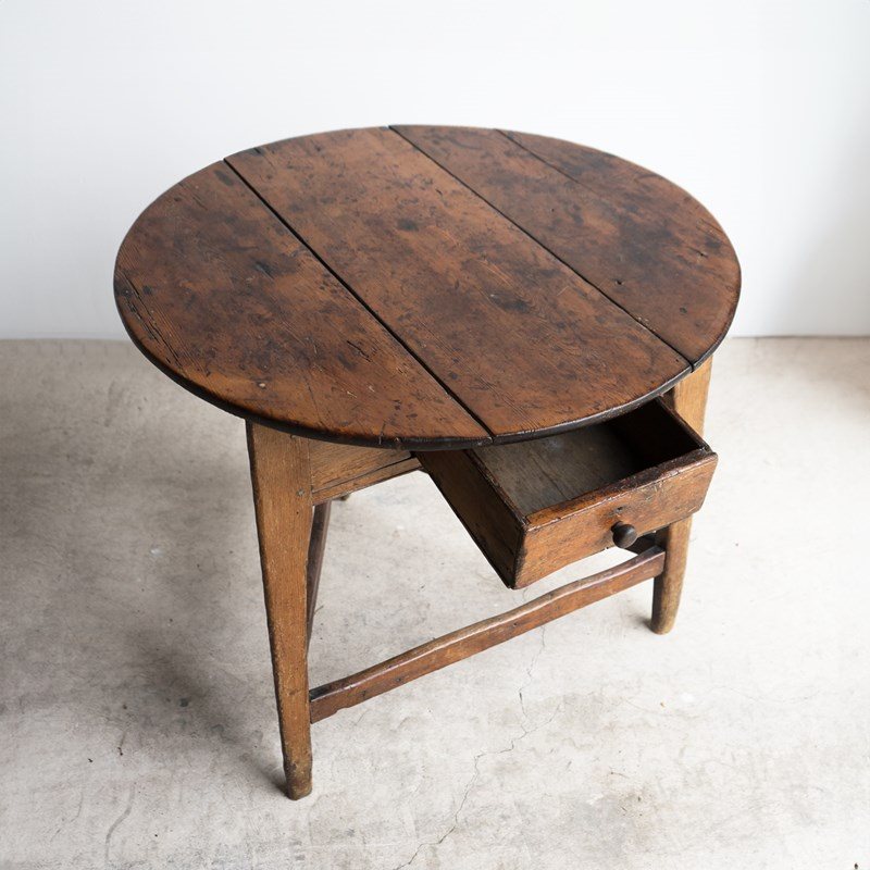 Antique Pine Cricket Table With Integral Drawer, 19Th Century