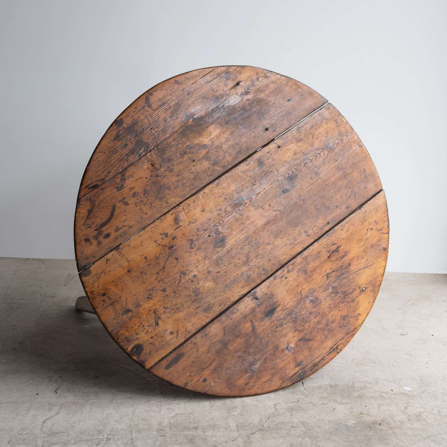 ANTIQUE RUSTIC WOODEN CIRCULAR CRICKET TABLE