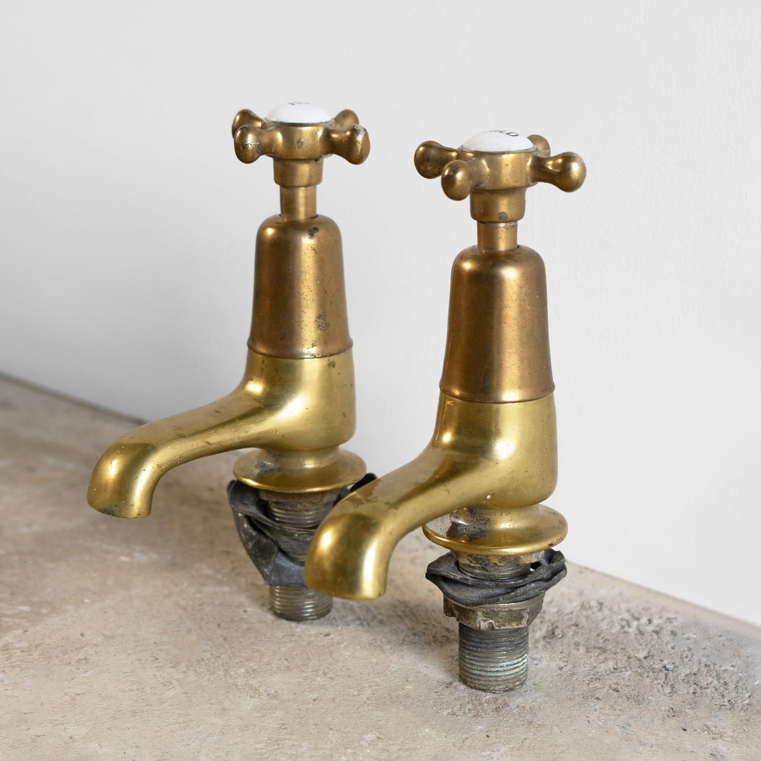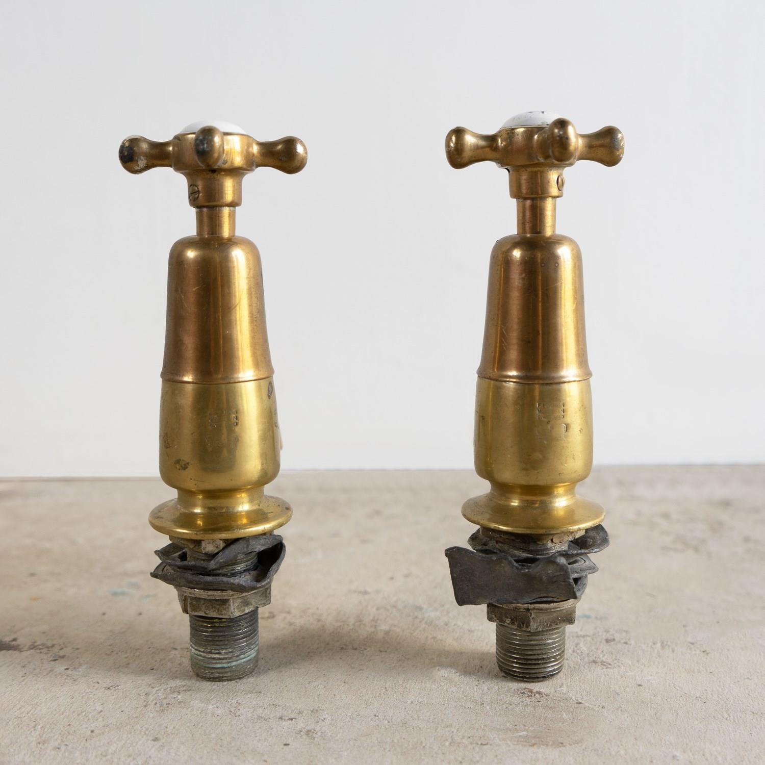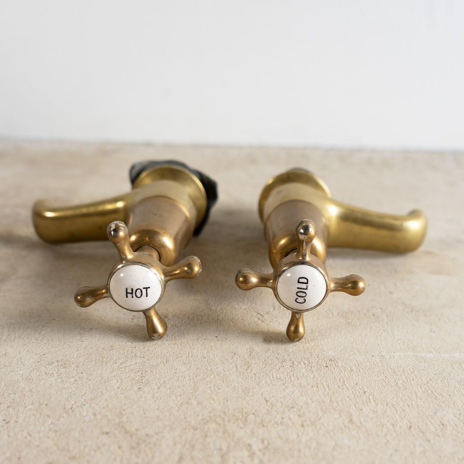 Antique Reclaimed Edwardian Brass & Porcelain Bath Taps By Fiddian, Early 20Th C