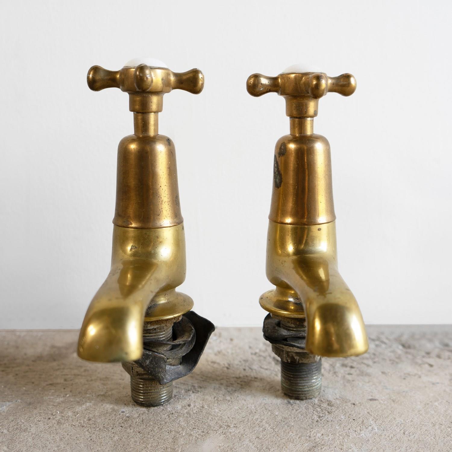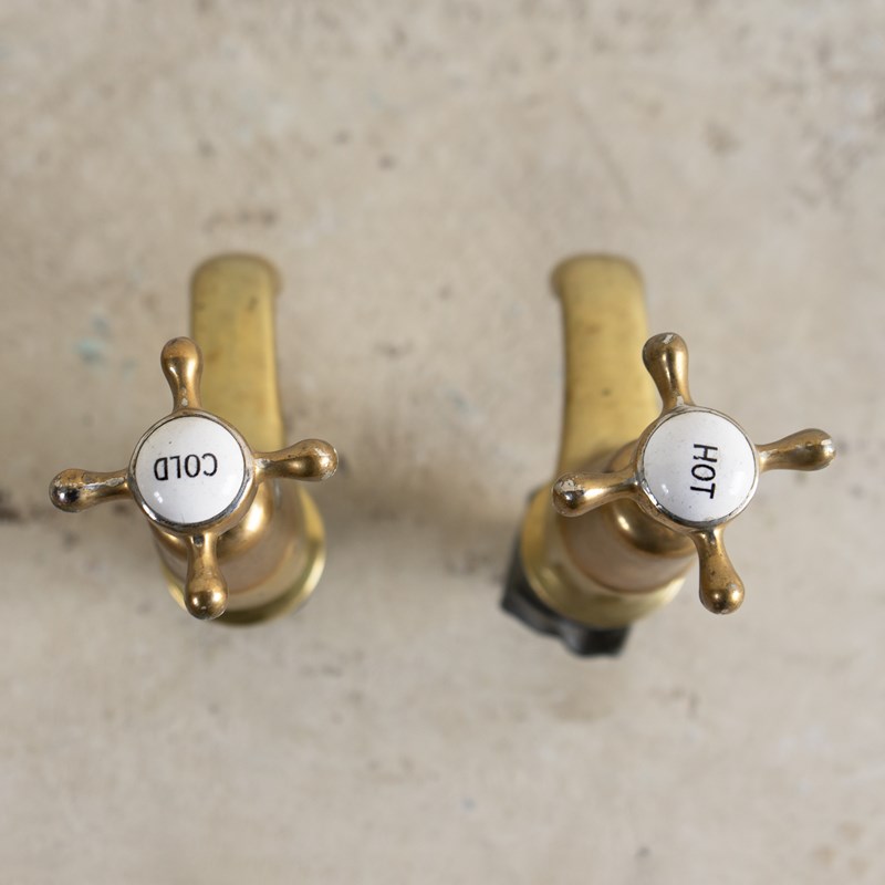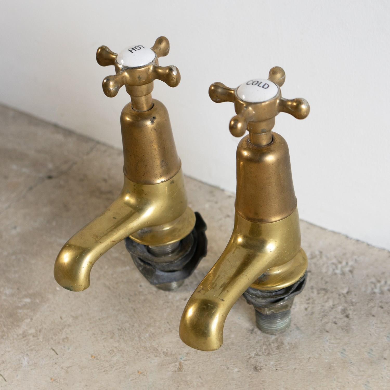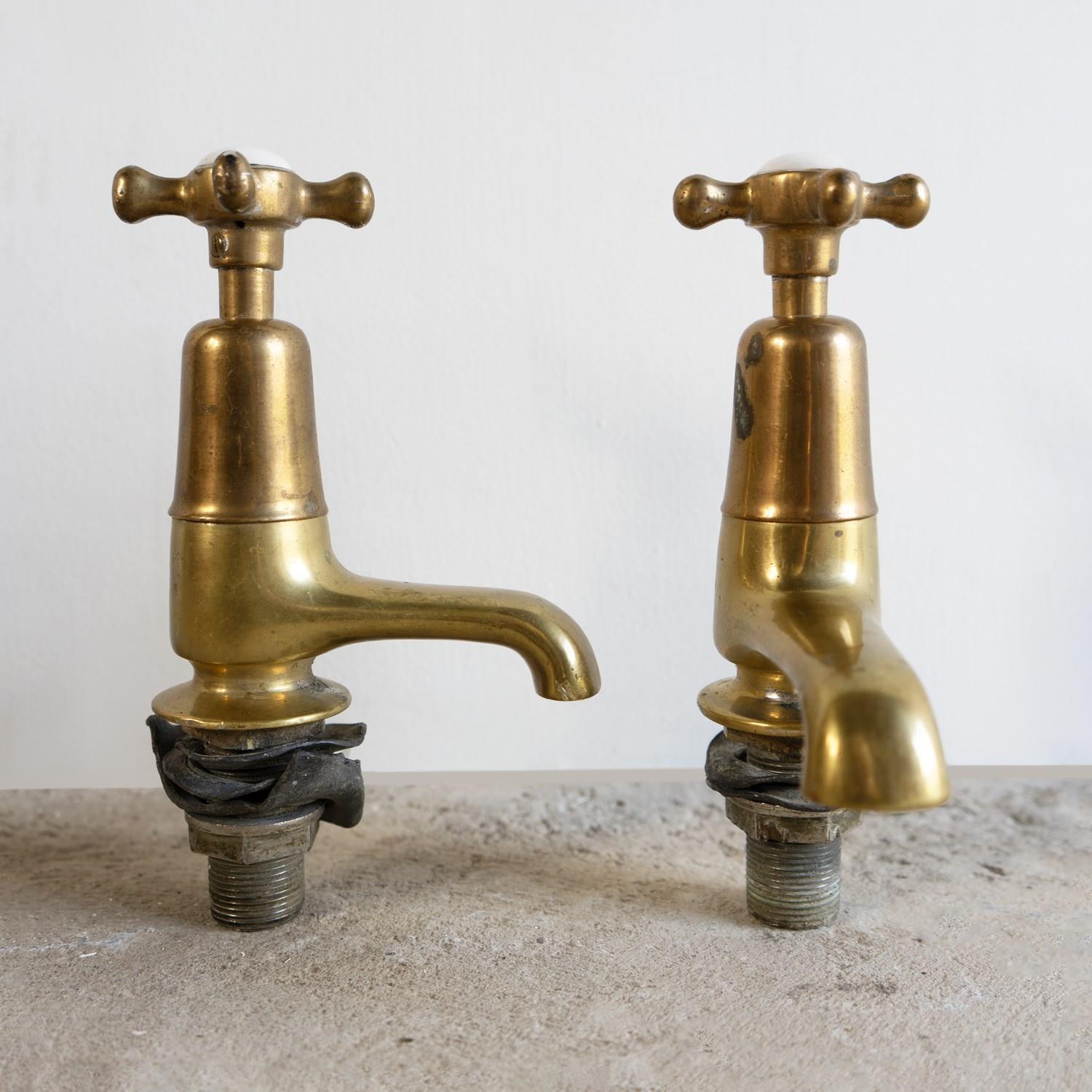 Antique Reclaimed Edwardian Brass & Porcelain Bath Taps By Fiddian, Early 20Th C