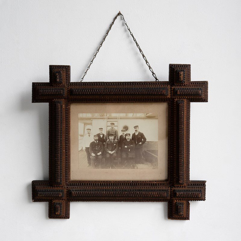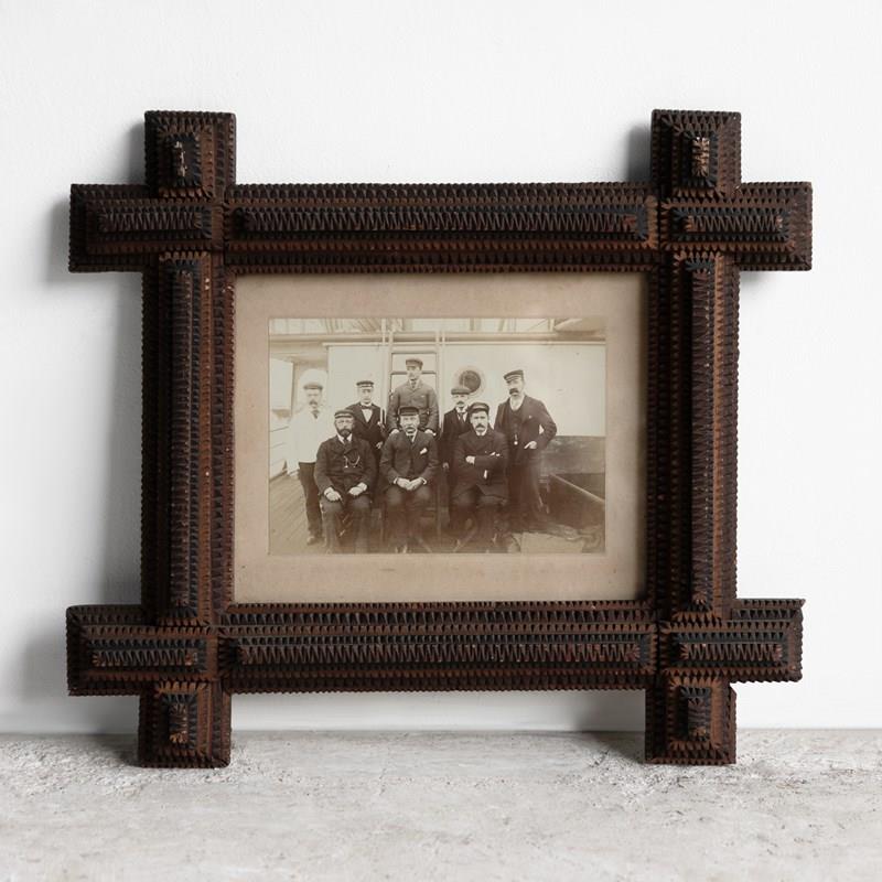 Antique Tramp Art Picture Frame With Original Sailor Photograph, C. 1890S