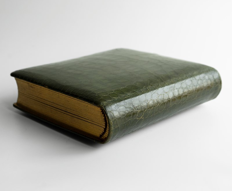 Antique Victorian Green Crocodile Skin Leather Photograph Album And Contents
