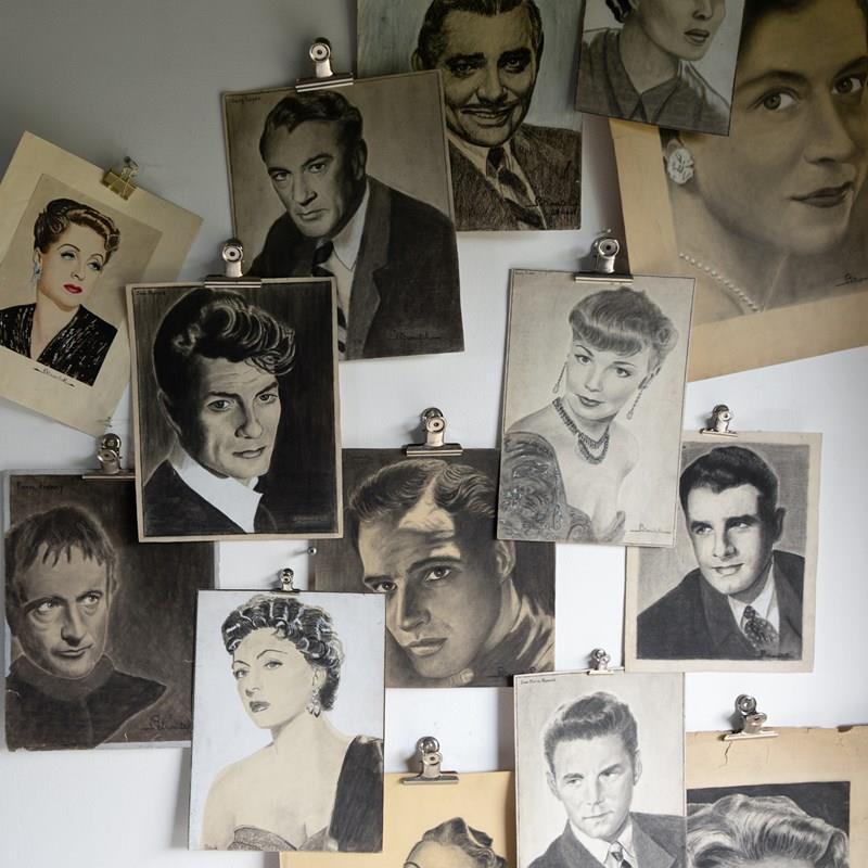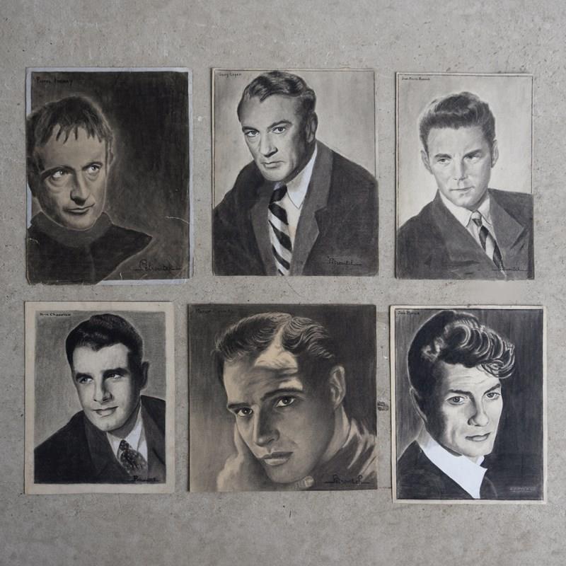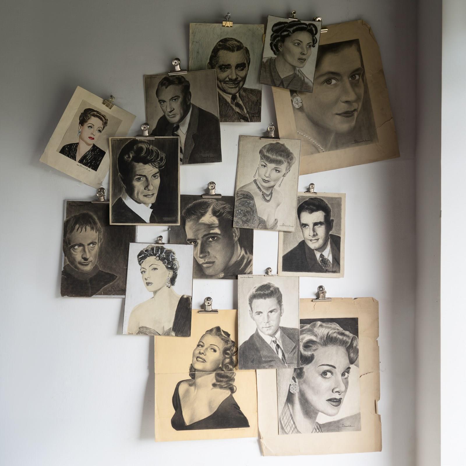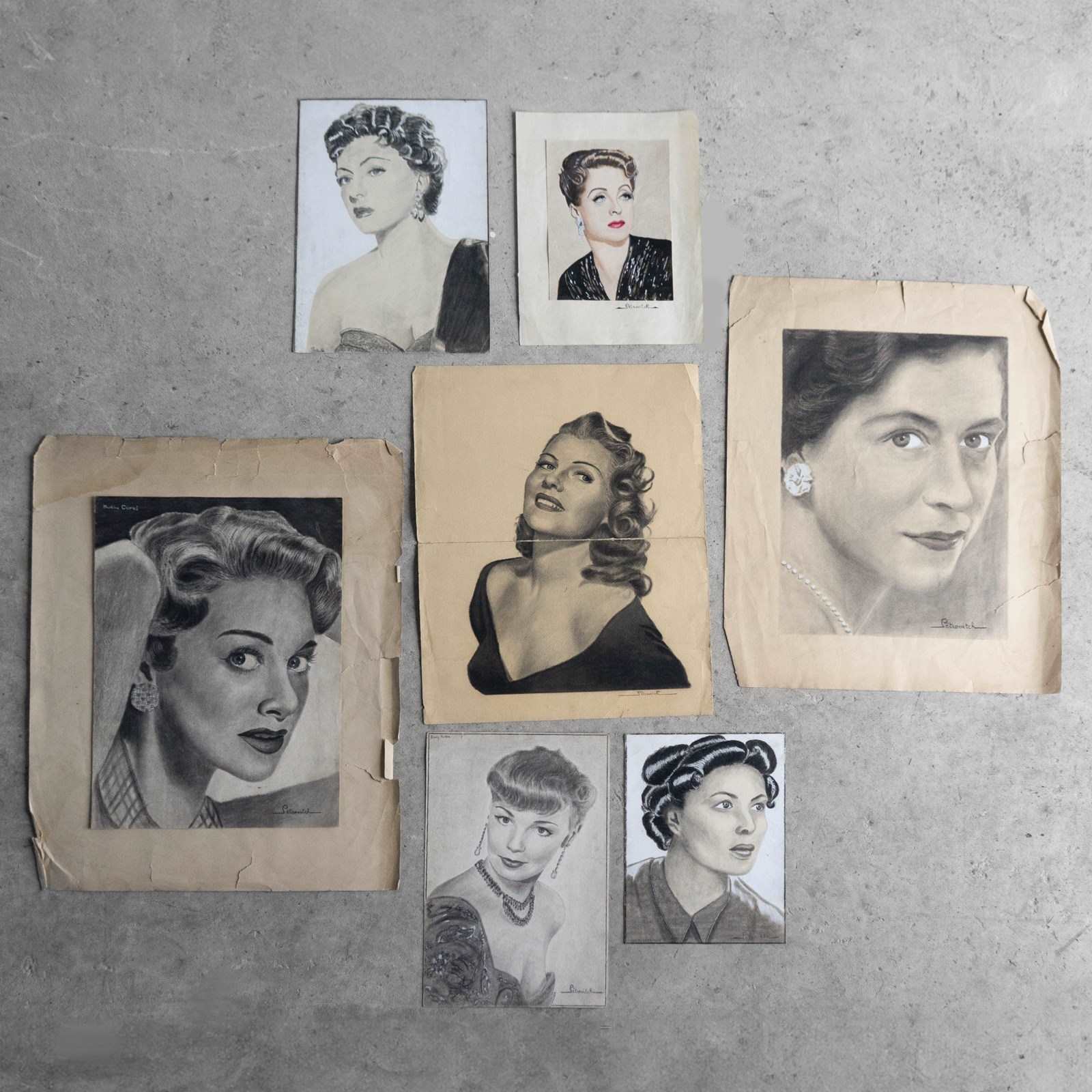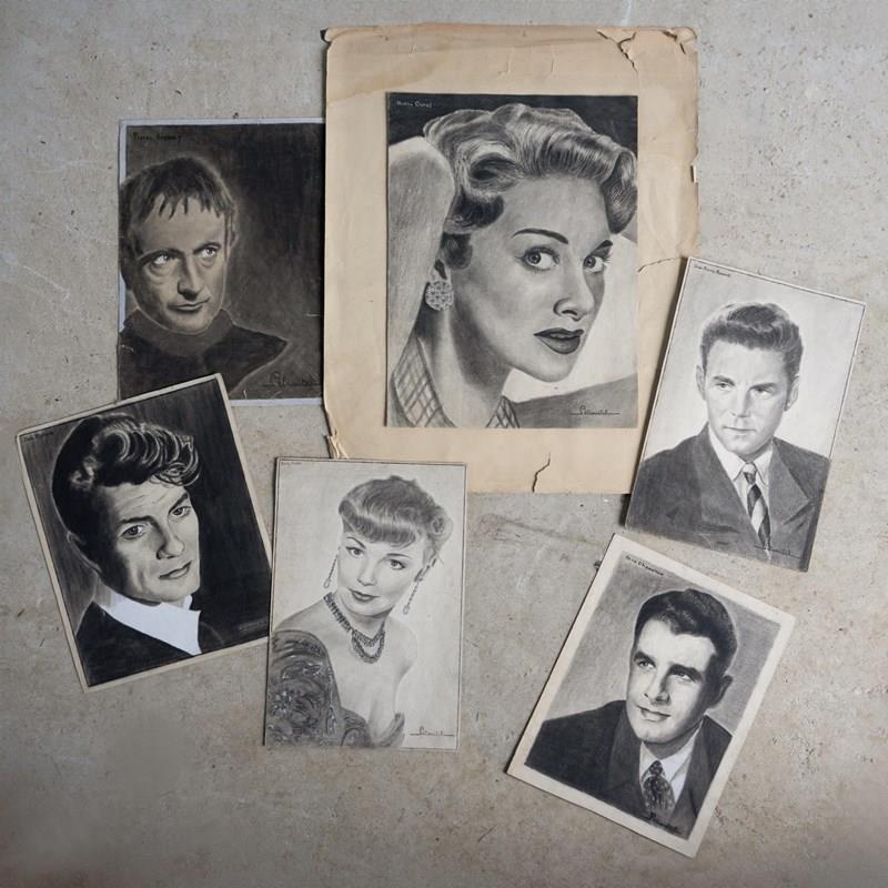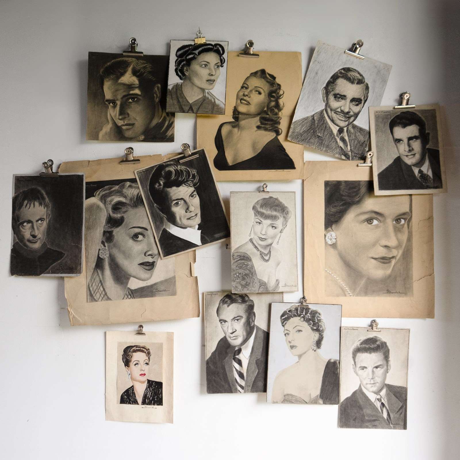 A collection of fourteen original portrait drawings of Hollywood and French film stars.