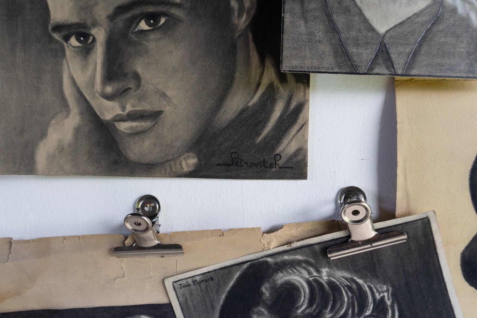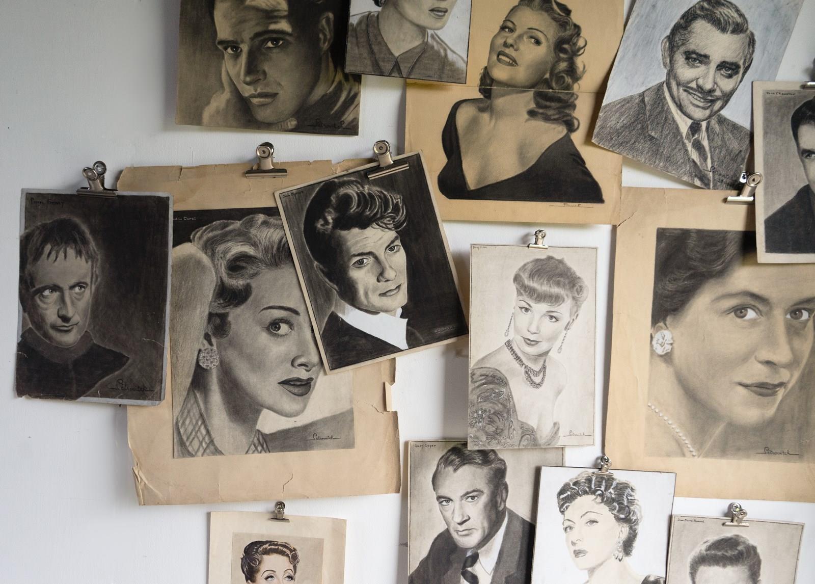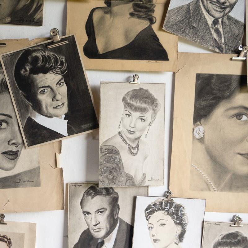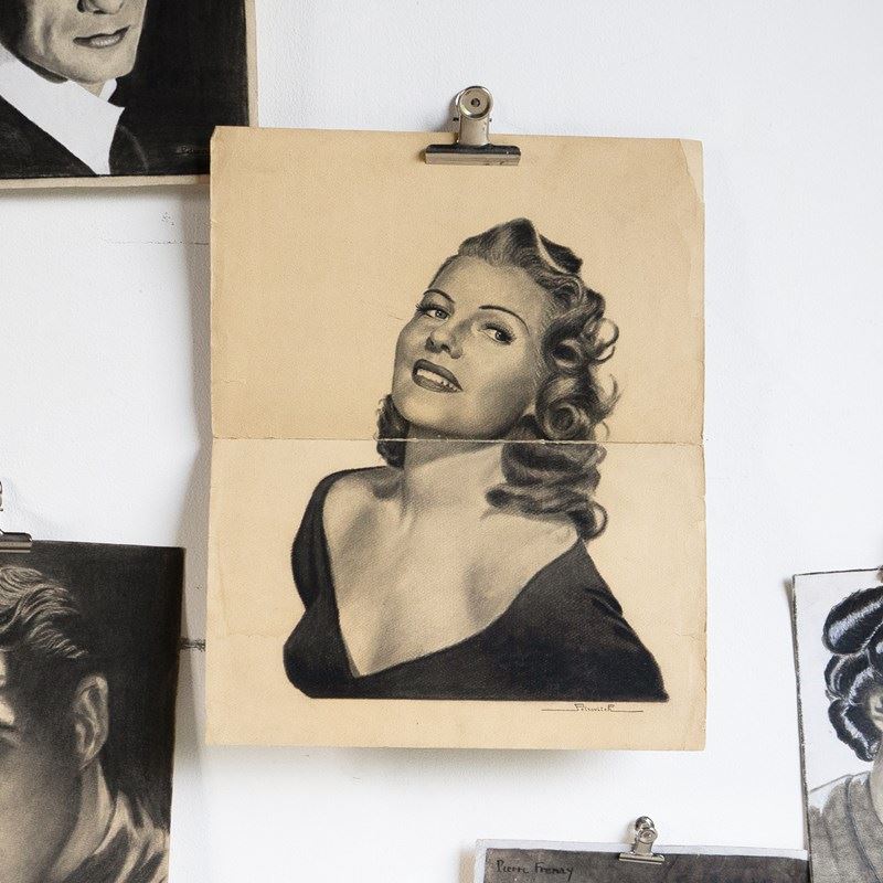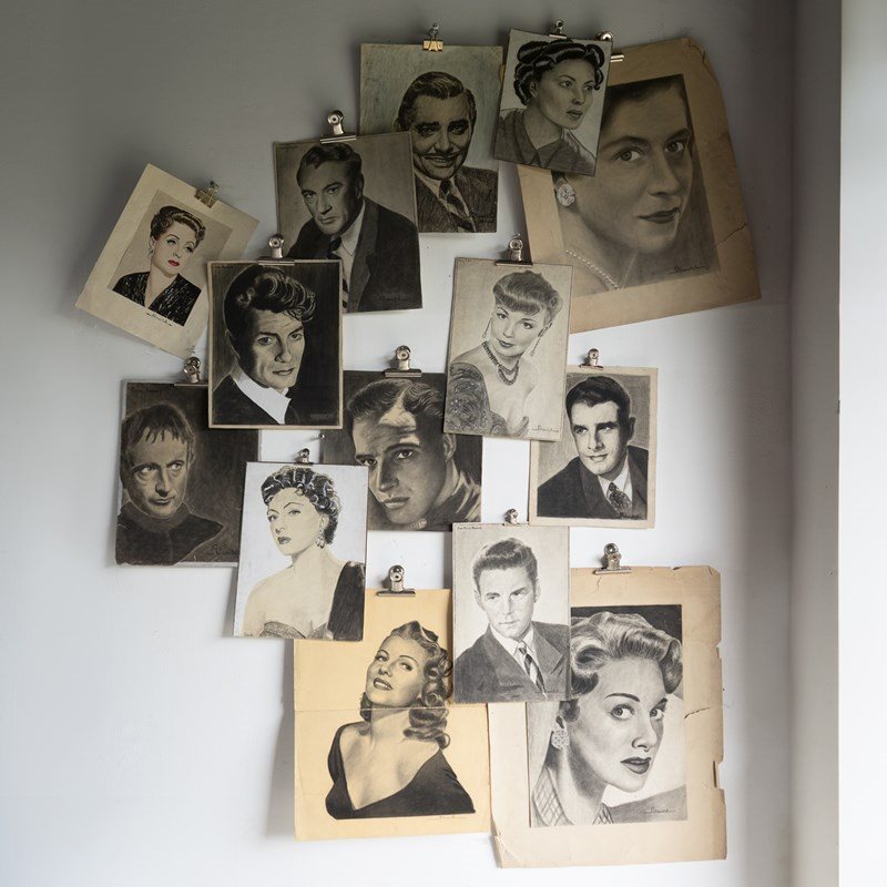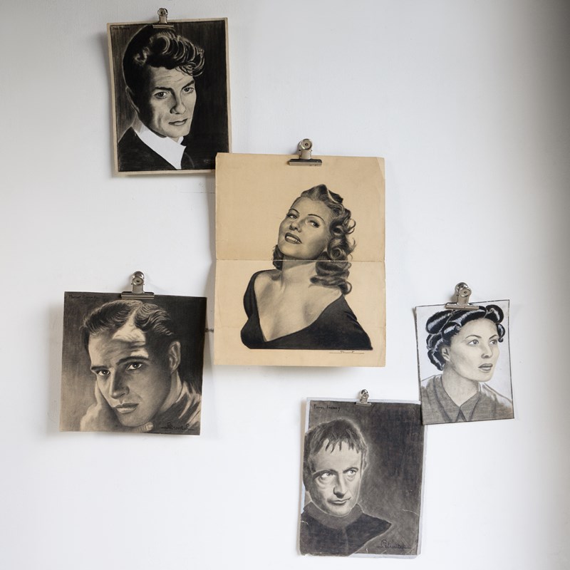 A collection of fourteen original portrait drawings of Hollywood and French film stars.