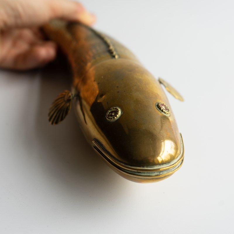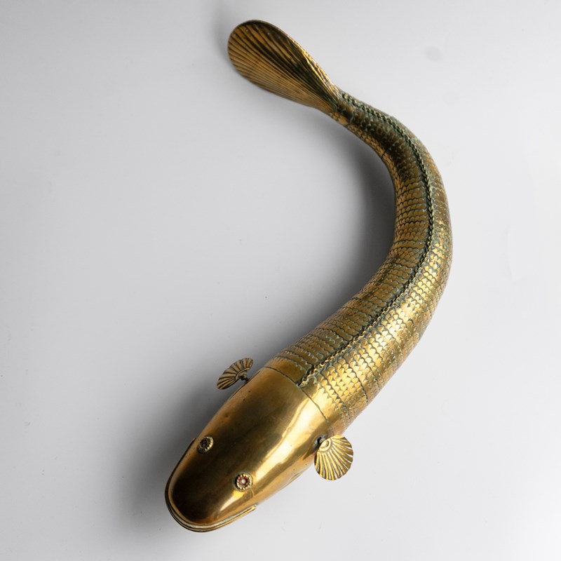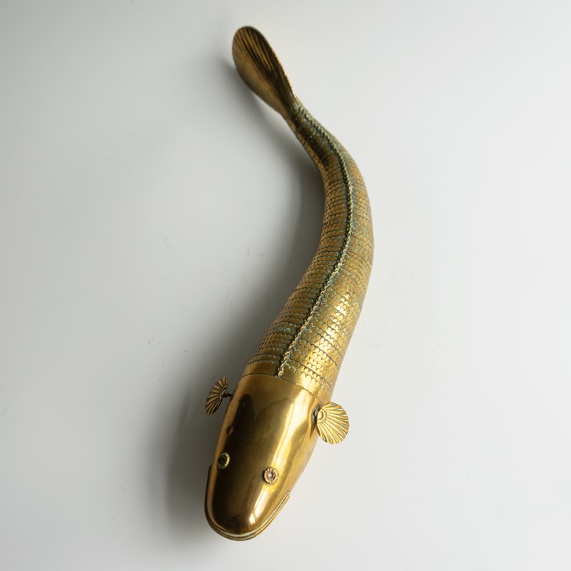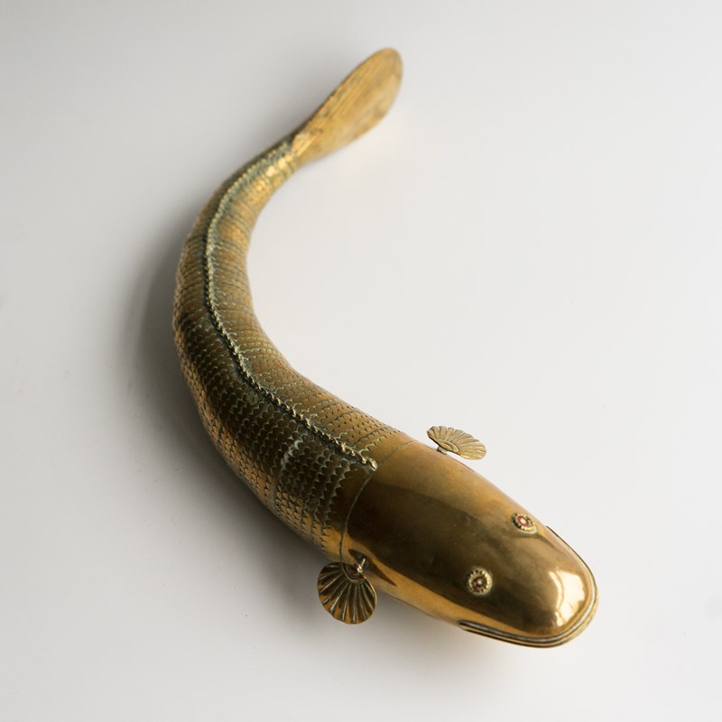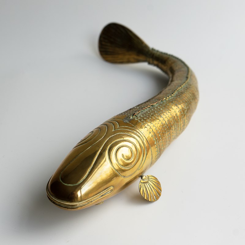 Large Antique Anglo Indian Folk Art Articulated Brass 'Medina' Fish, Late 19Th C