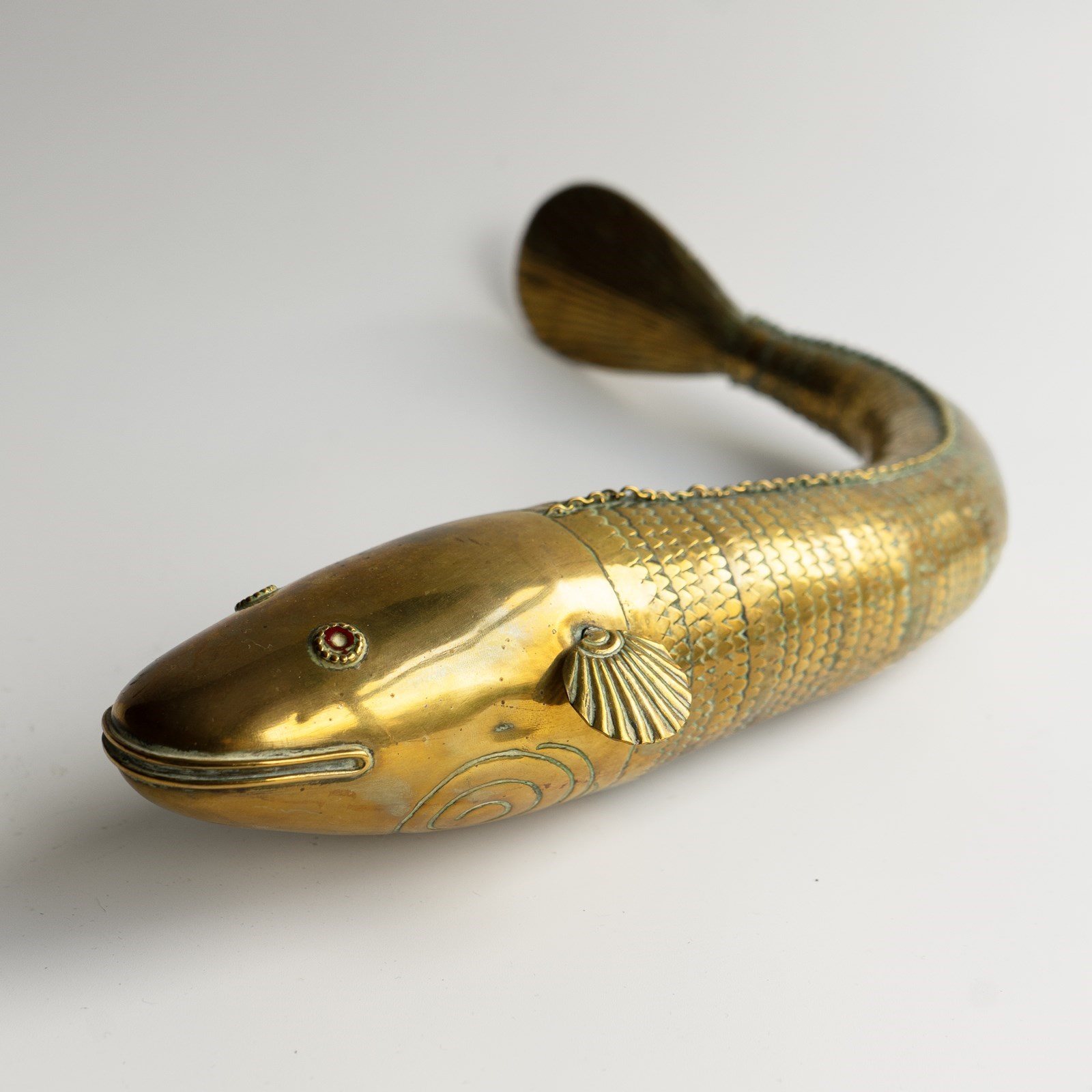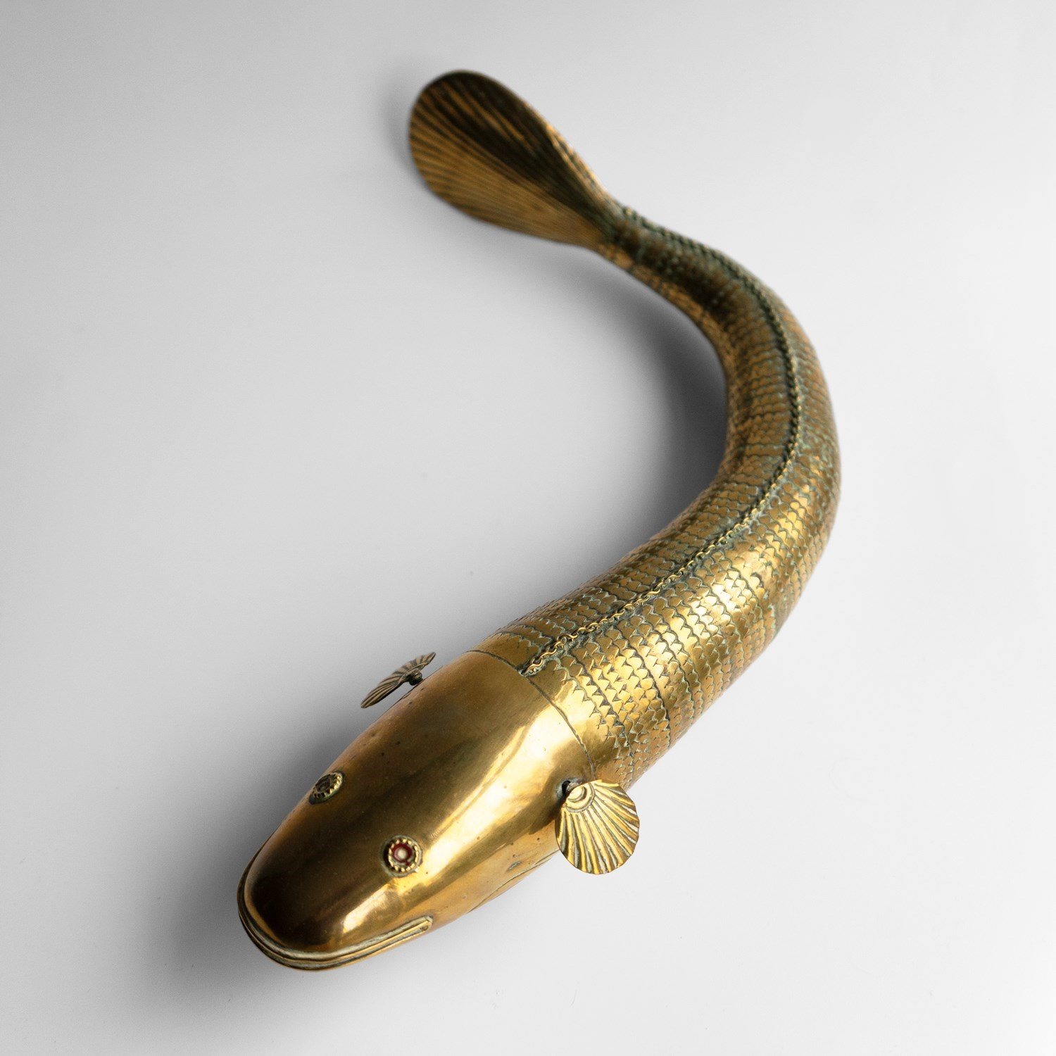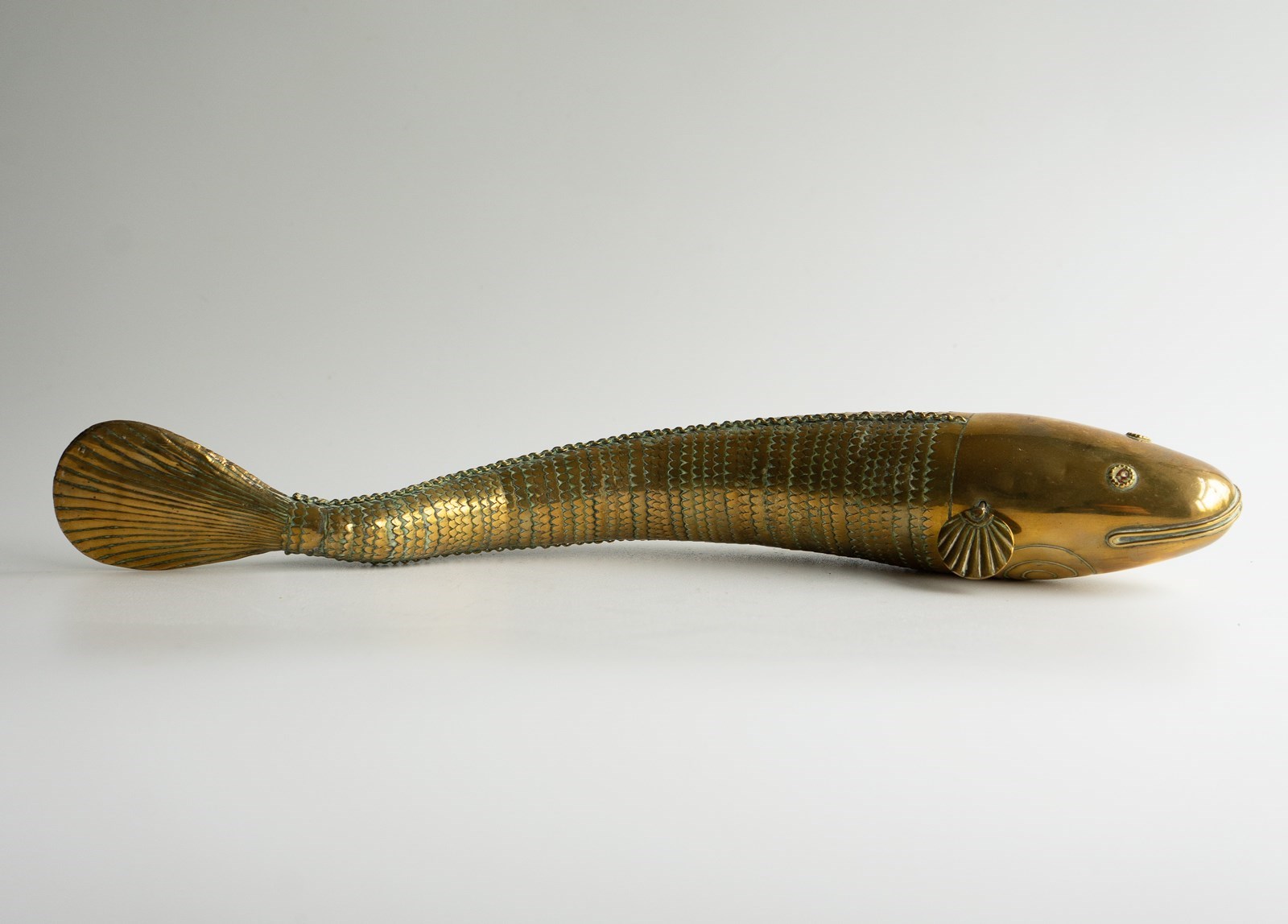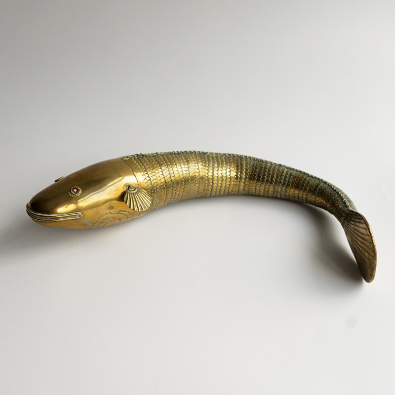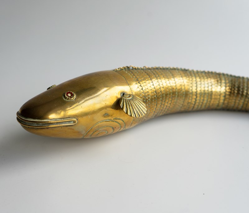 ANTIQUE INDIAN ARTICULATED FISH SCULPTURE