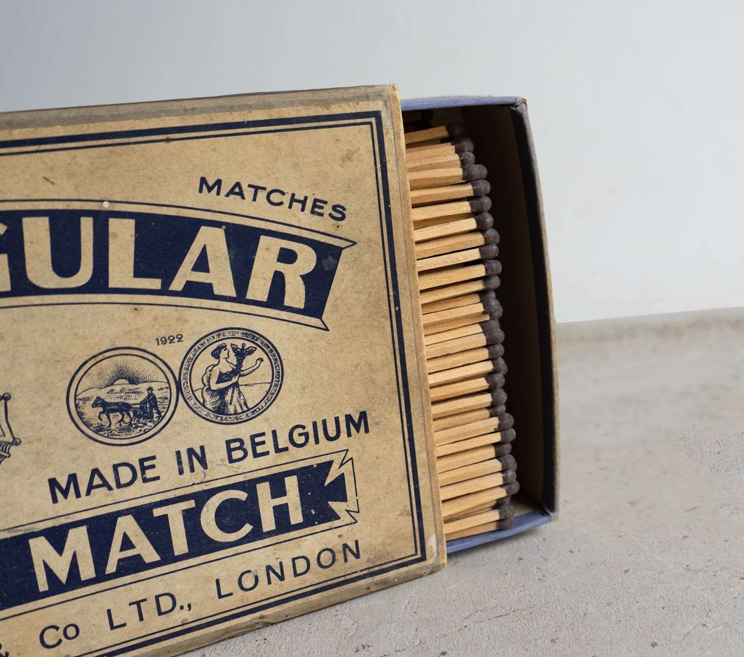 Unusually, this example is full of its original contents of the oversized matches.