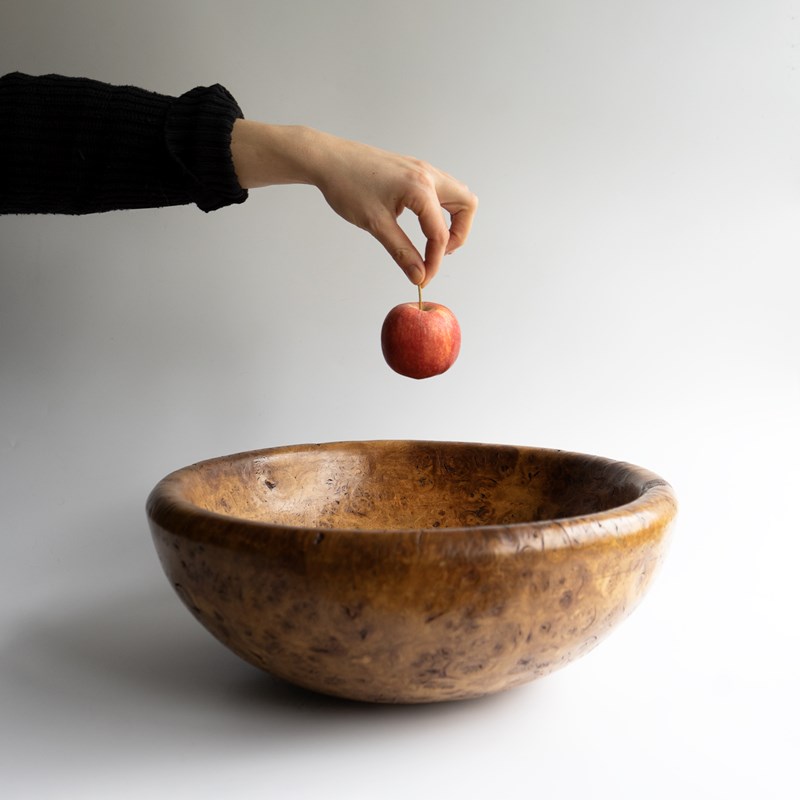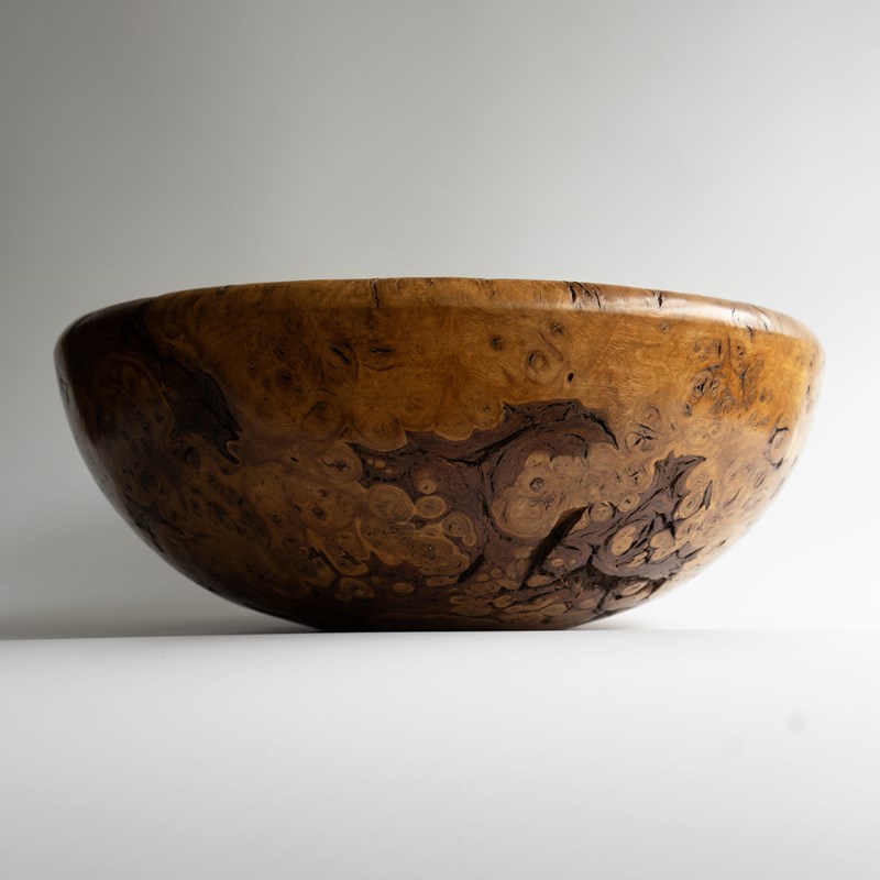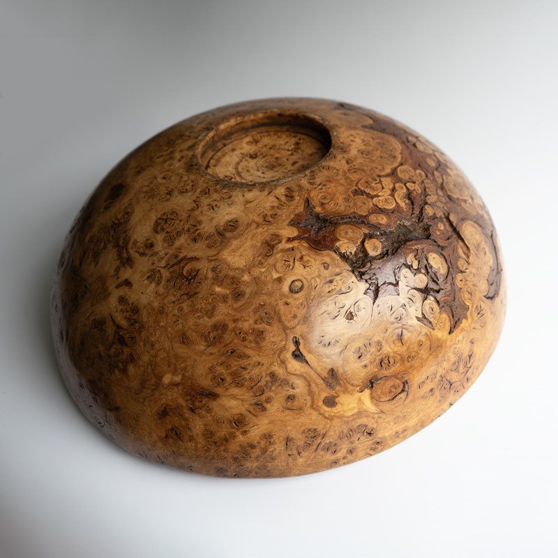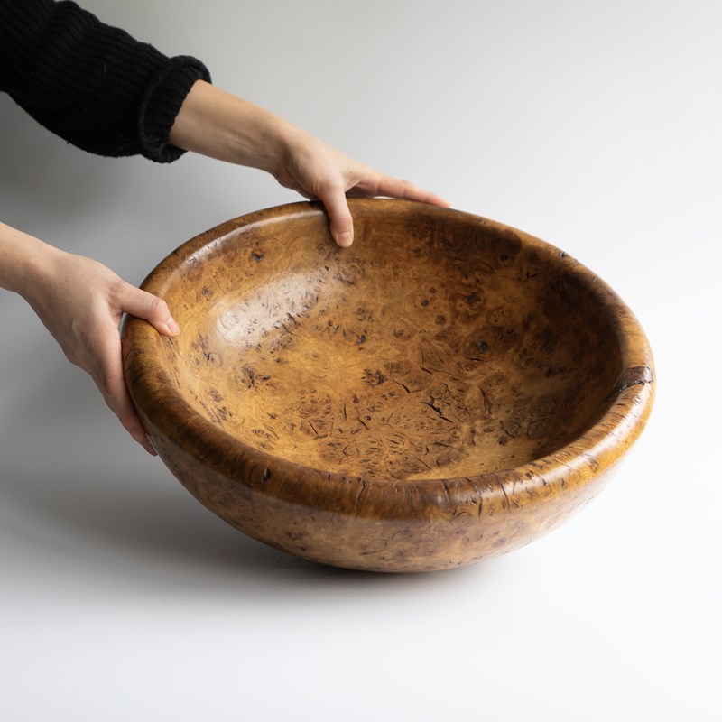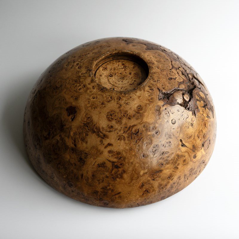 Large Vintage Turned Burr Oak Bowl, Table Centrepiece, Mid 20Th Century