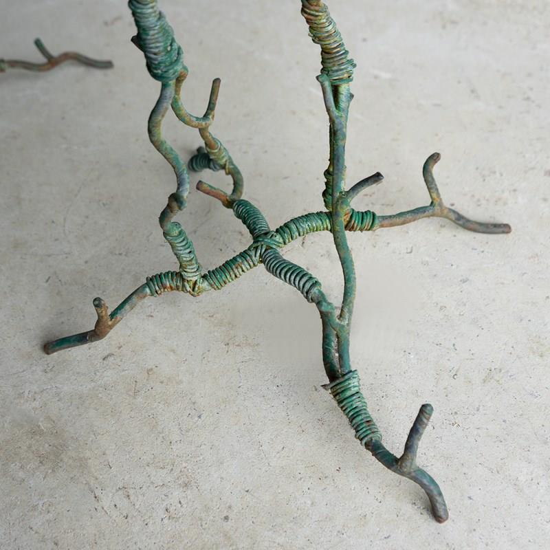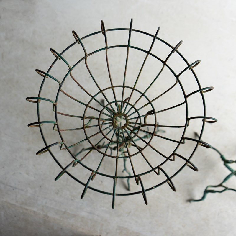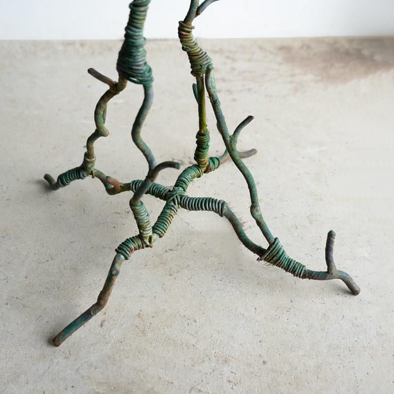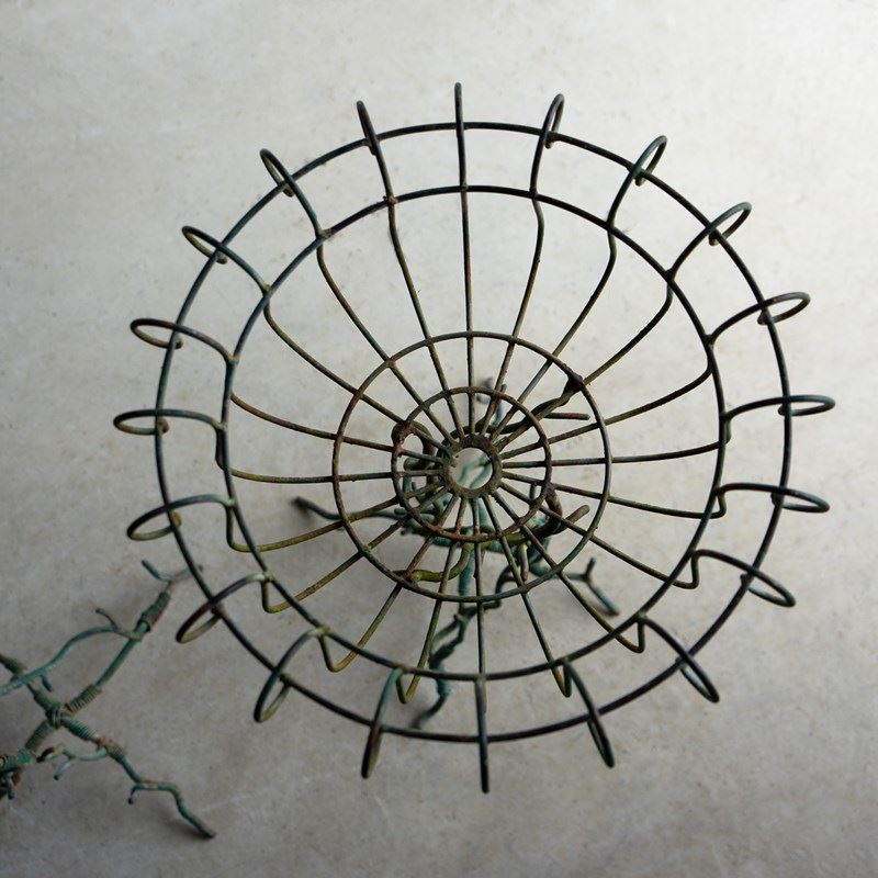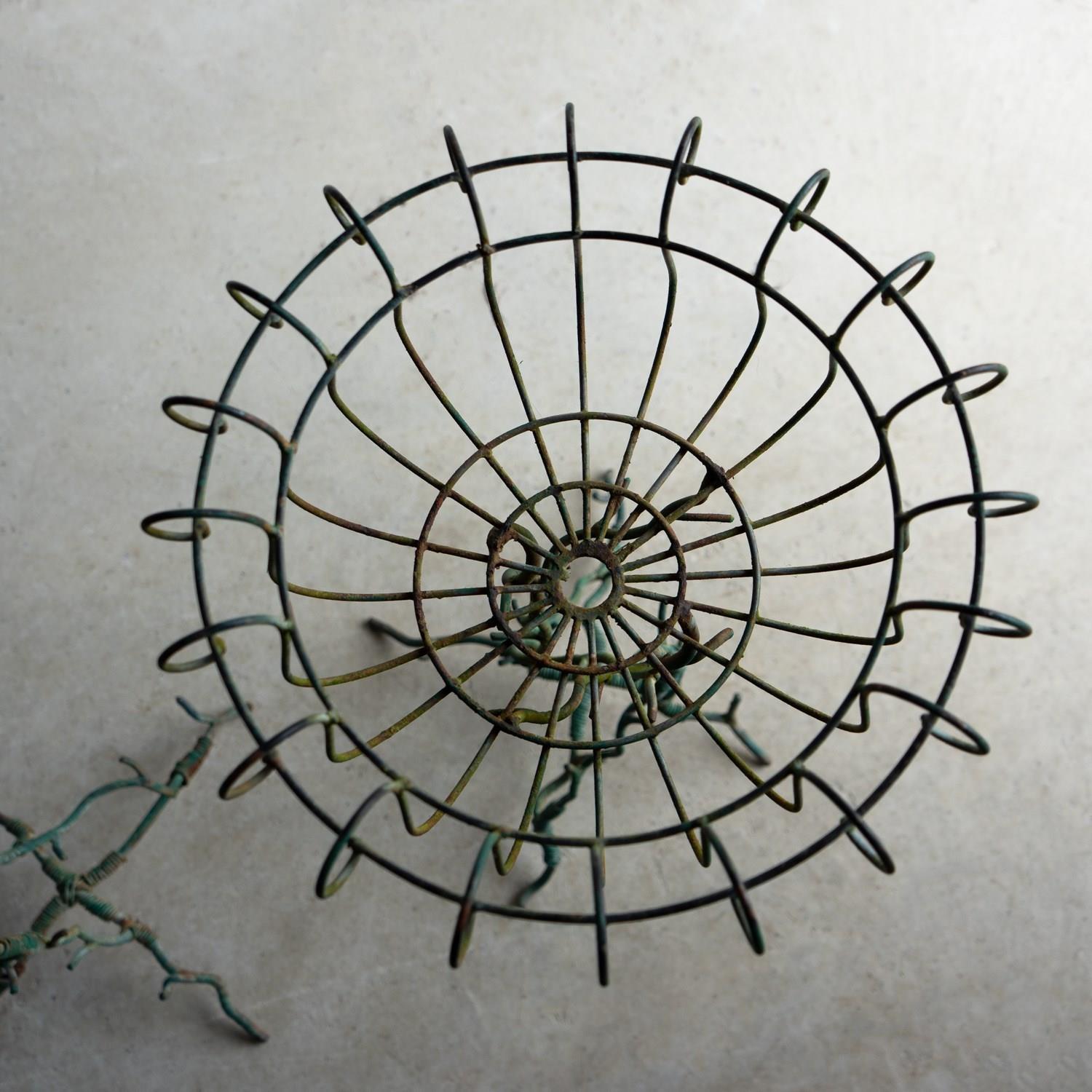 Pair of antique plant stands. Naturalistic wrought iron and wirework bases in the faux bois taste to emulate branches and twigs.