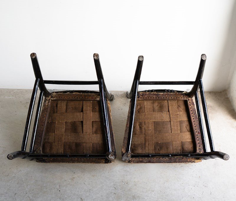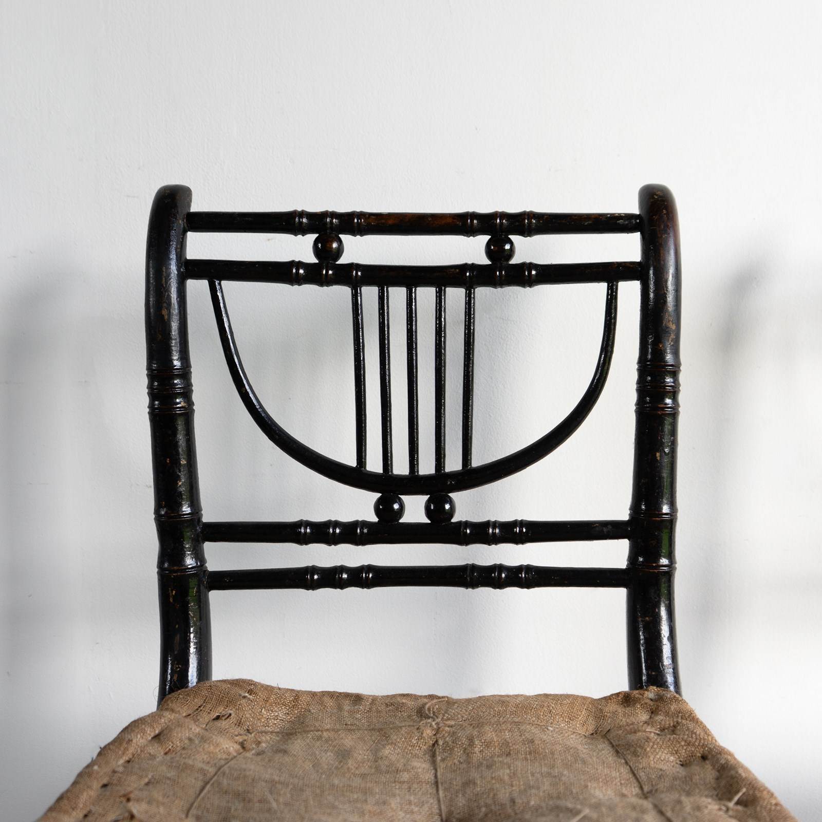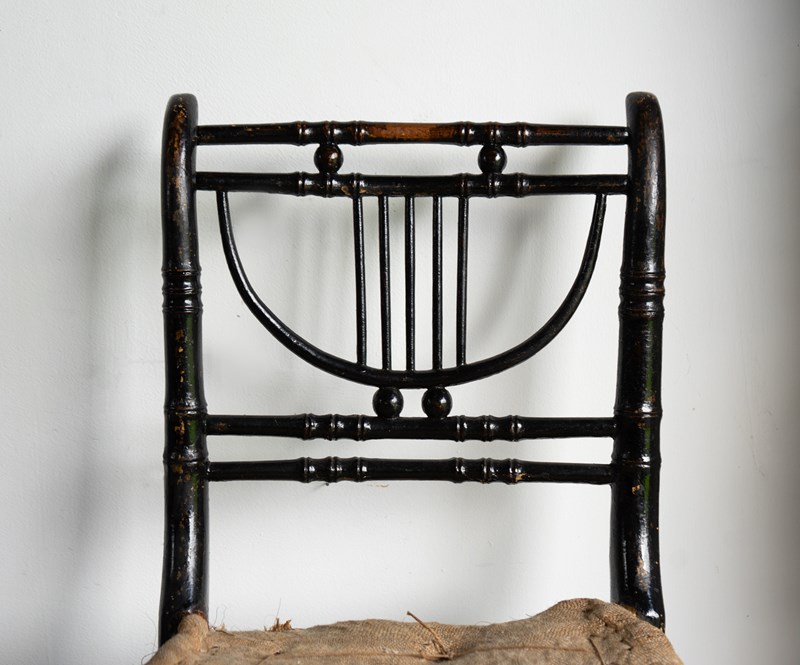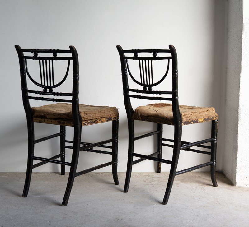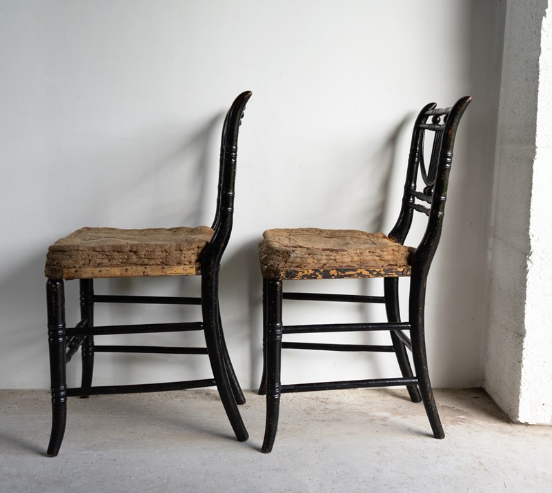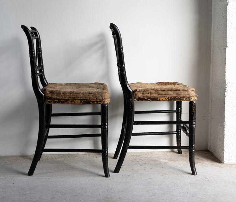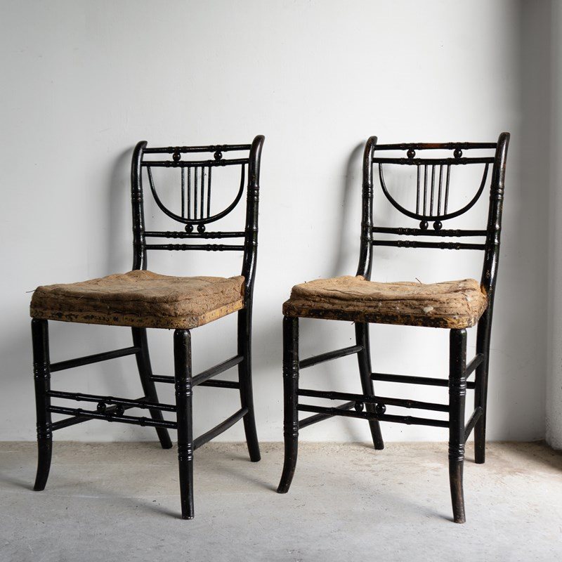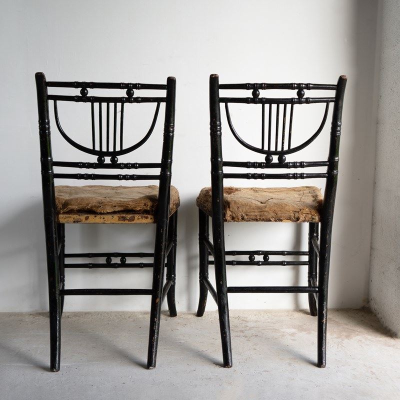 Pair Of Antique Regency Ebonised Faux Bamboo Chairs, Early 19Th Century