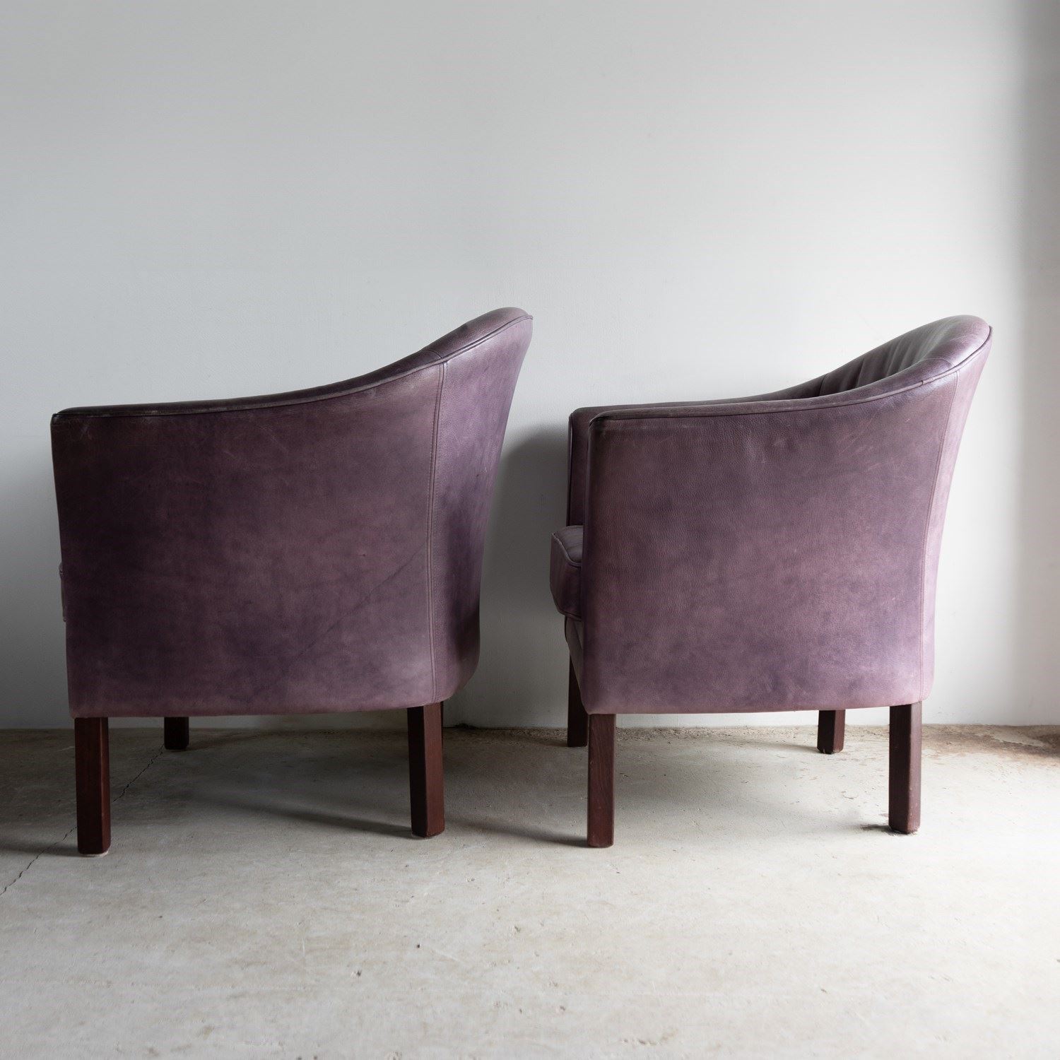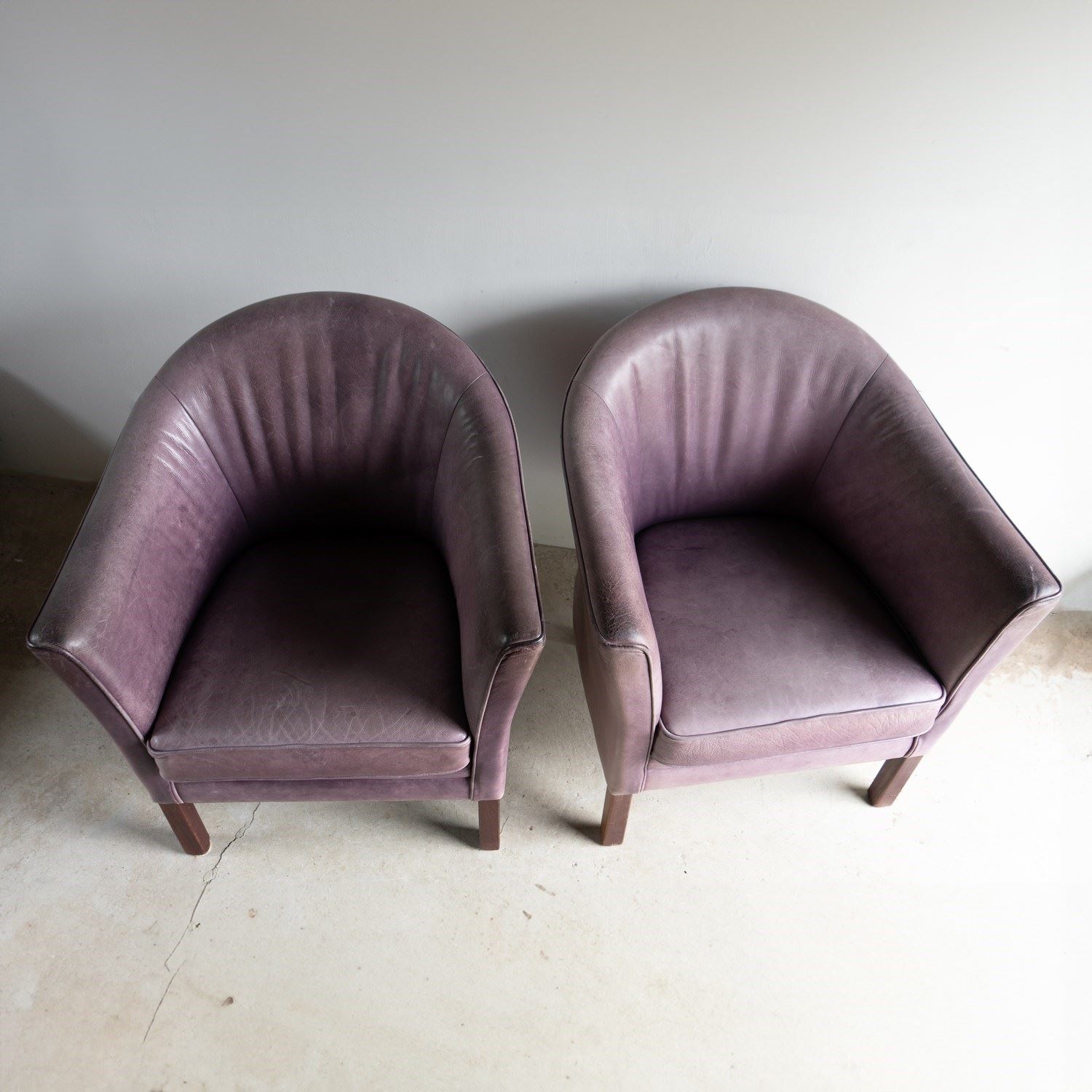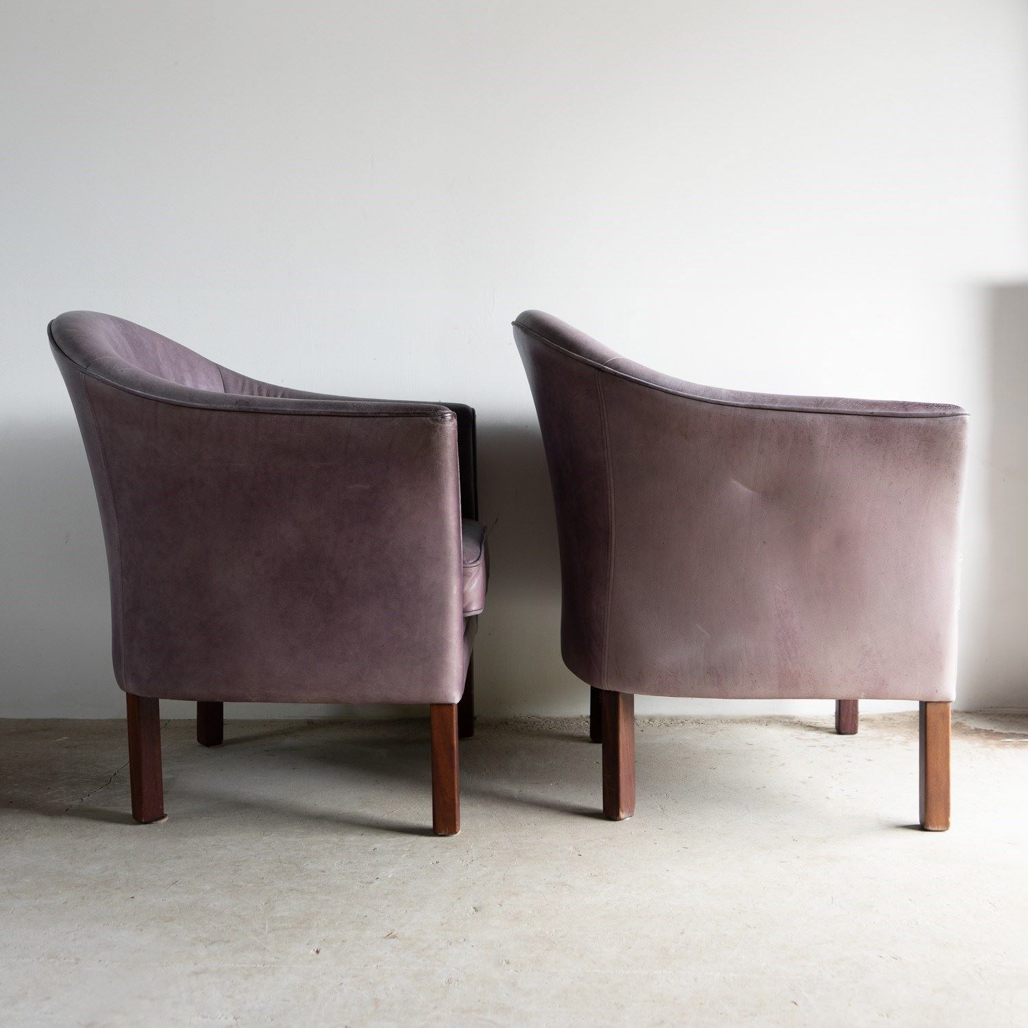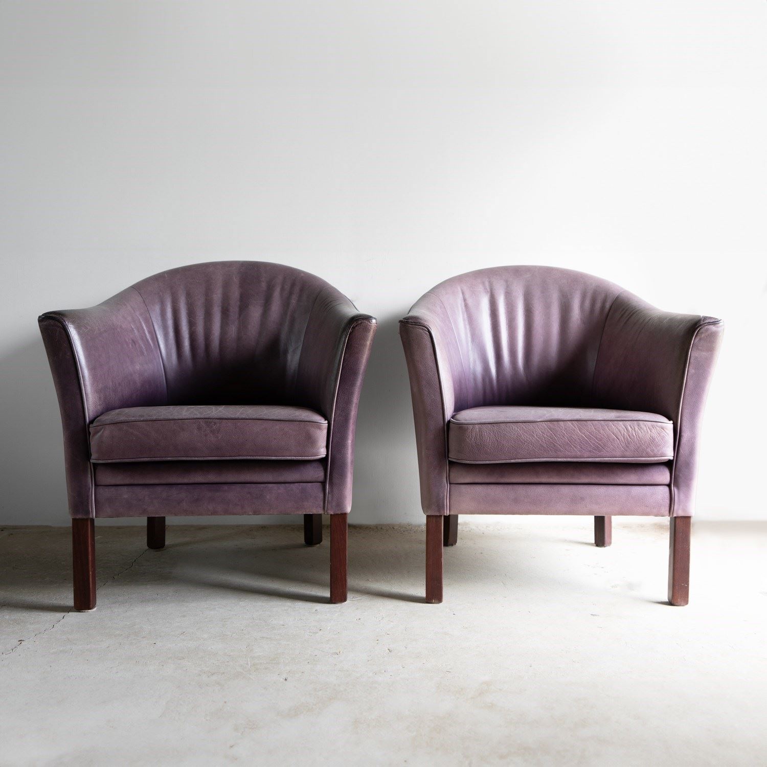 Pair Of Vintage Danish Lilac Leather Armchairs By Lars Kalmar For Mogens Hansen