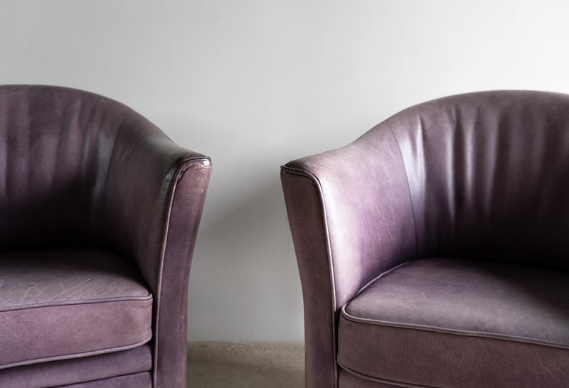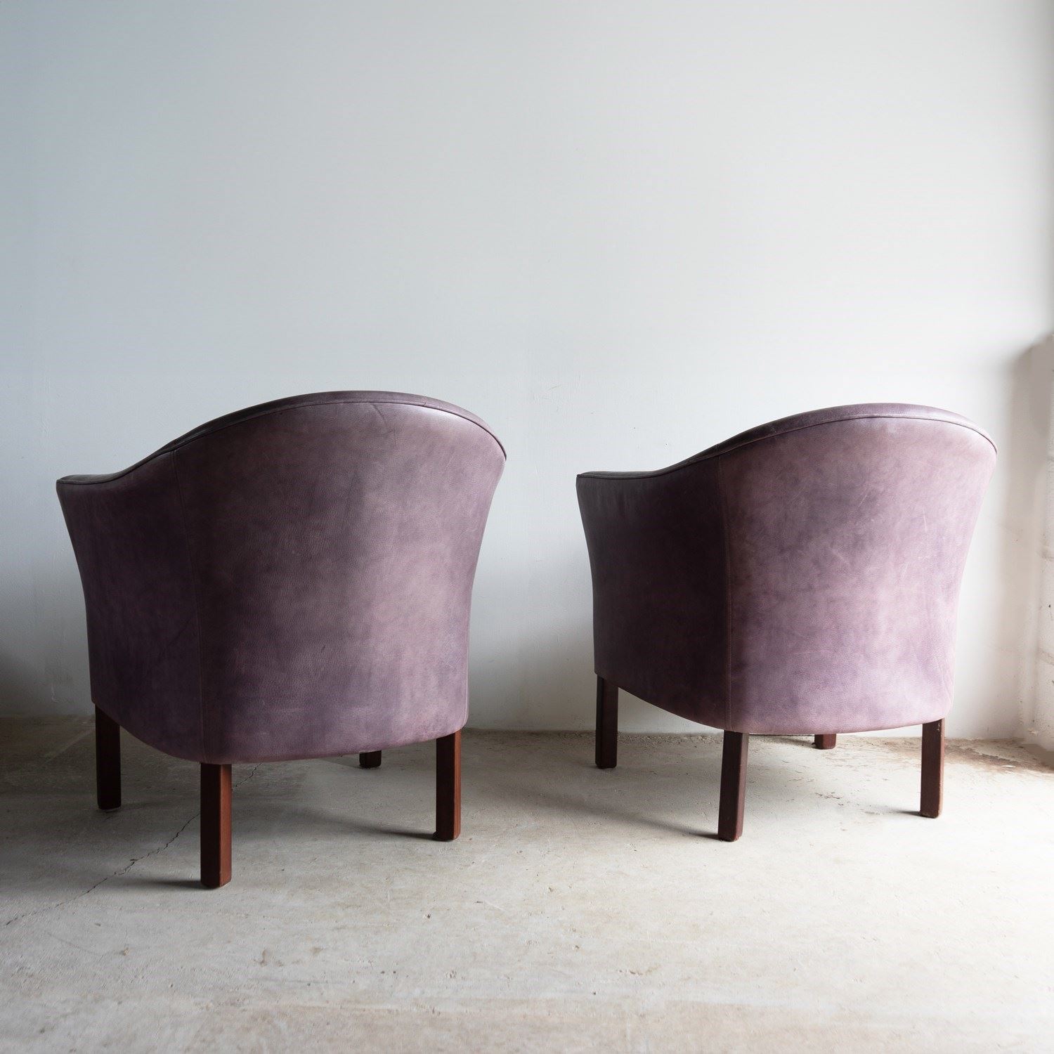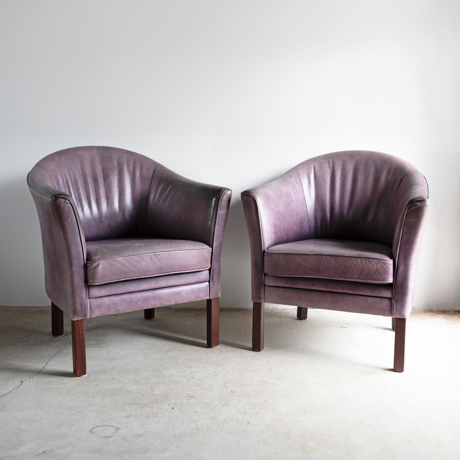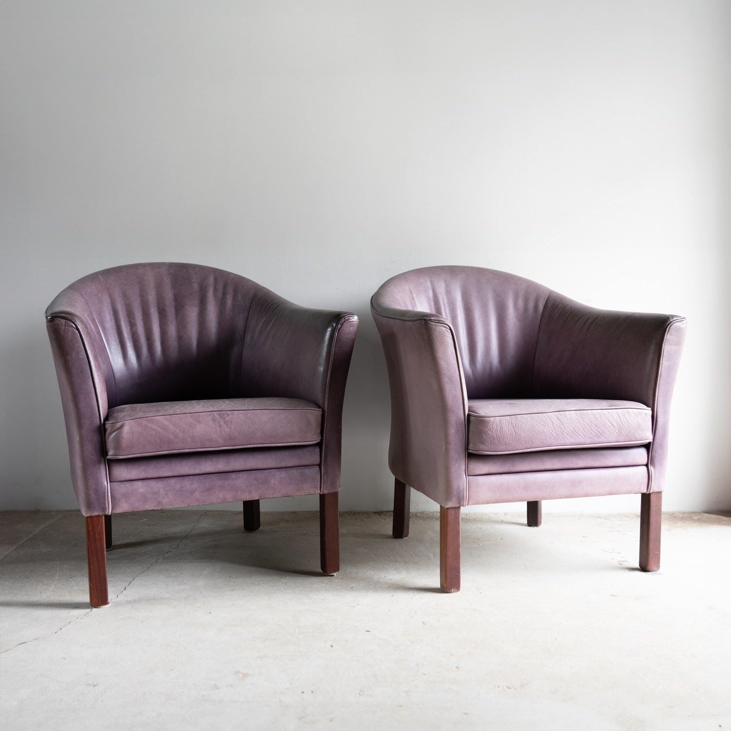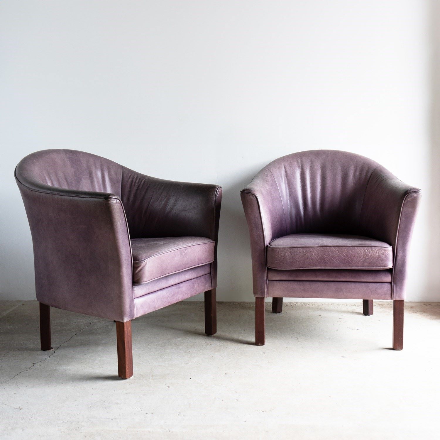 Pair Of Vintage Danish Lilac Leather Armchairs By Lars Kalmar For Mogens Hansen