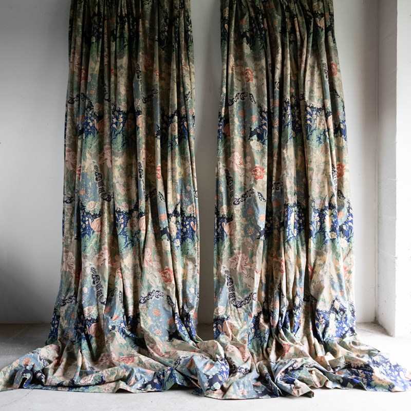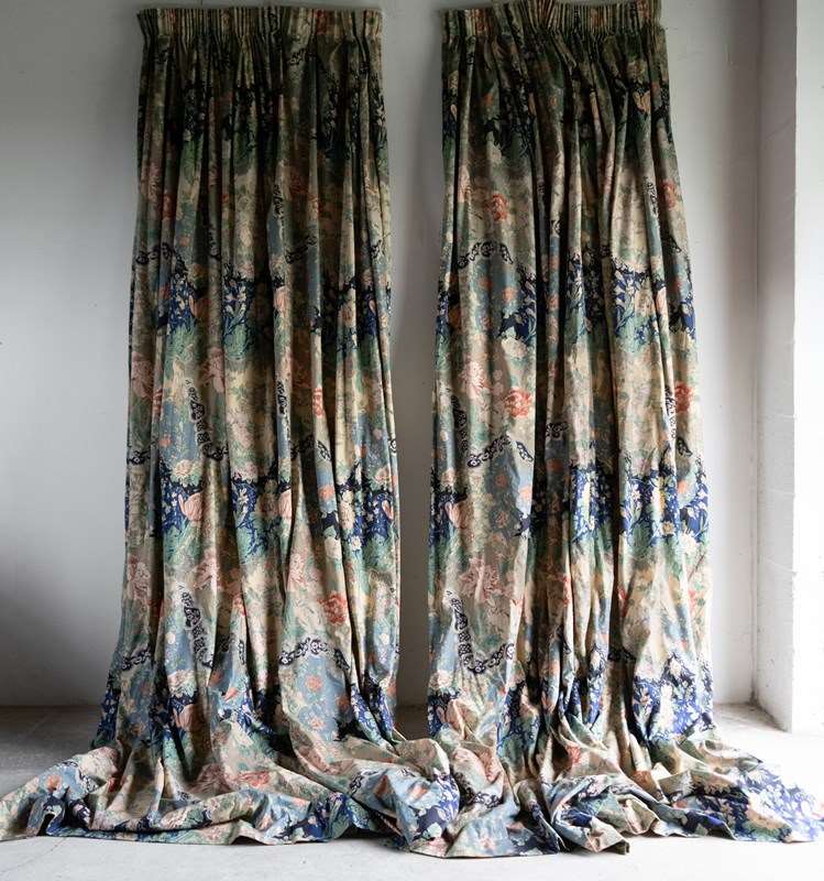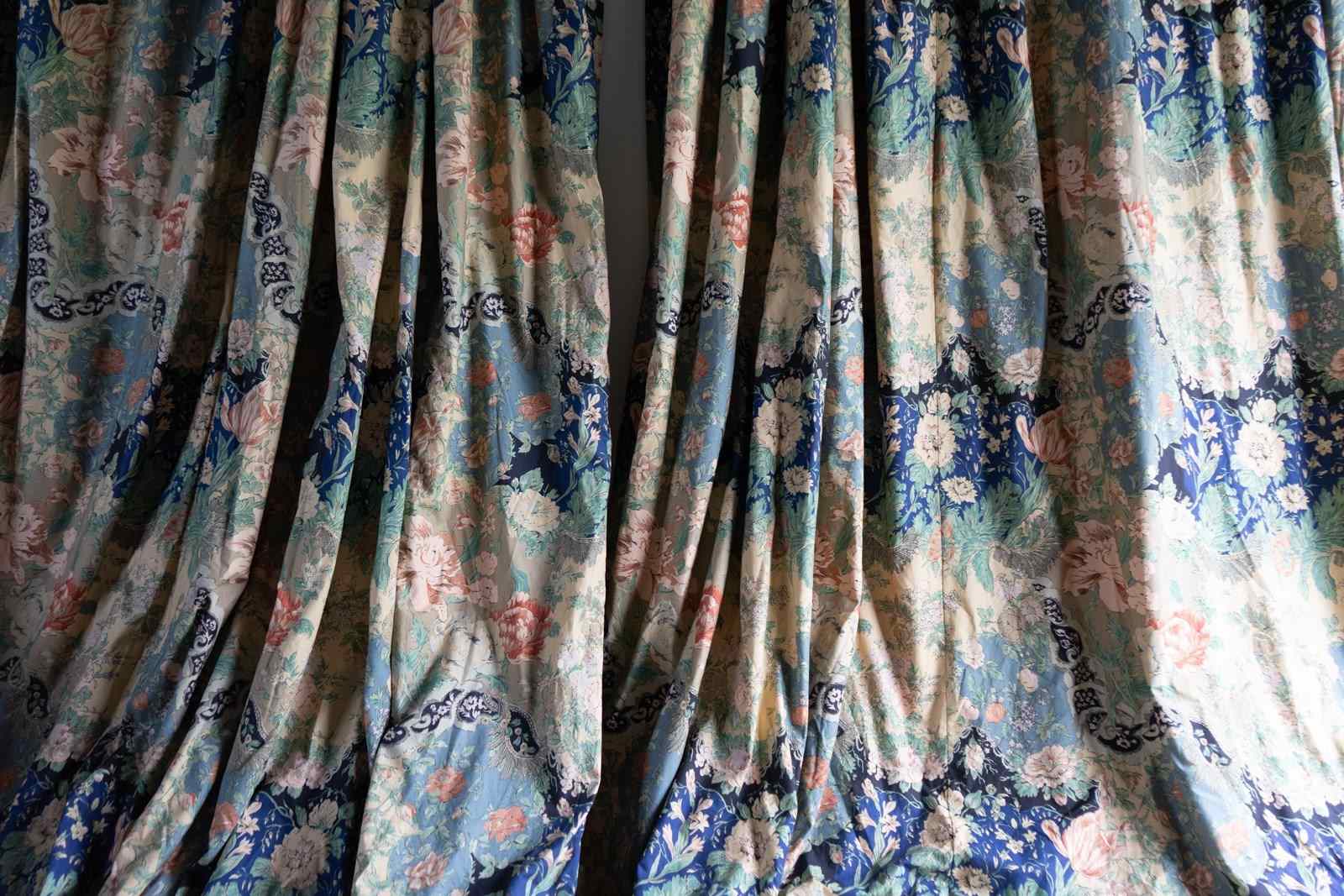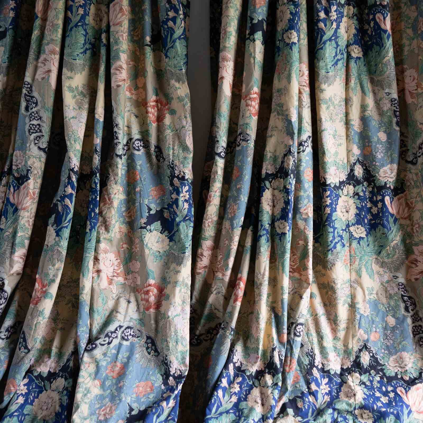 Large pair of Hand-sewn floral ‘Cimarosa’ fabric designed and manufactured curtains by Liberty, London.