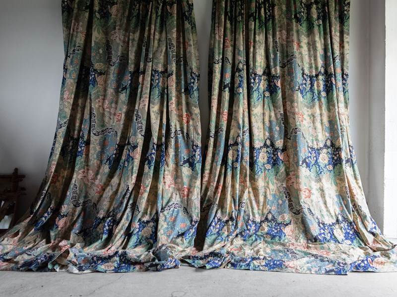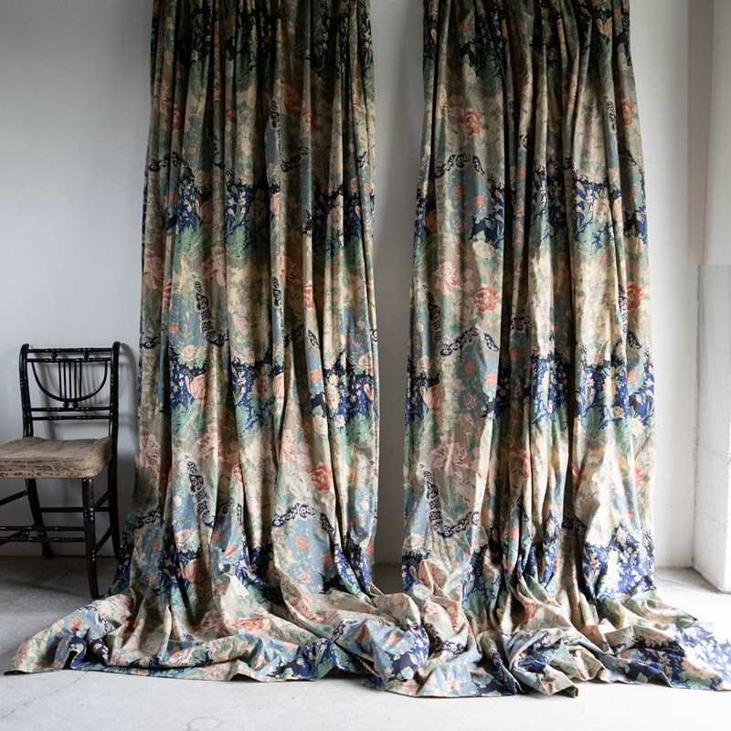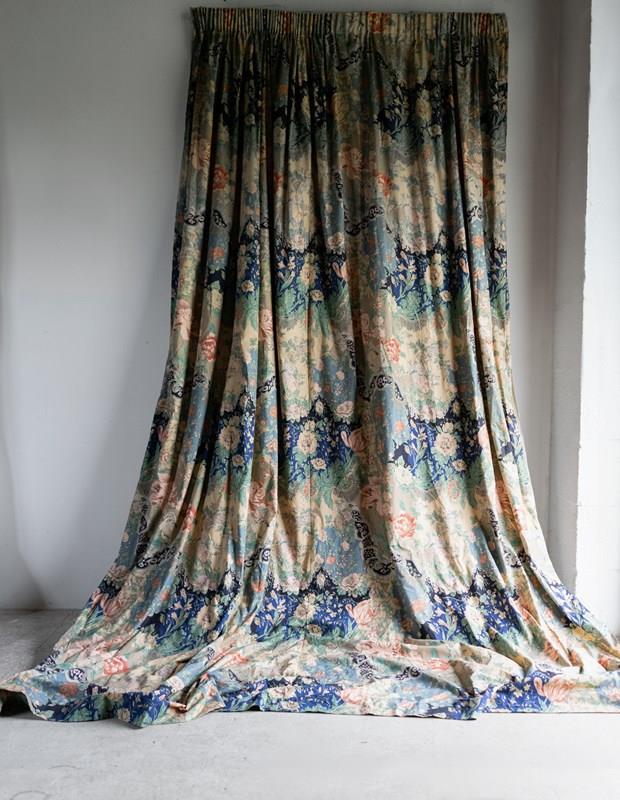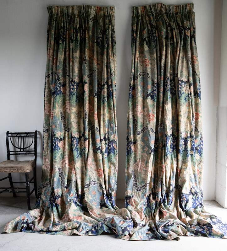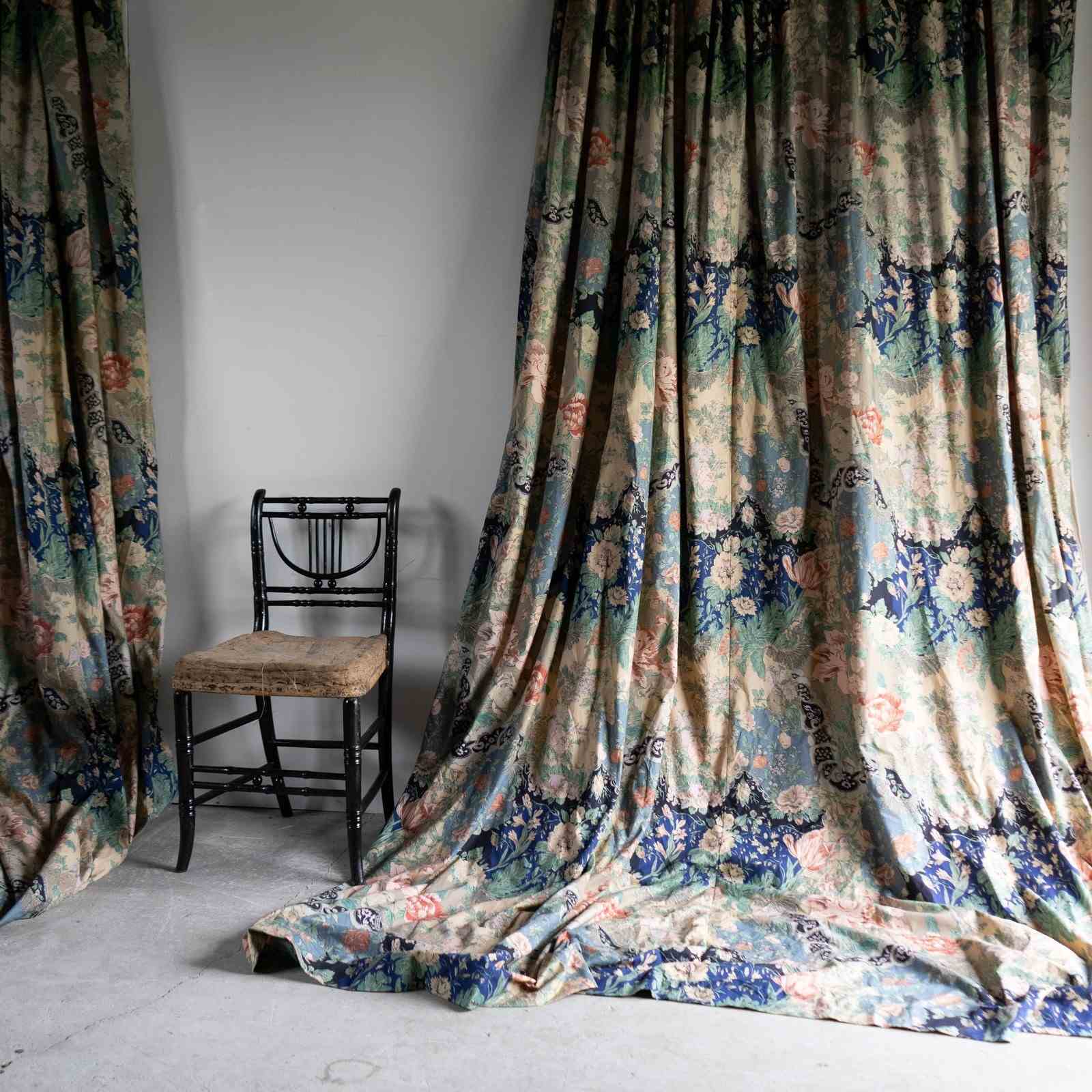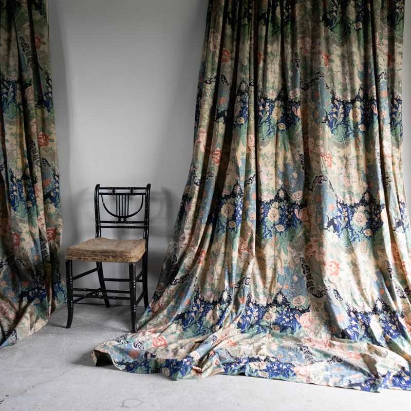 Large pair of Hand-sewn floral ‘Cimarosa’ fabric designed and manufactured curtains by Liberty, London.