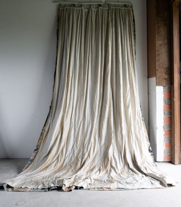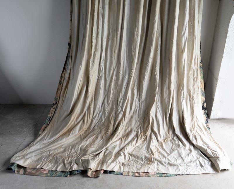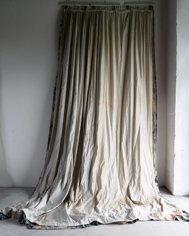 They are in very good vintage condition with wear consistent with age and use, including some small, subtle marks that are only noticeable on close inspection but not really when hung. They are free from any tears or holes. The cotton back fabric has some watermarks from the condensation on the previous windows.