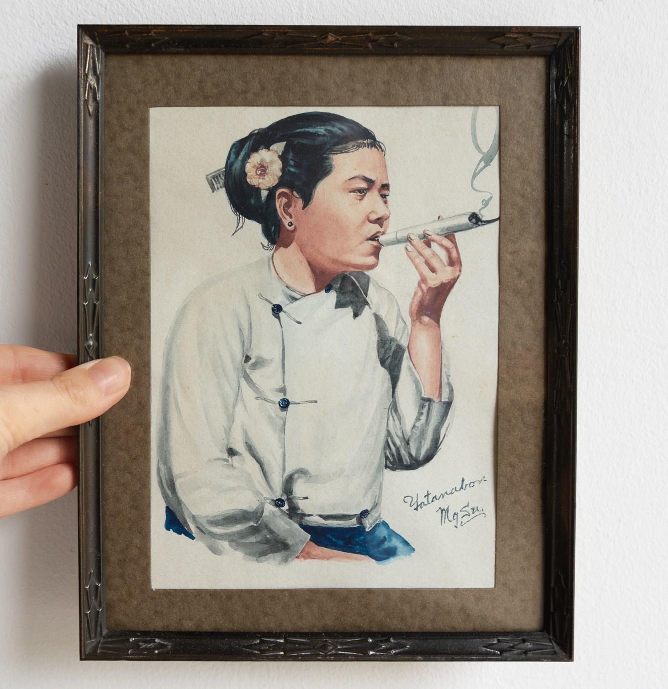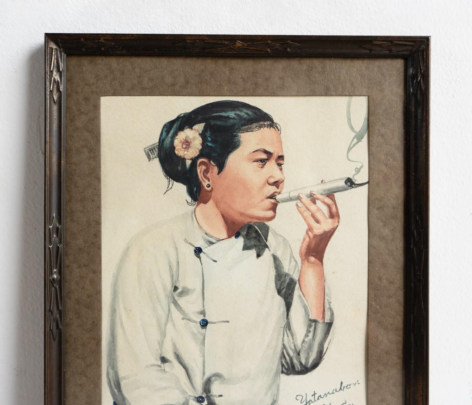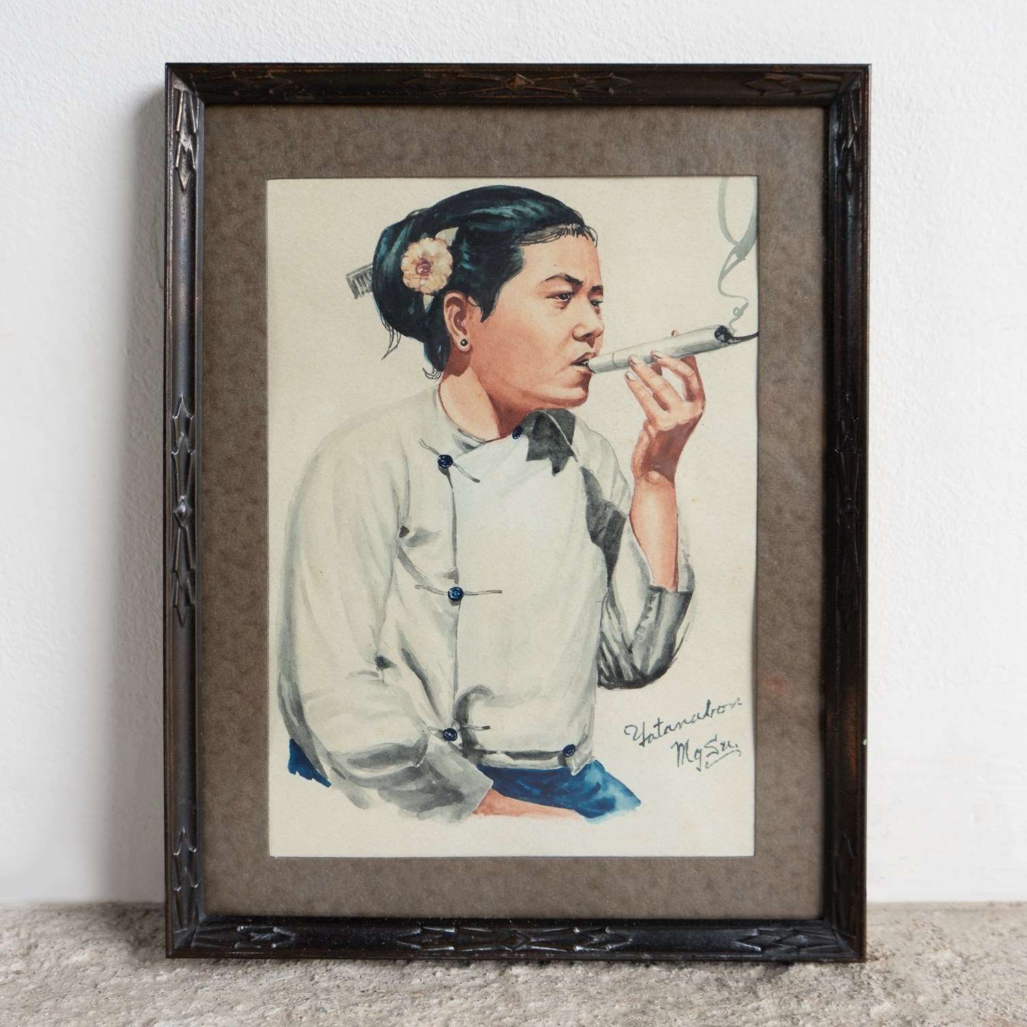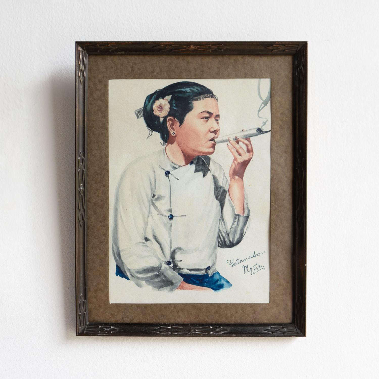 Portrait Of A Woman Smoking By Yatanabon Maung Su, Original Watercolour Painting