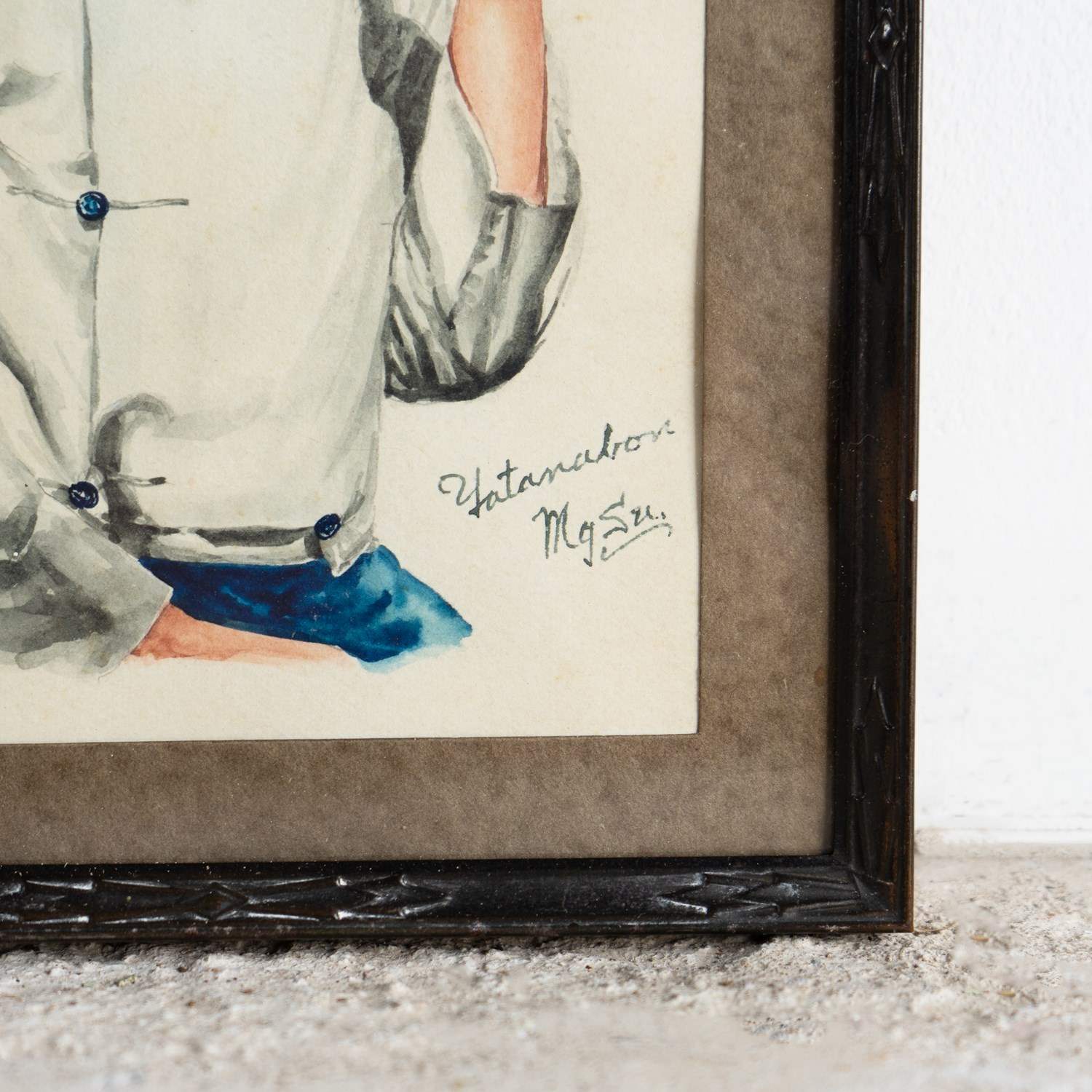 Vintage original watercolour on paper painting depicting a female sitter. Mid 20th century.