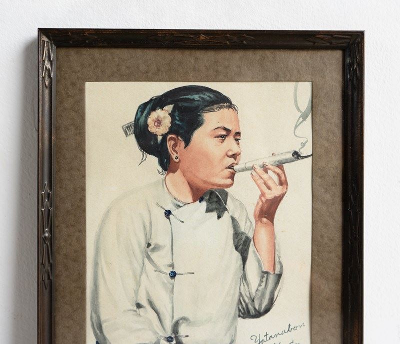 A typically characterful portrait by the artist, well known for capturing the essence of Burmese people in their everyday lives, smoking was a running theme throughout his work.