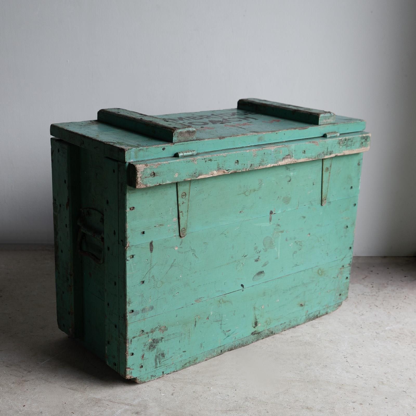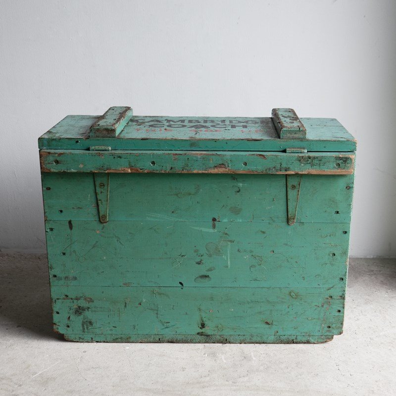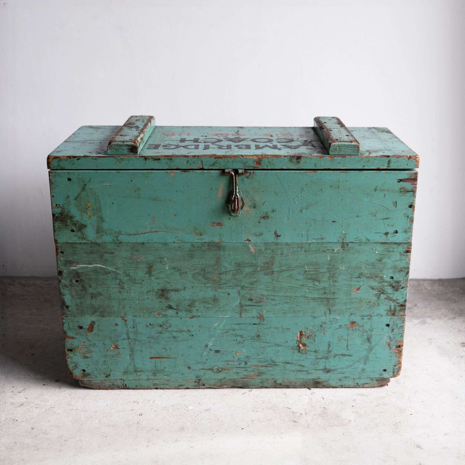 A pine crate lined with a metal liner which would have originally been used as an ice box/ cooler to keep drinks cool for the rowing team.