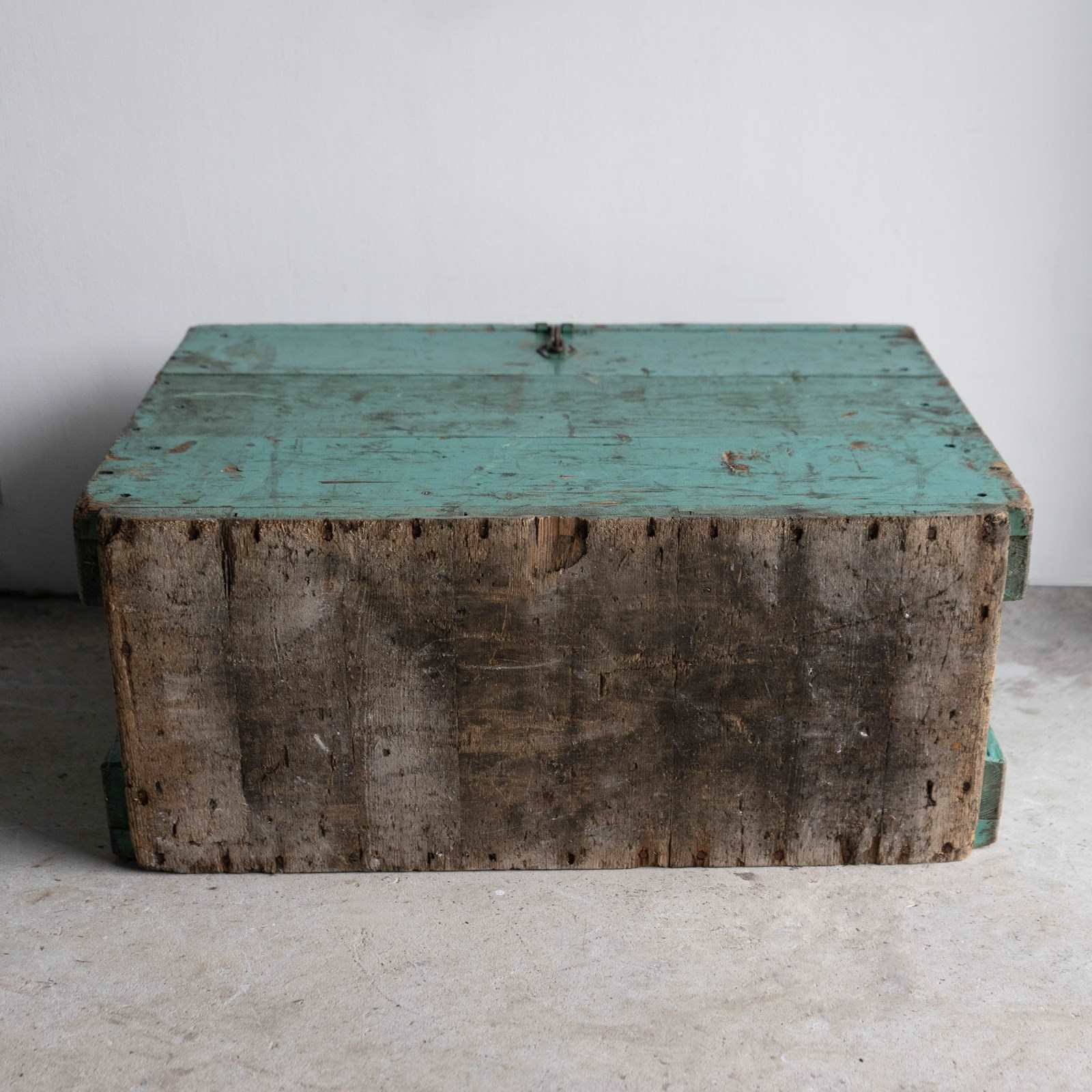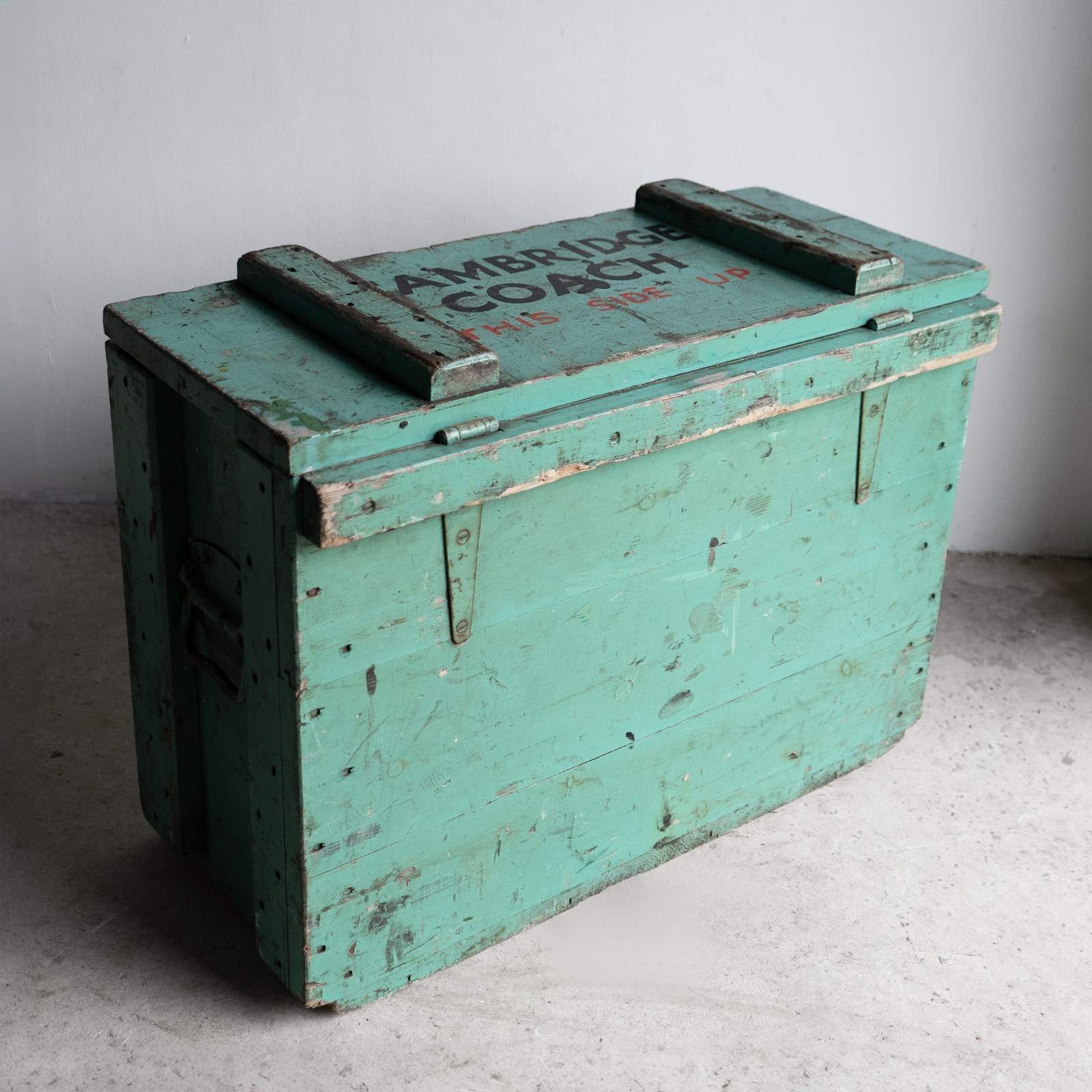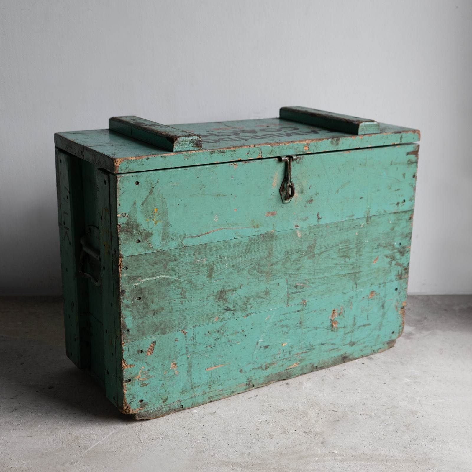 A pine crate lined with a metal liner which would have originally been used as an ice box/ cooler to keep drinks cool for the rowing team.