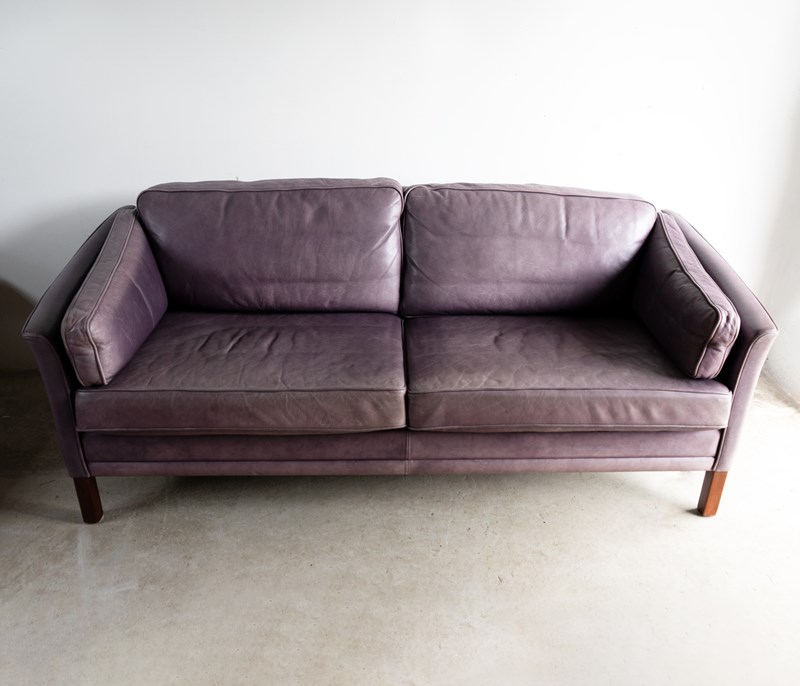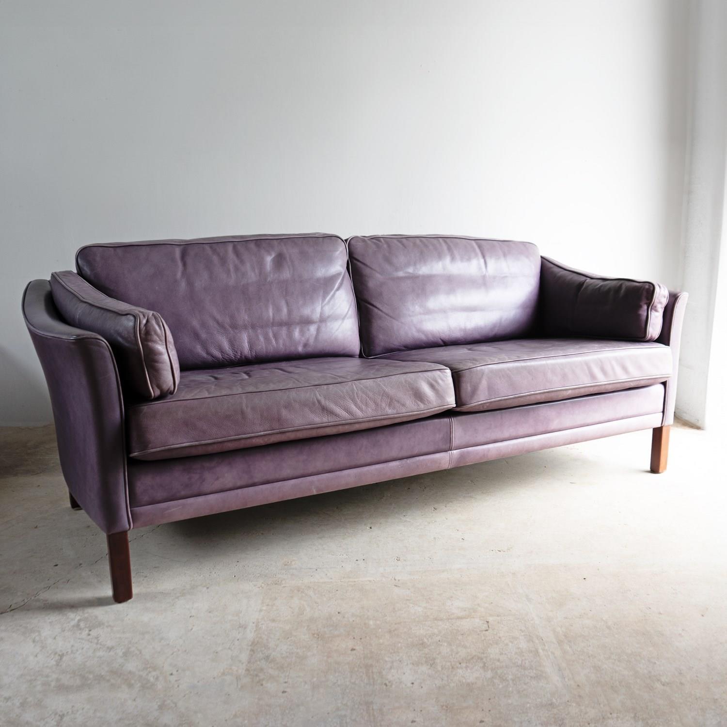 Vintage Danish Lilac Leather Sofa By Mogens Hansen, Mid-Late 20Th Century