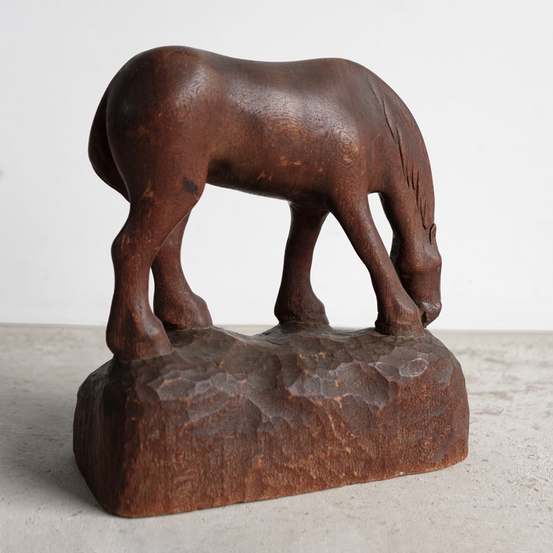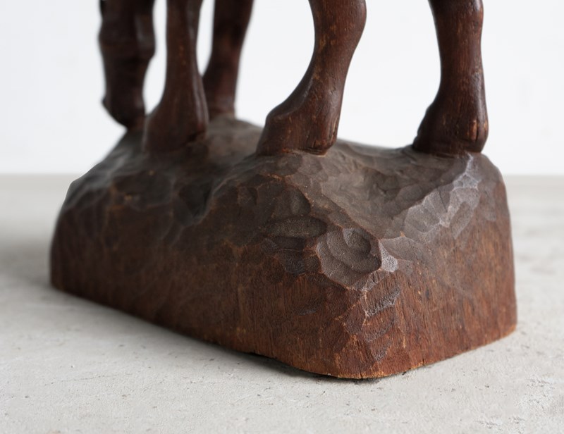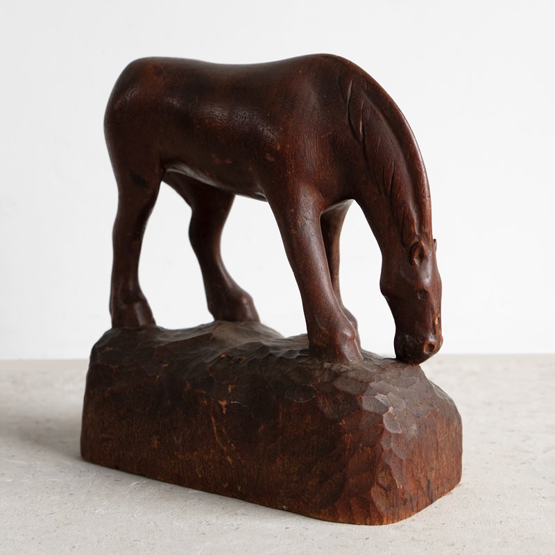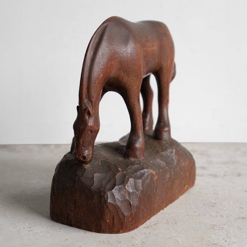 Skilfully carved from a single piece of wood with beautiful contrast between the smooth horse and rougher base, where the artist has left the chisel marks to emulate the ground.