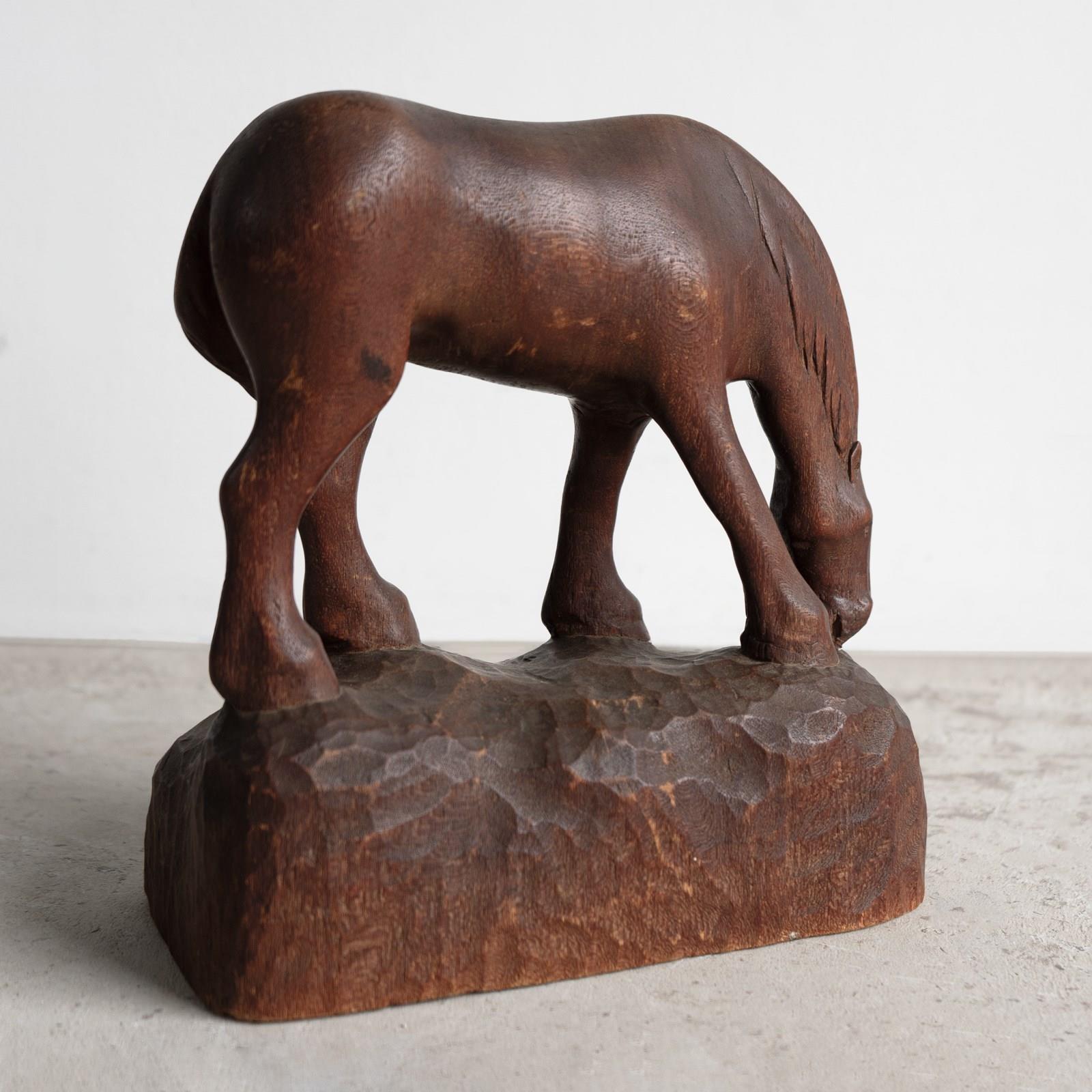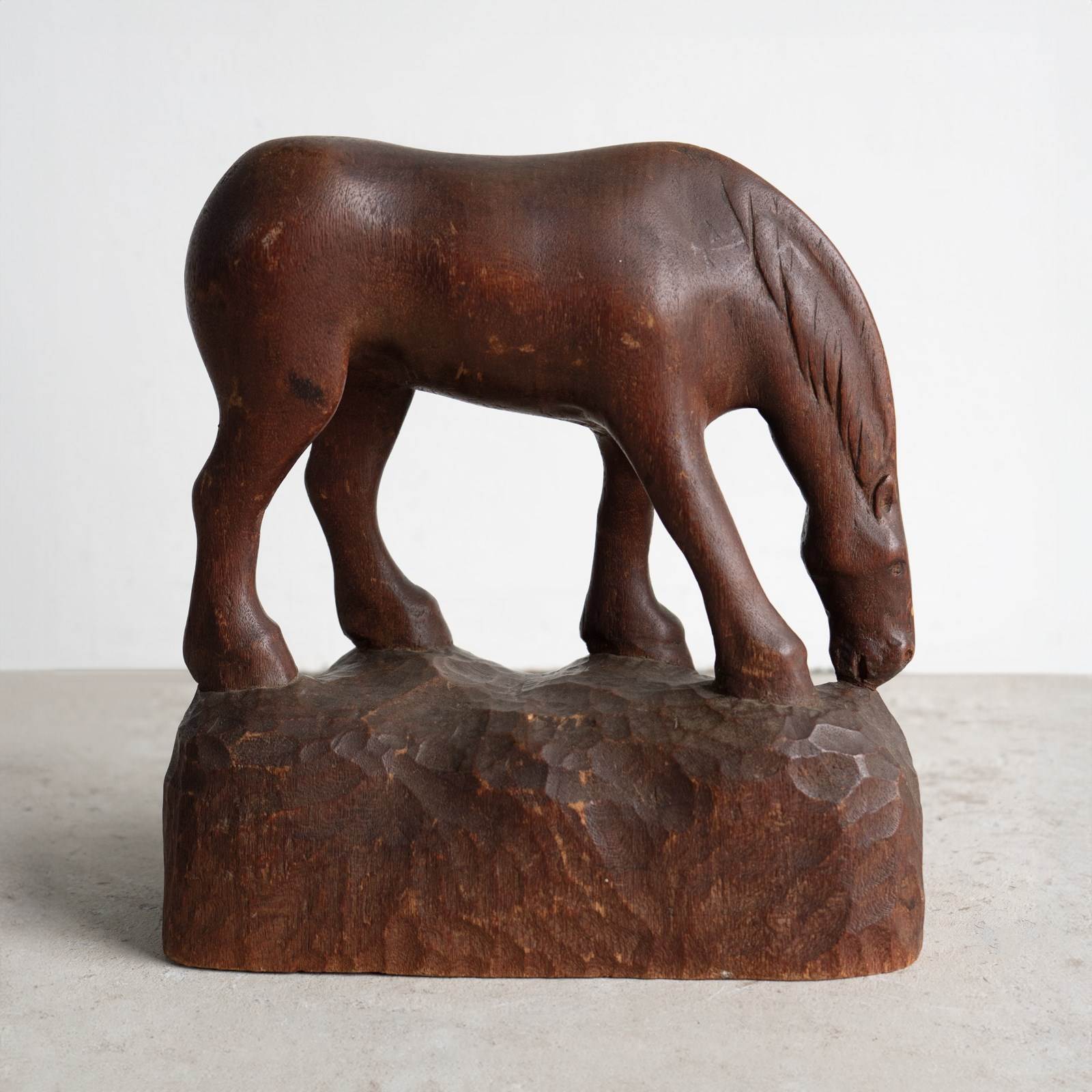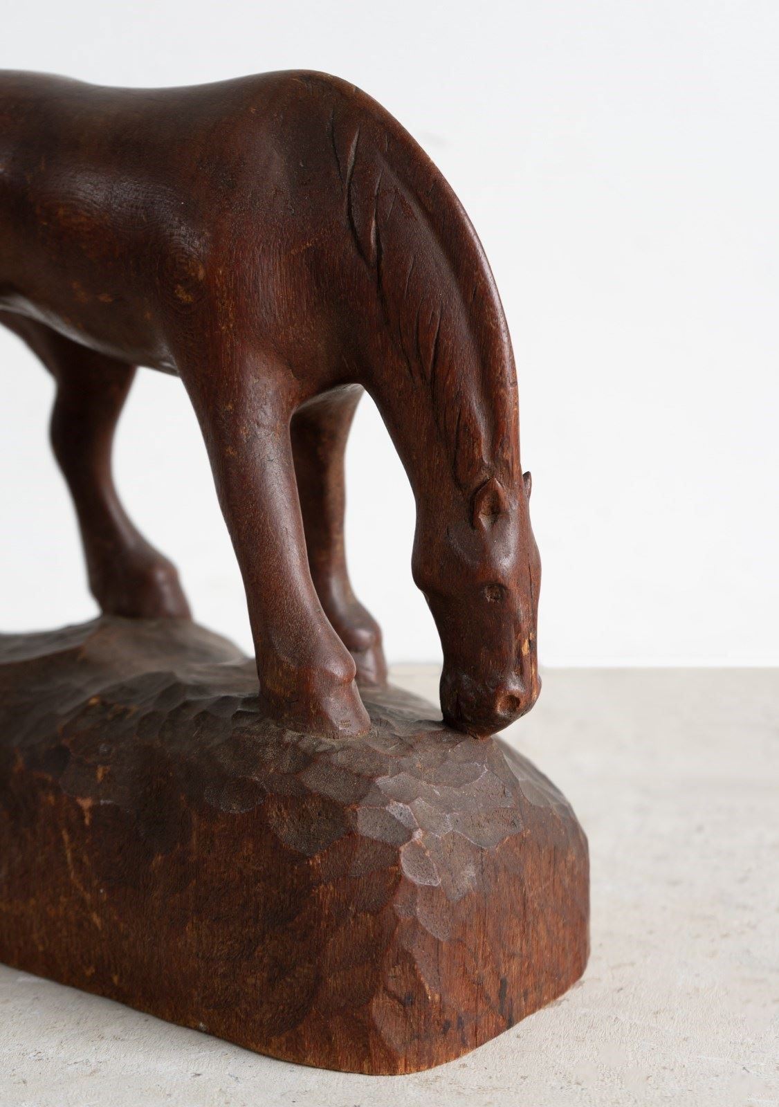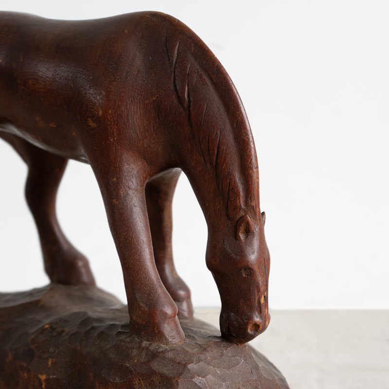 Vintage Folk Art Carved Wooden Horse Sculpture, Mid 20Th Century
