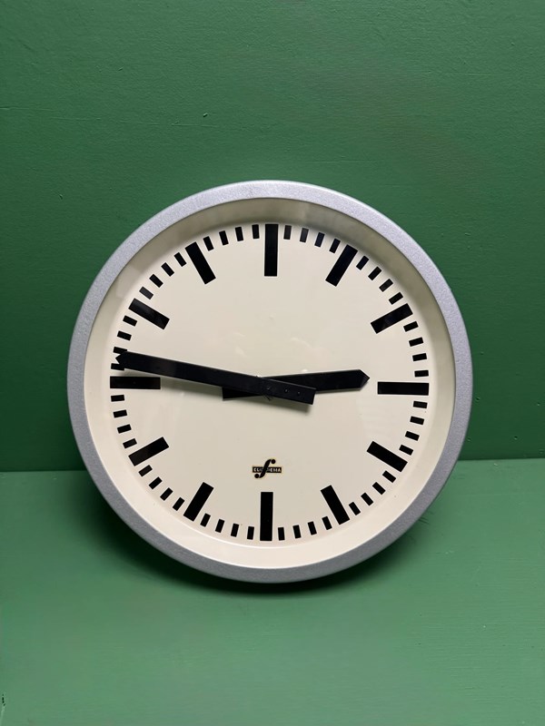Grey steel frame with original paint & steel clock face with original hands. Clock shows great signs of aging.
