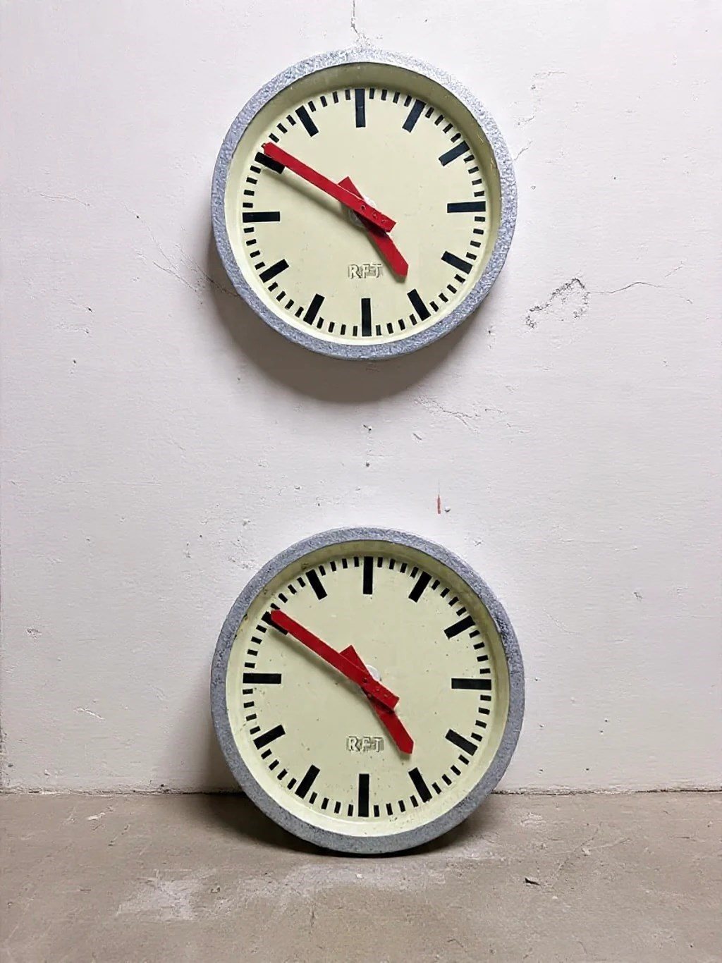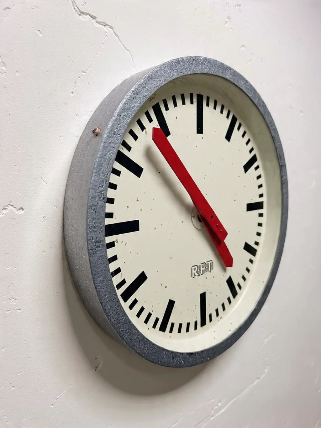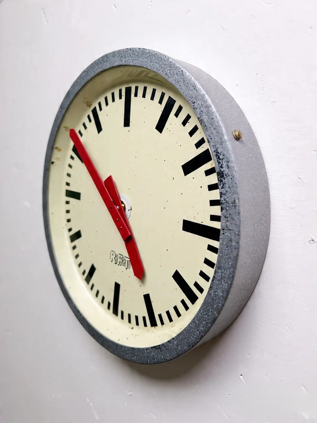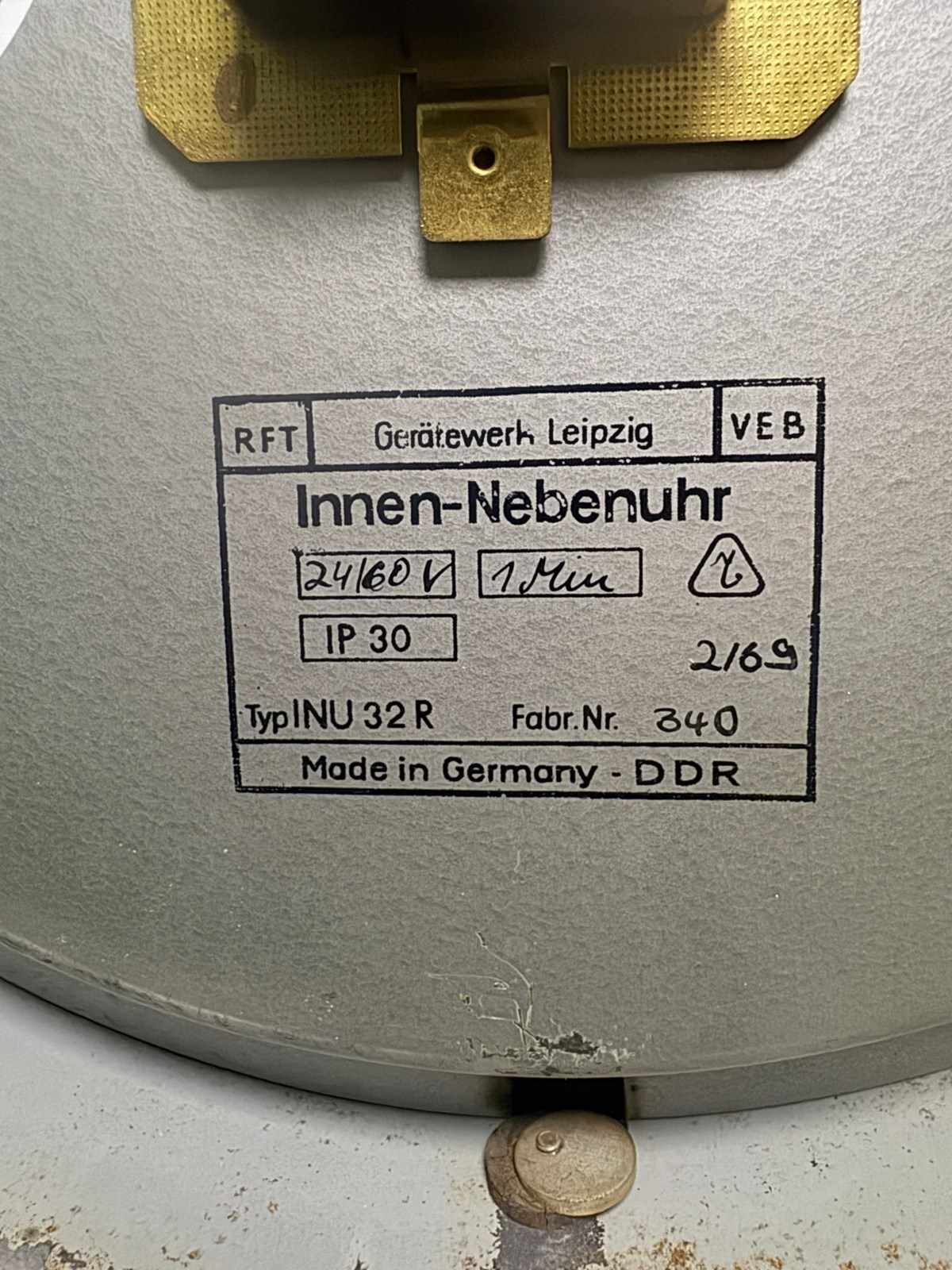 1960s East German industrial factory clock by RFT. Dated on the back February 1969.