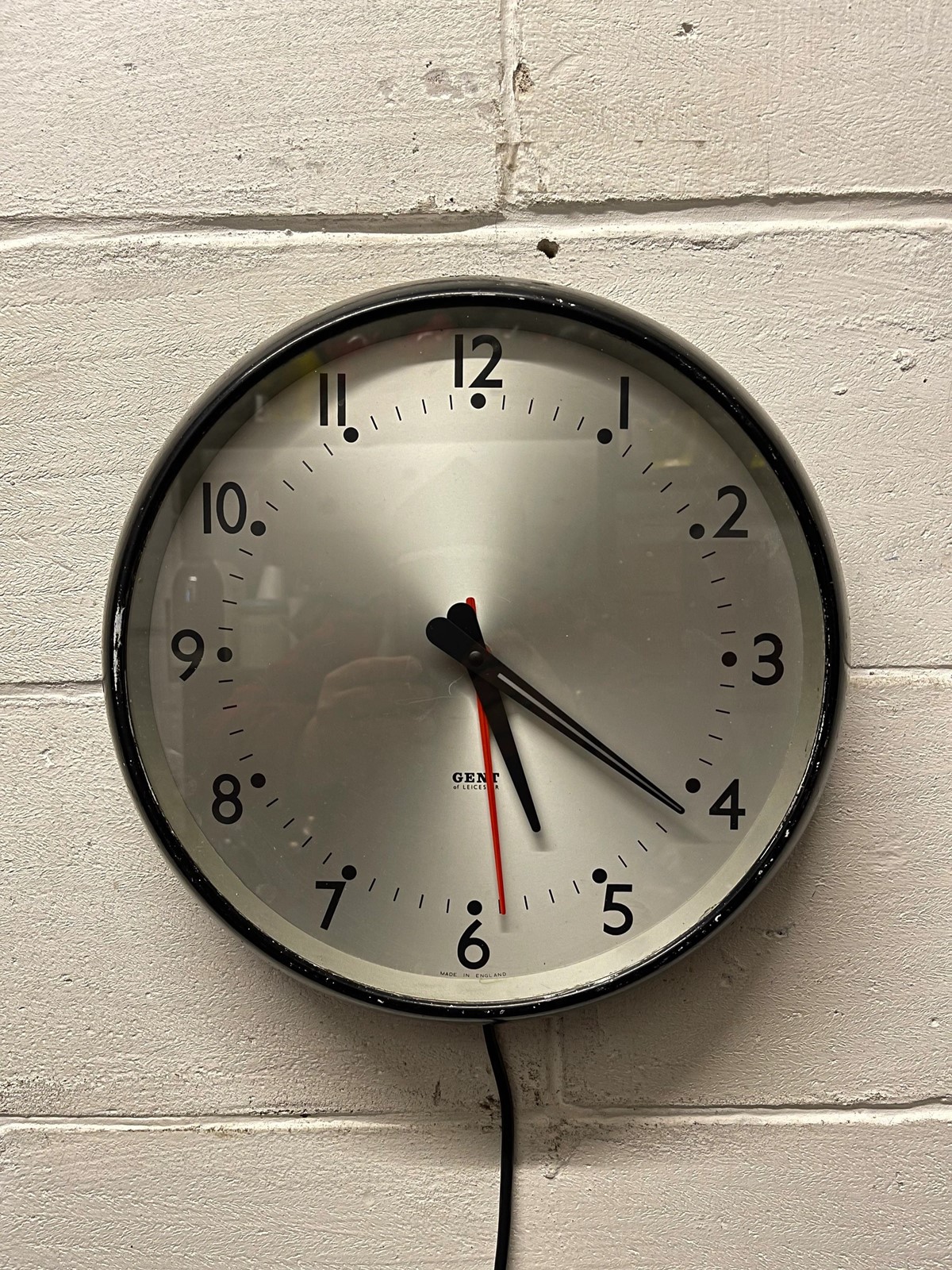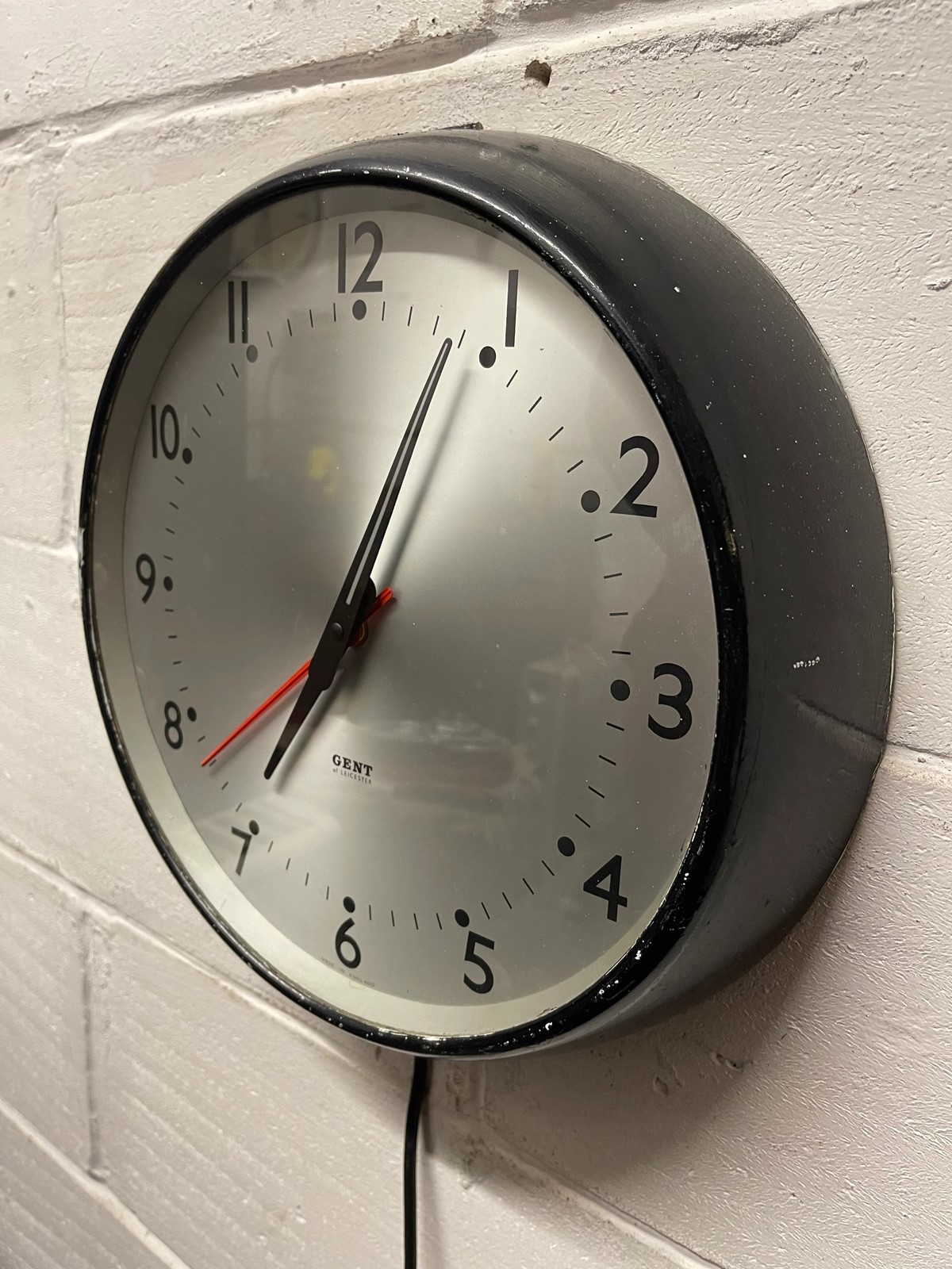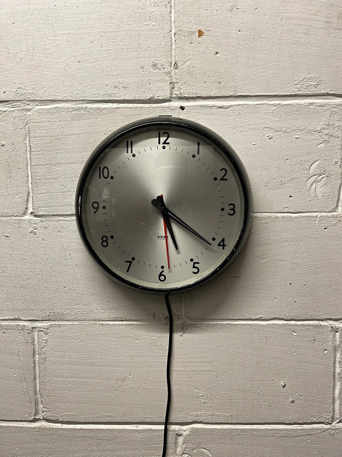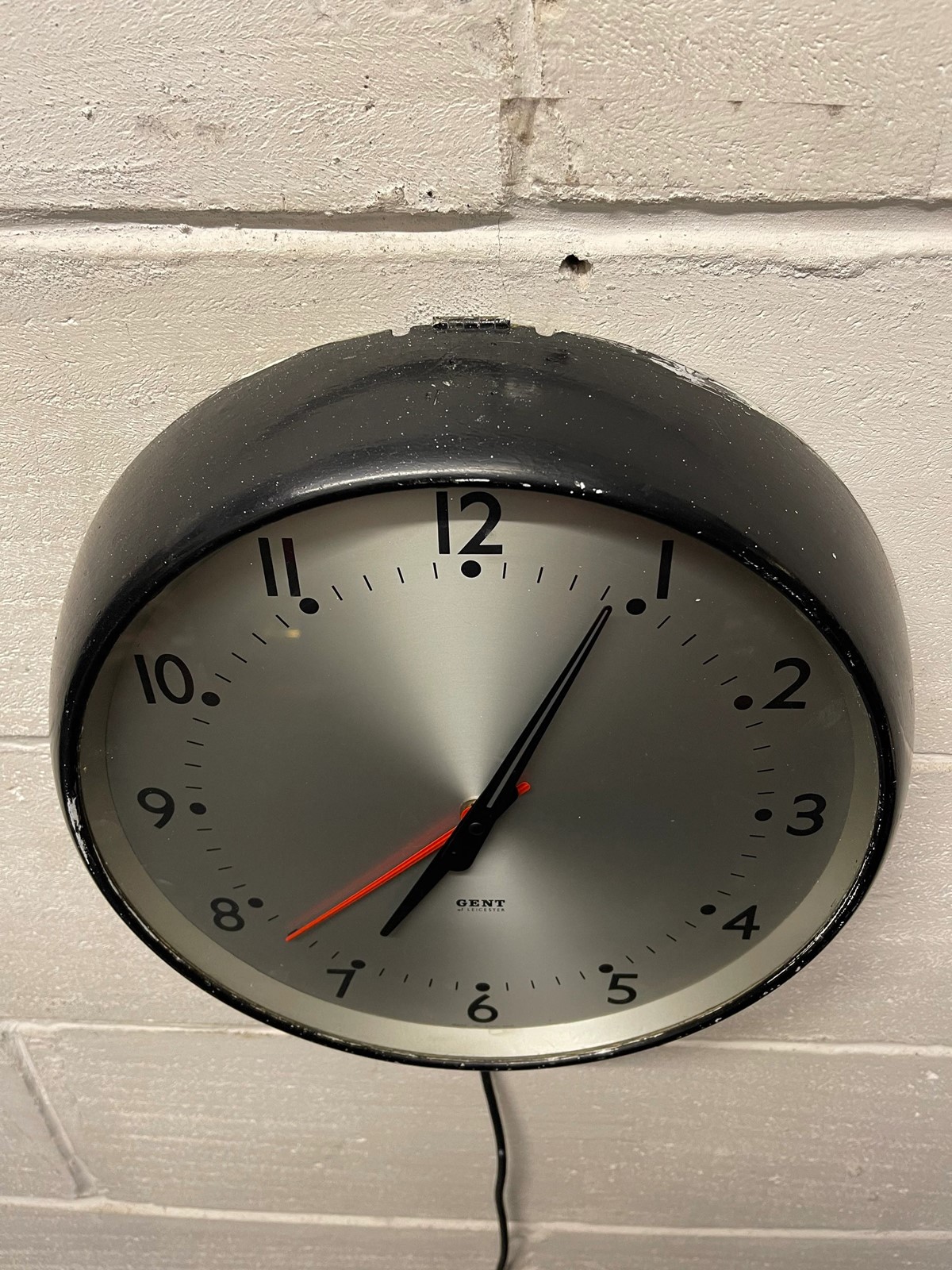 Circa 1960s British made GENTS Of Leicester electric factory clock, salvaged from a disused factory in Luton.
